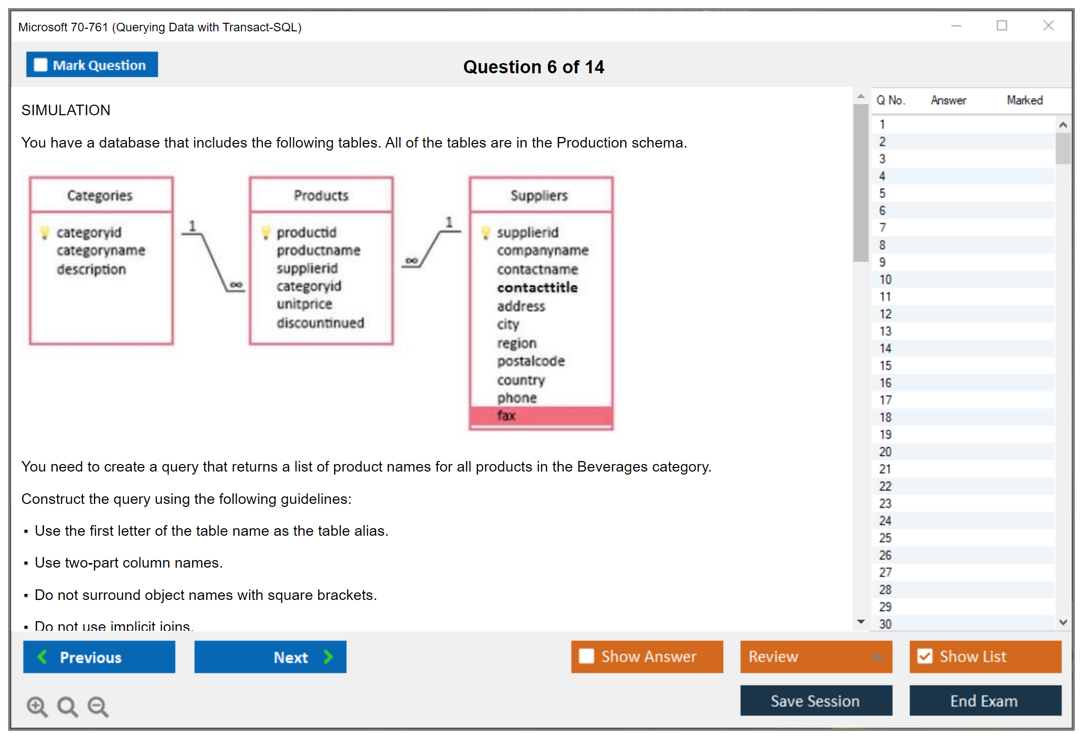 The Microsoft 70-761 (Querying Data with Transact-SQL) Exam is designed to test the skills and knowledge required to query data using Transact-SQL, which is a proprietary extension to SQL used by Microsoft SQL Server. This exam covers core data management tasks, including querying multiple tables, managing data with Transact-SQL, and programming databases.