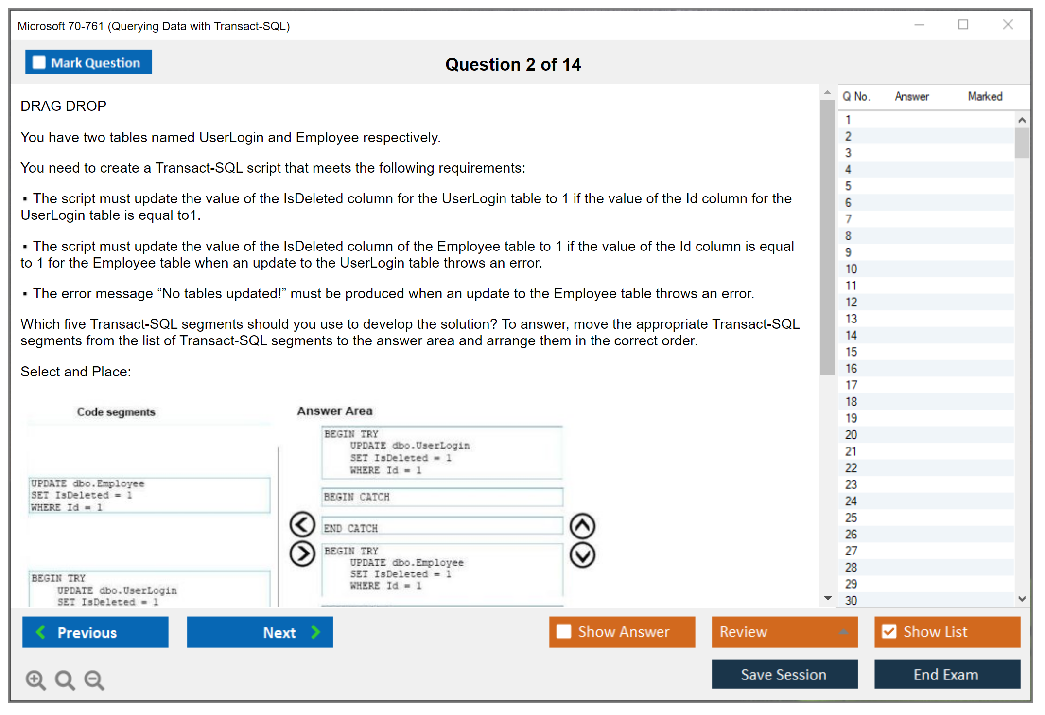 Note: Microsoft 70-761 (Querying Data with Transact-SQL) will not receive any new updates.