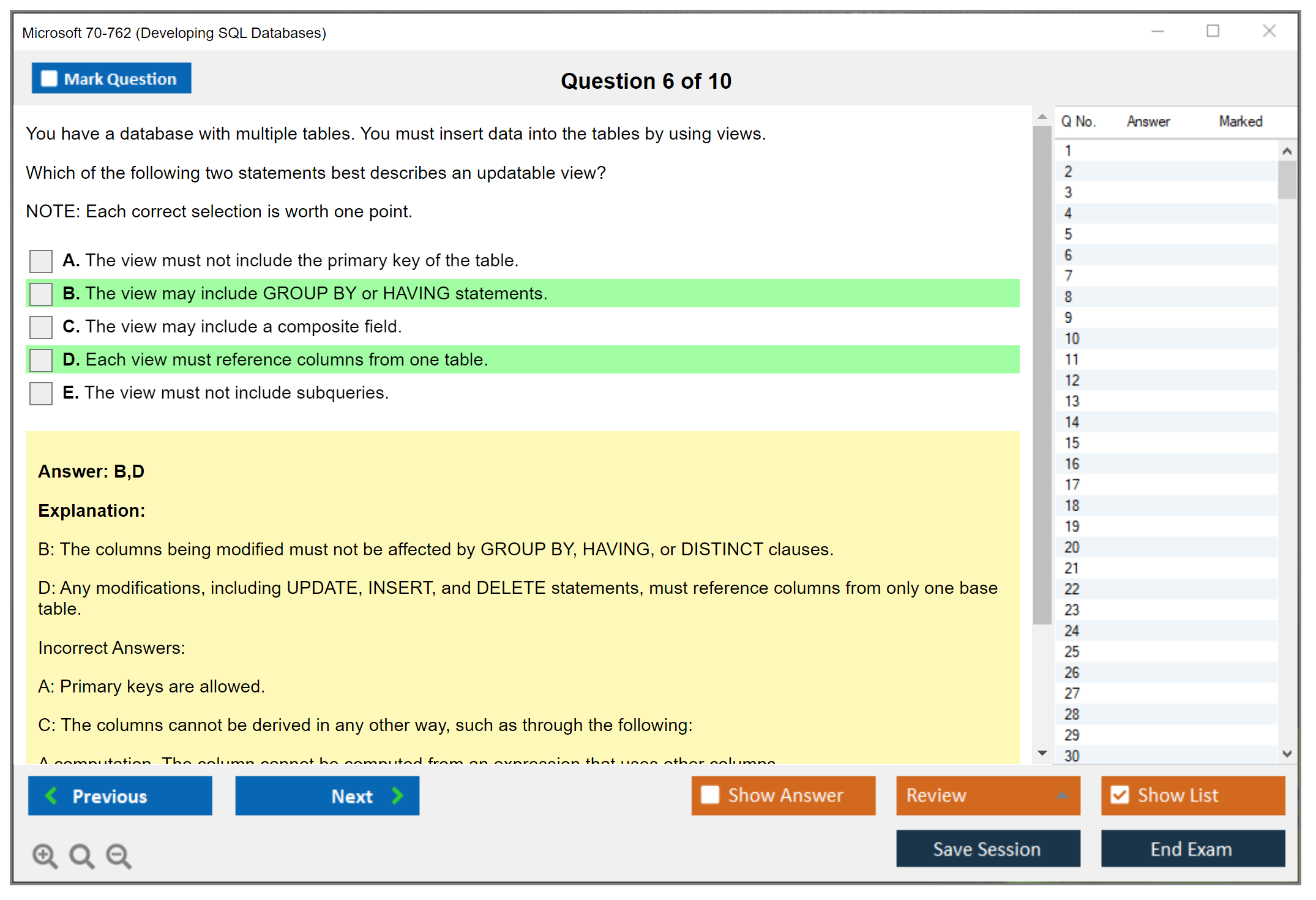 Note: Microsoft 70-762 (Developing SQL Databases) will not receive any new updates.