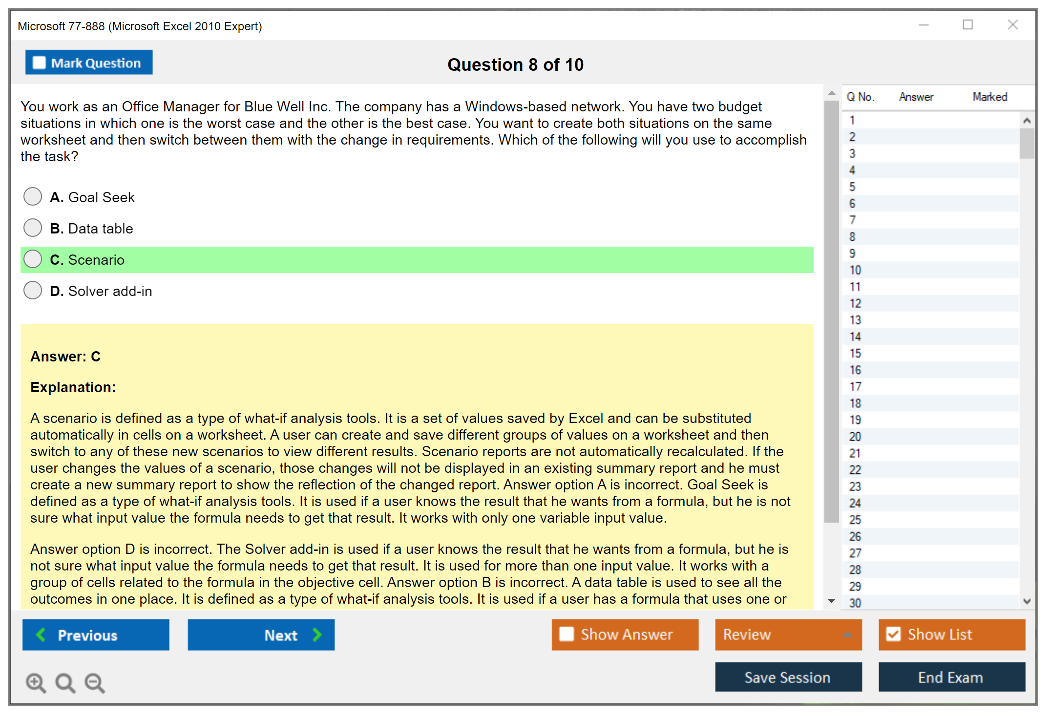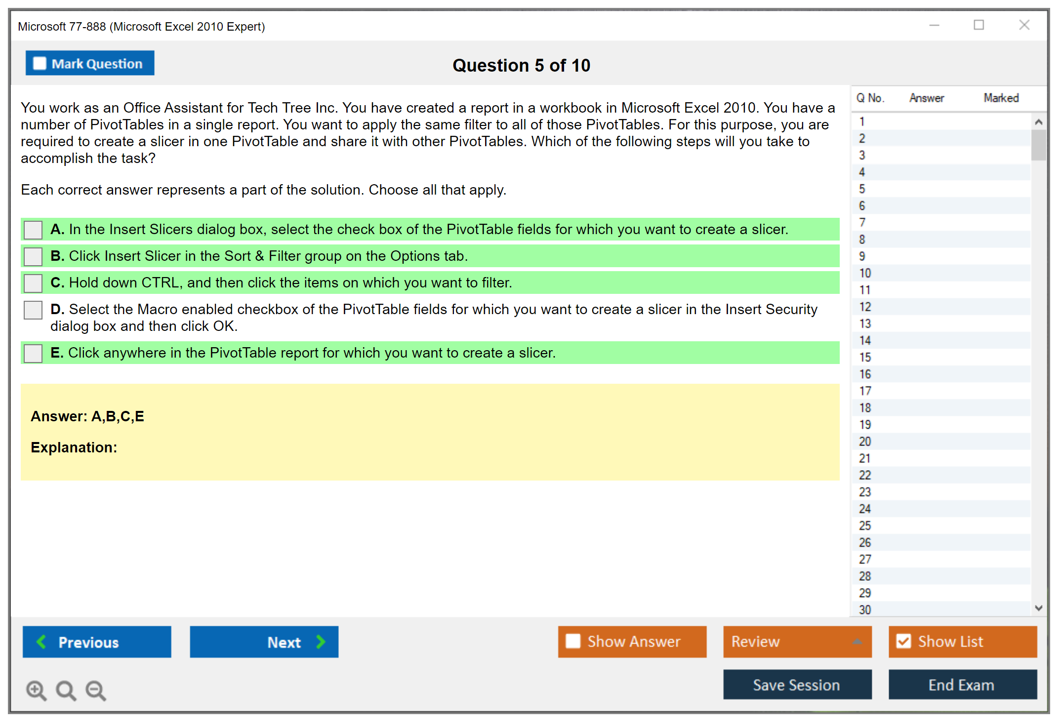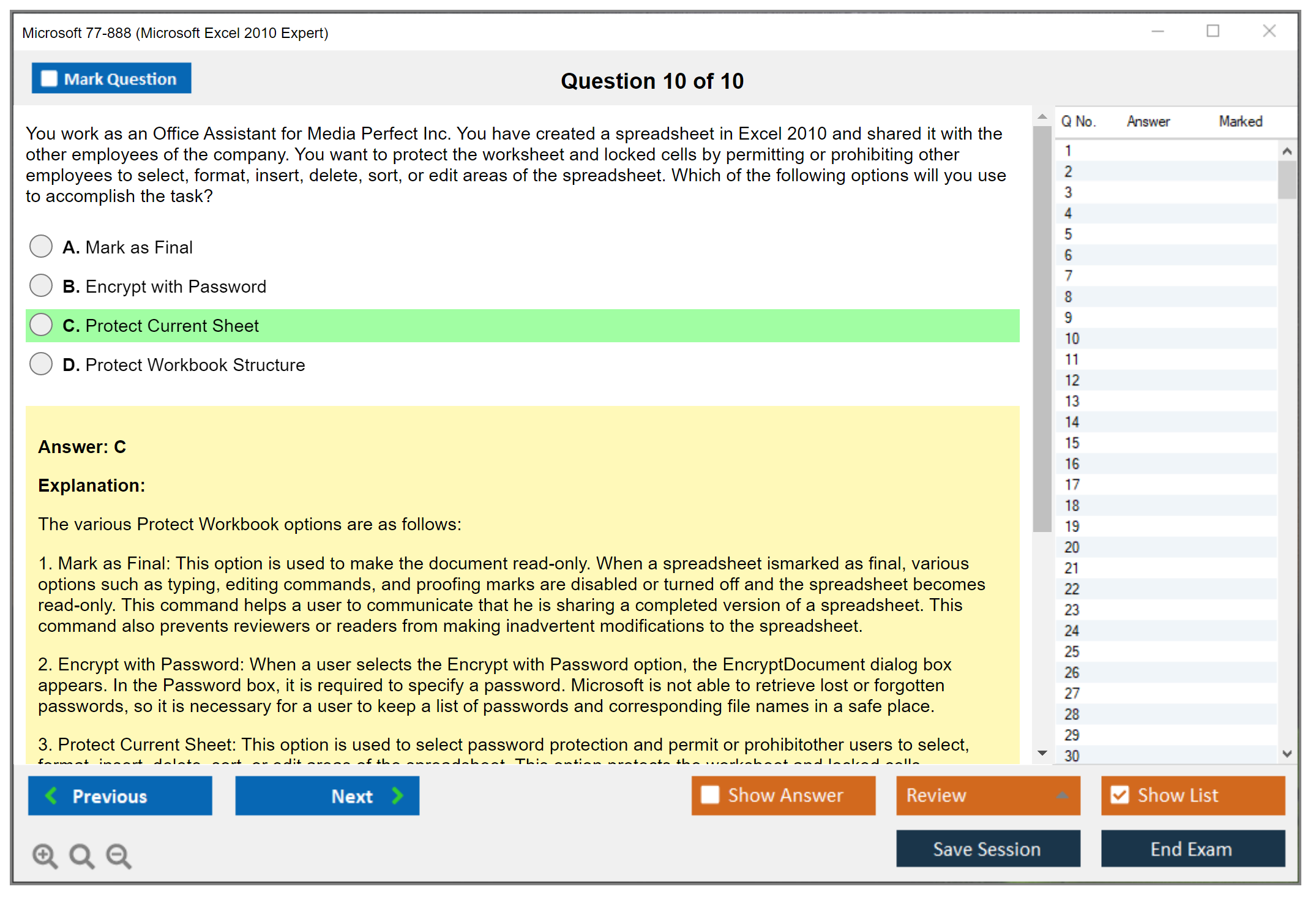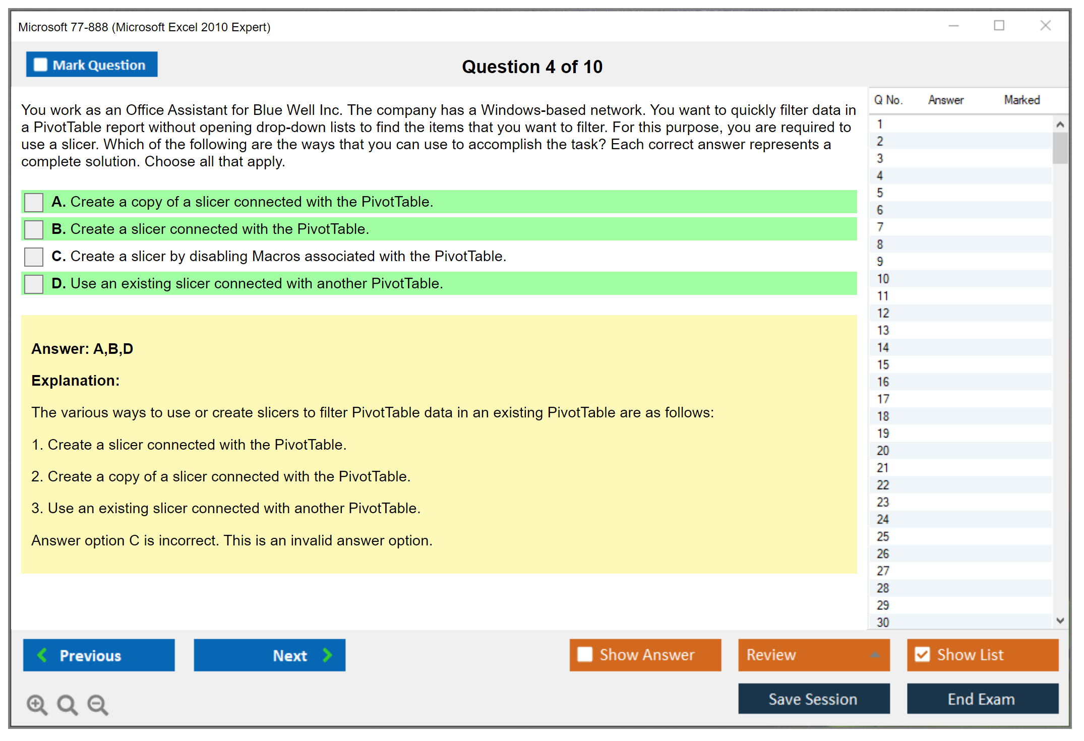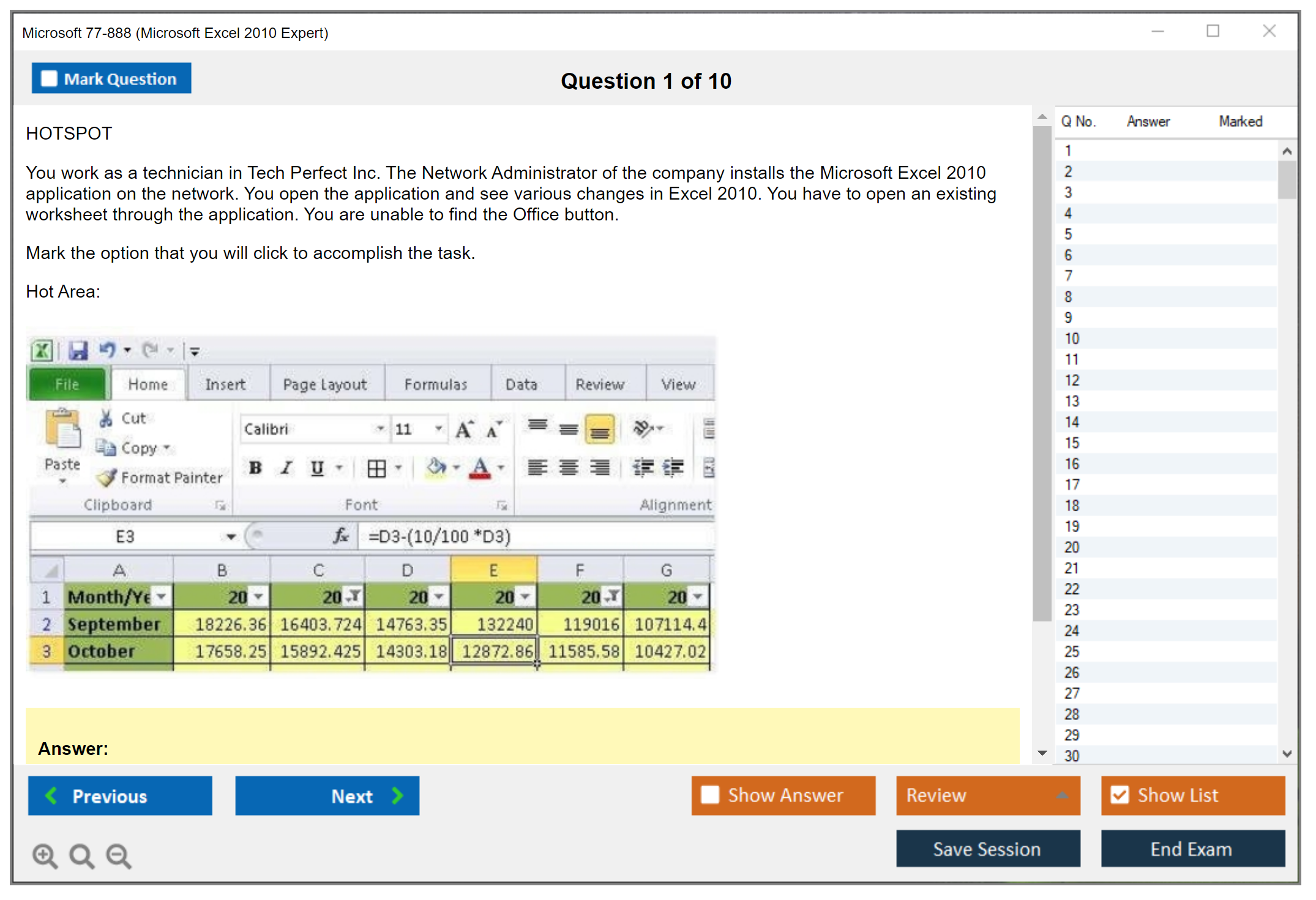 The Microsoft 77-888 (Microsoft Excel 2010 Expert) Exam is designed to certify the expertise of candidates in using Microsoft Excel 2010 to create, manage, and distribute professional spreadsheets for a variety of specialized purposes and situations.