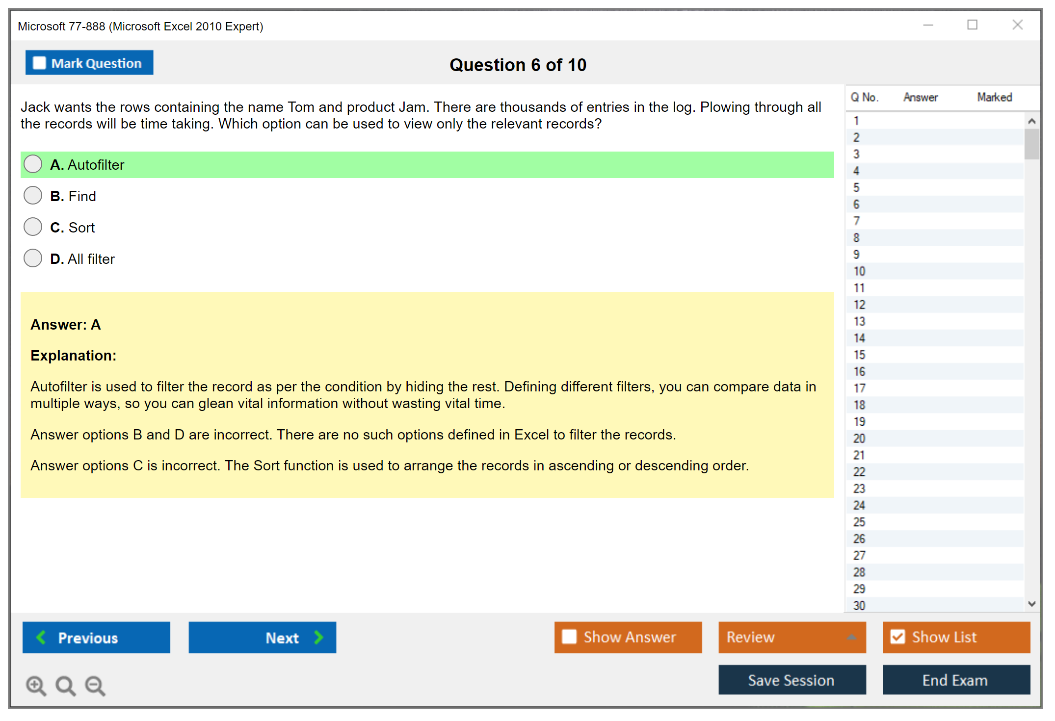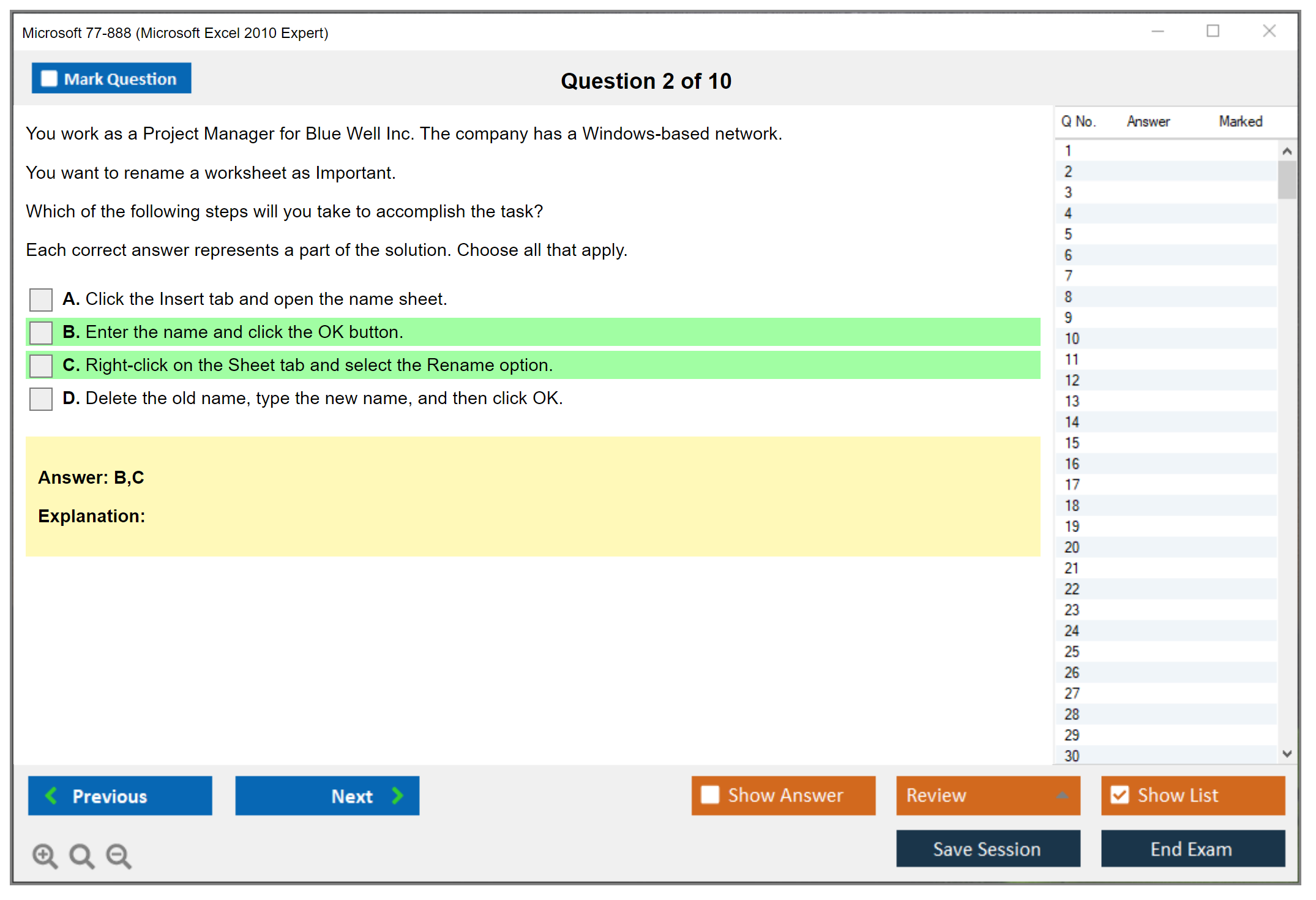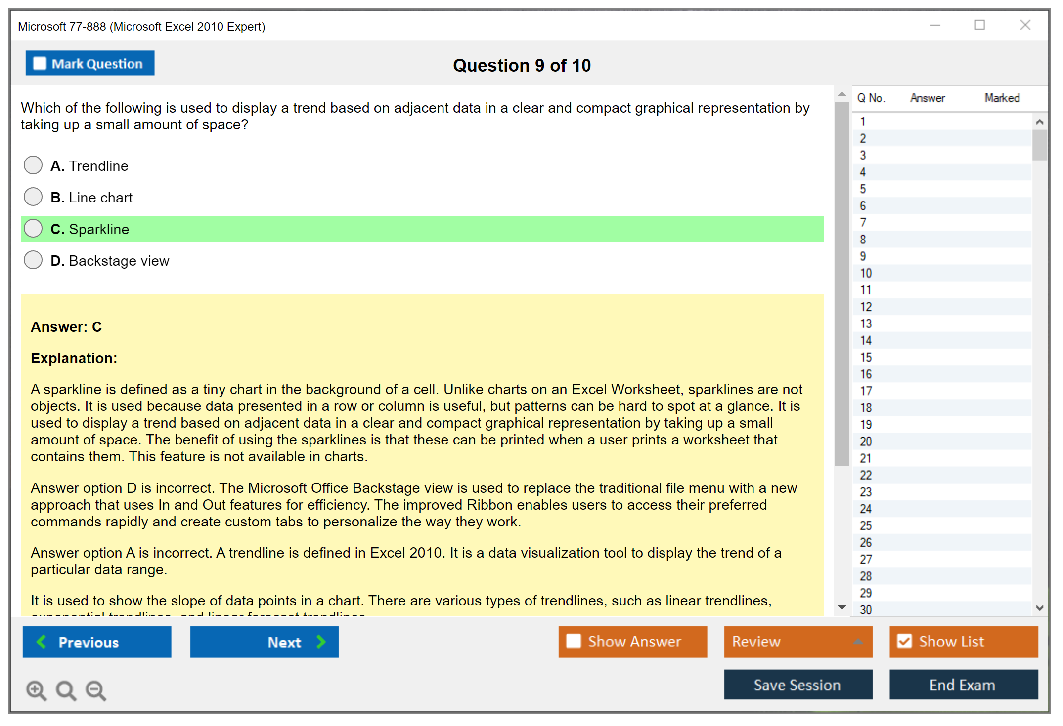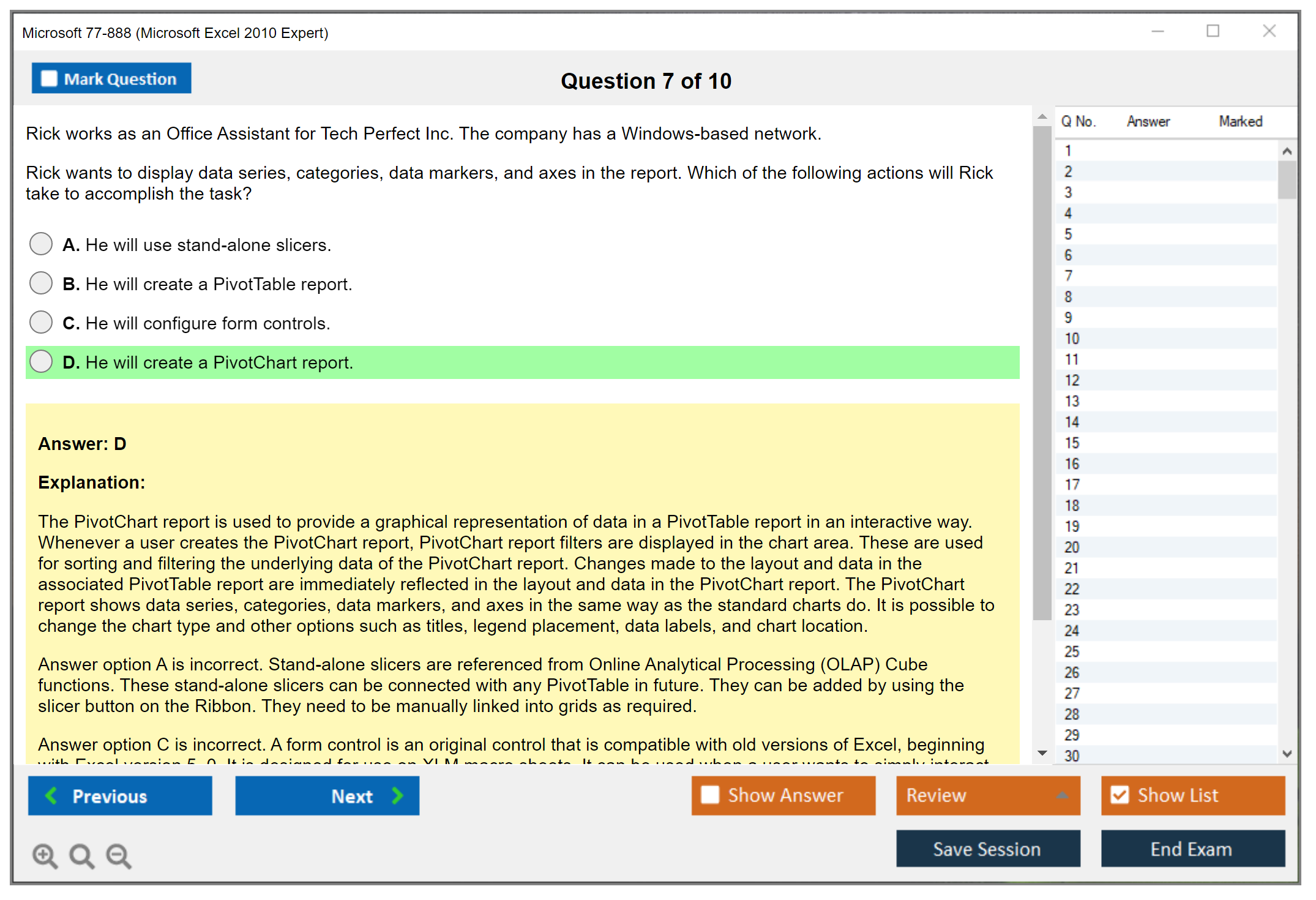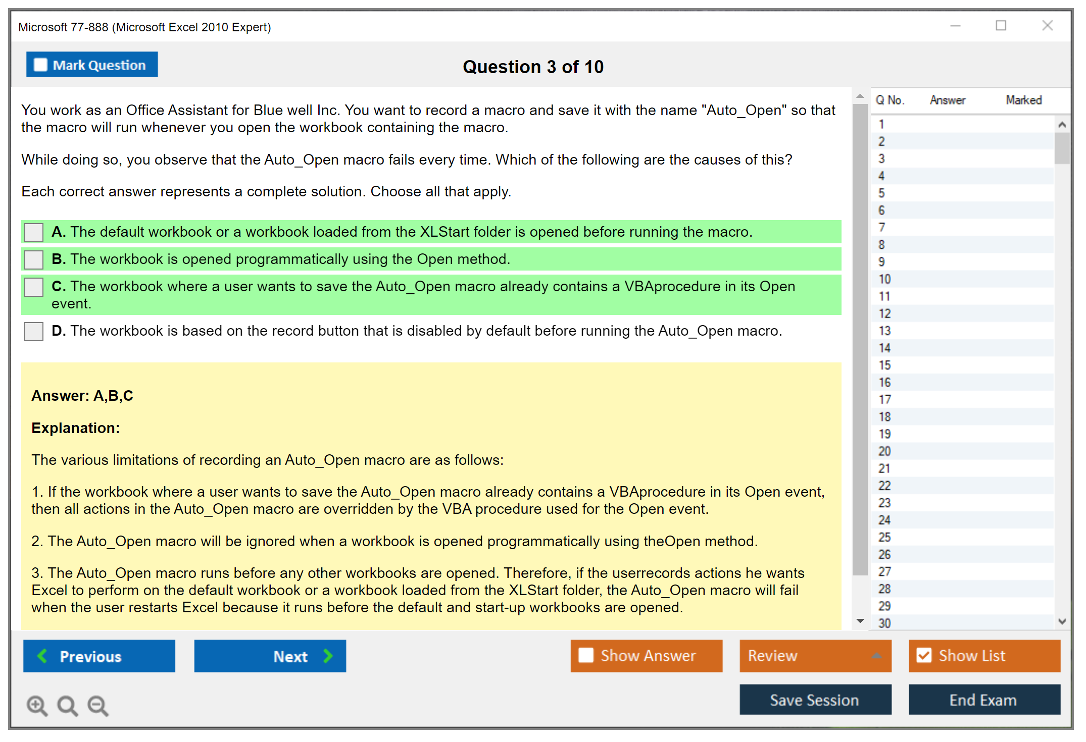 The Microsoft 77-888 (Microsoft Excel 2010 Expert) Exam is designed to certify the expertise of candidates in using Microsoft Excel 2010 to create, manage, and distribute professional spreadsheets for a variety of specialized purposes and situations.