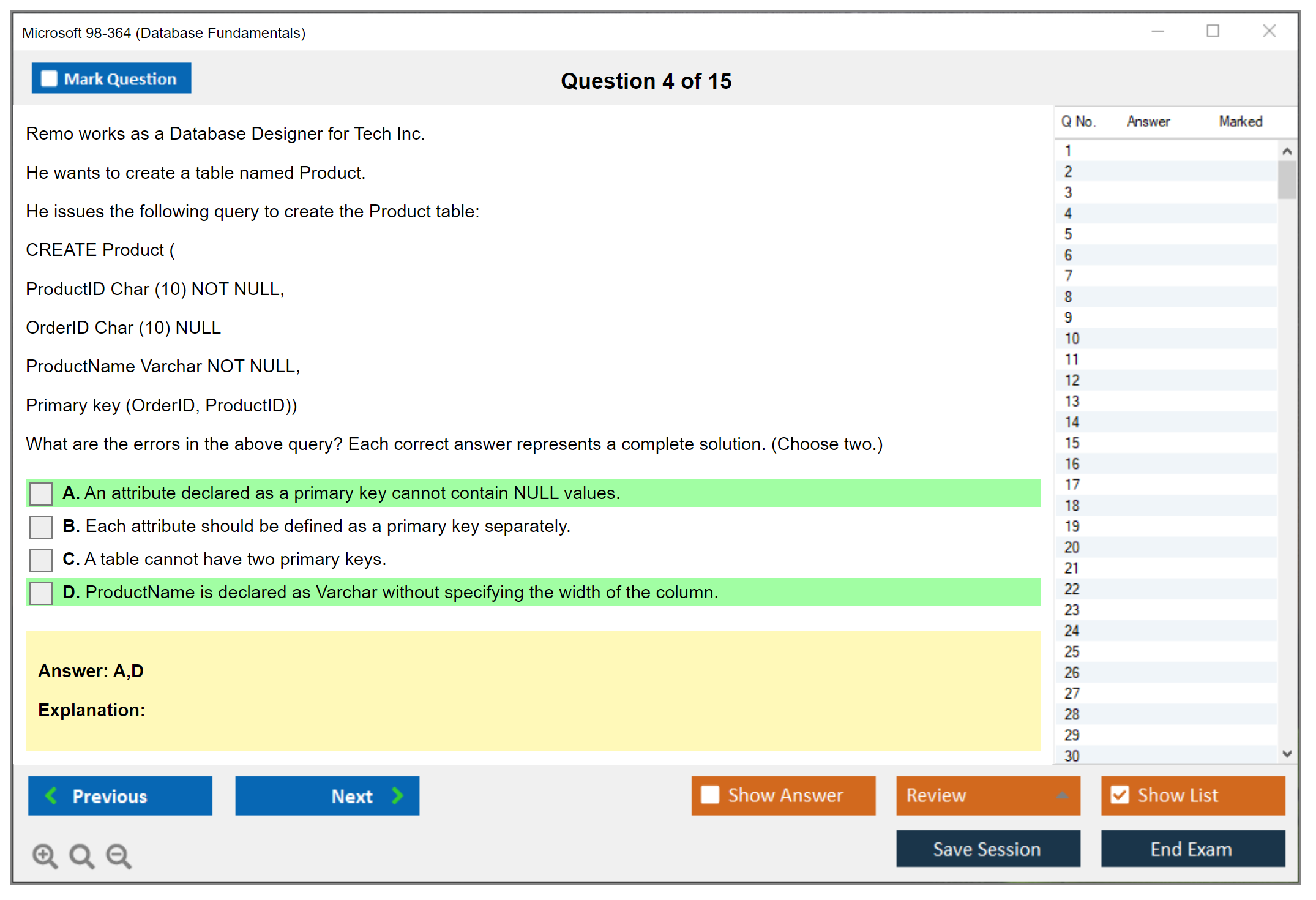 Note: Microsoft 98-364 (Database Fundamentals) will not receive any new updates.