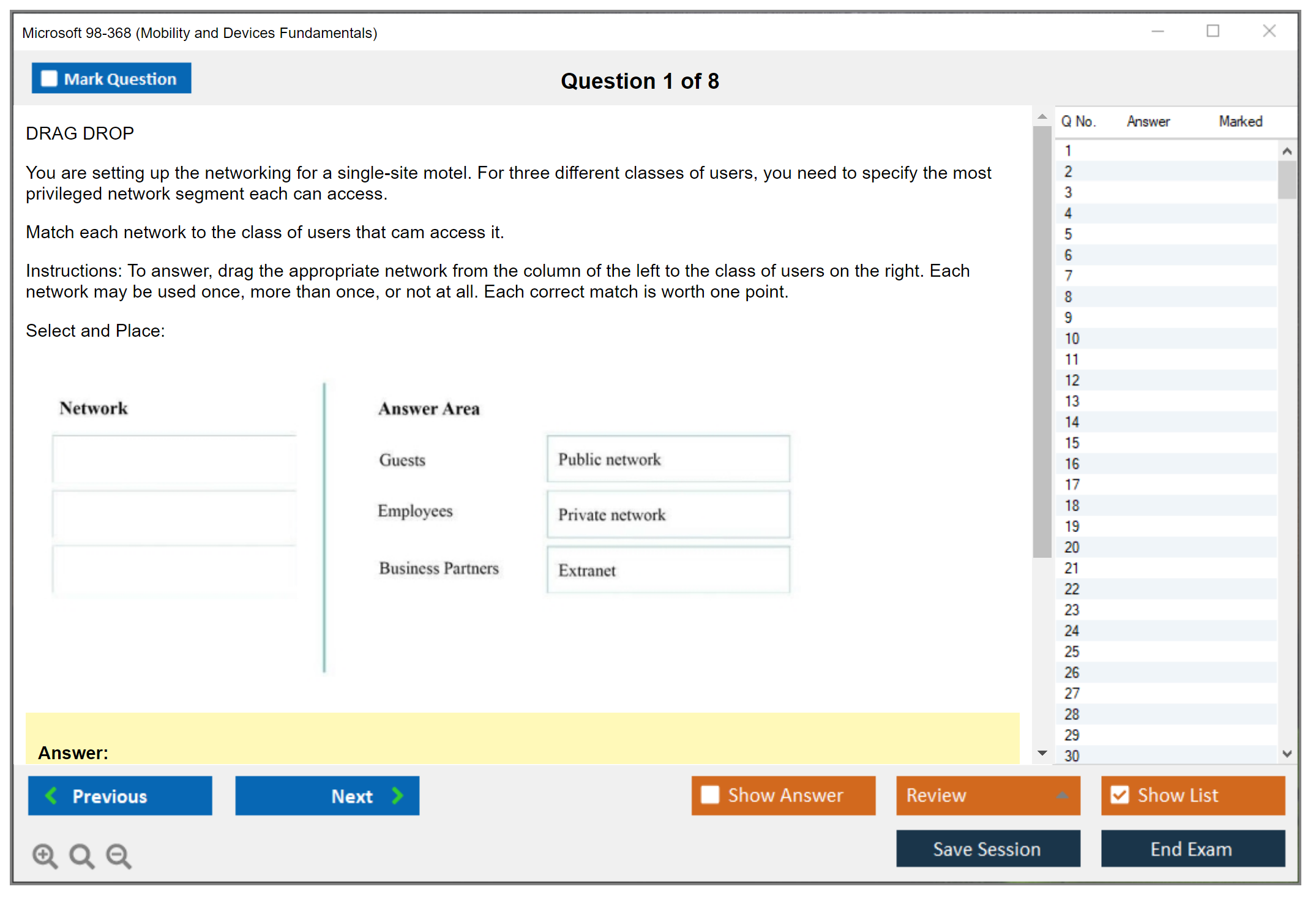 The Microsoft 98-368 exam, also known as Mobility and Devices Fundamentals, is intended for individuals looking to validate their basic understanding of mobile device management and cloud services. It is part of the Microsoft Technology Associate (MTA) certification track.