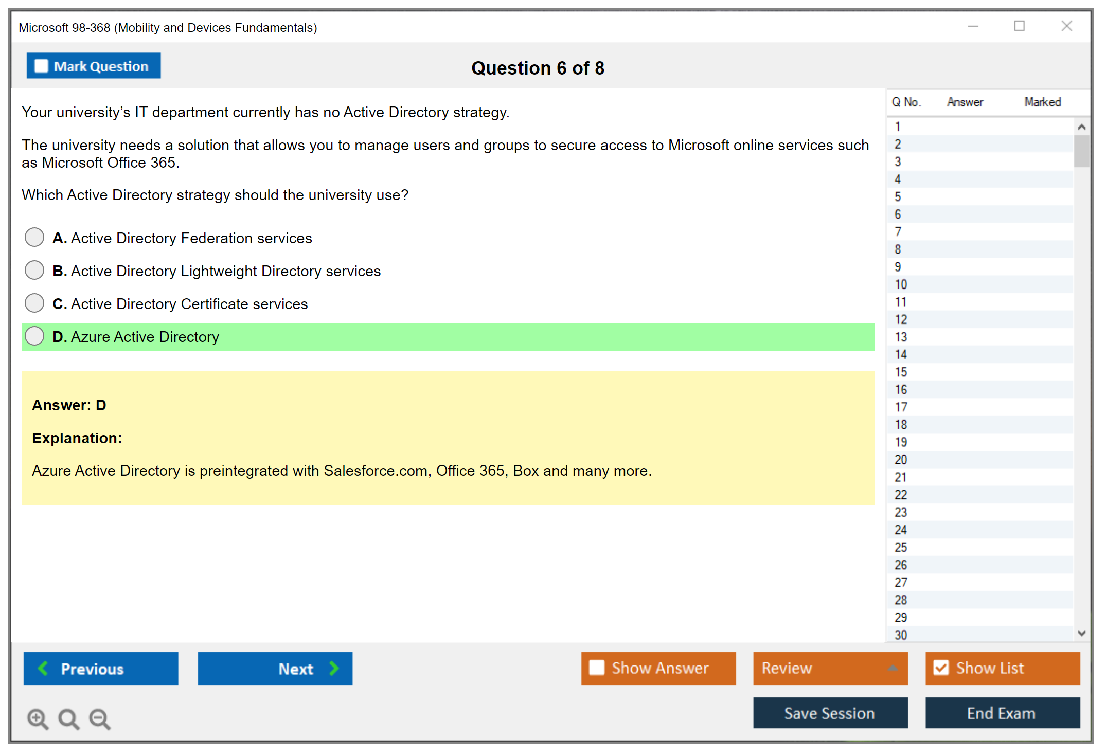 Note: Microsoft 98-368 (Mobility and Devices Fundamentals) will not receive any new updates.