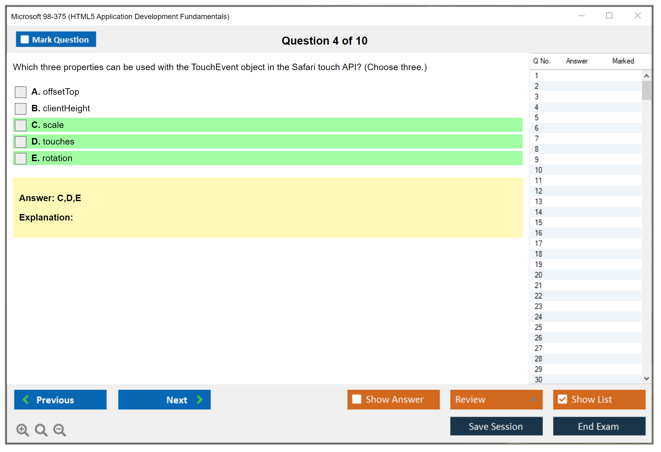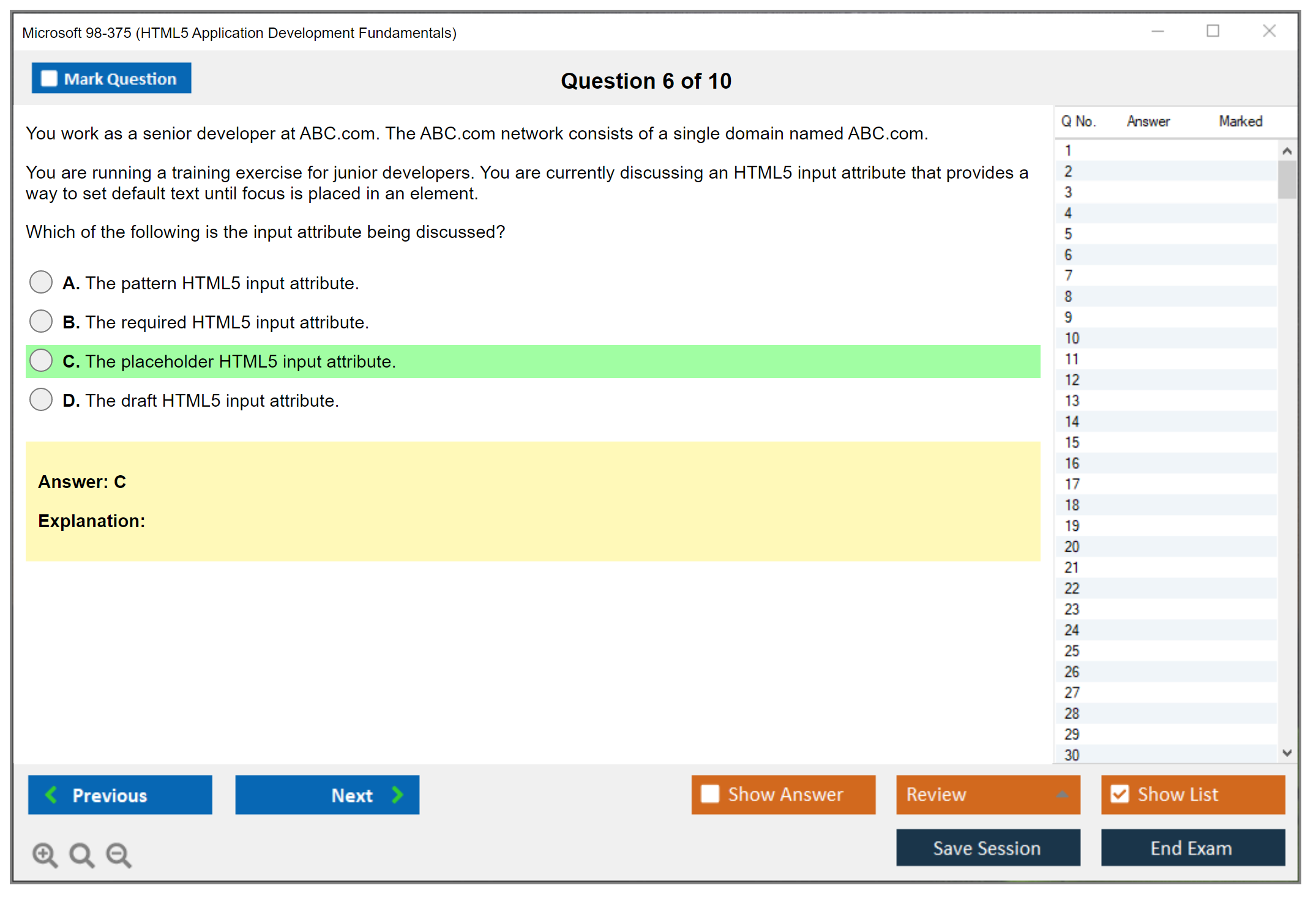 The Microsoft 98-375 (HTML5 Application Development Fundamentals) exam is designed to test the candidate's knowledge and skills in developing applications using HTML5, CSS3, and JavaScript. It covers fundamental concepts of HTML5-based application development.