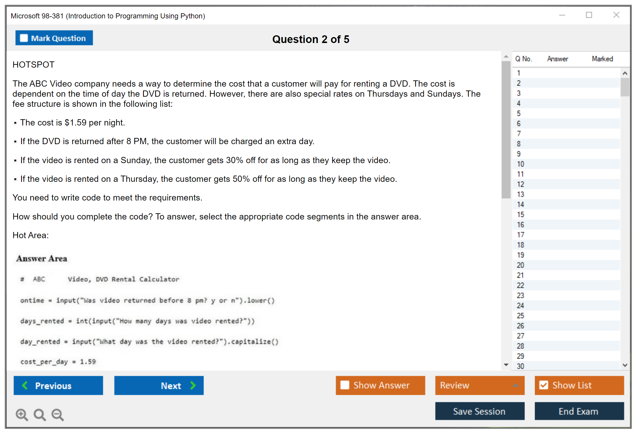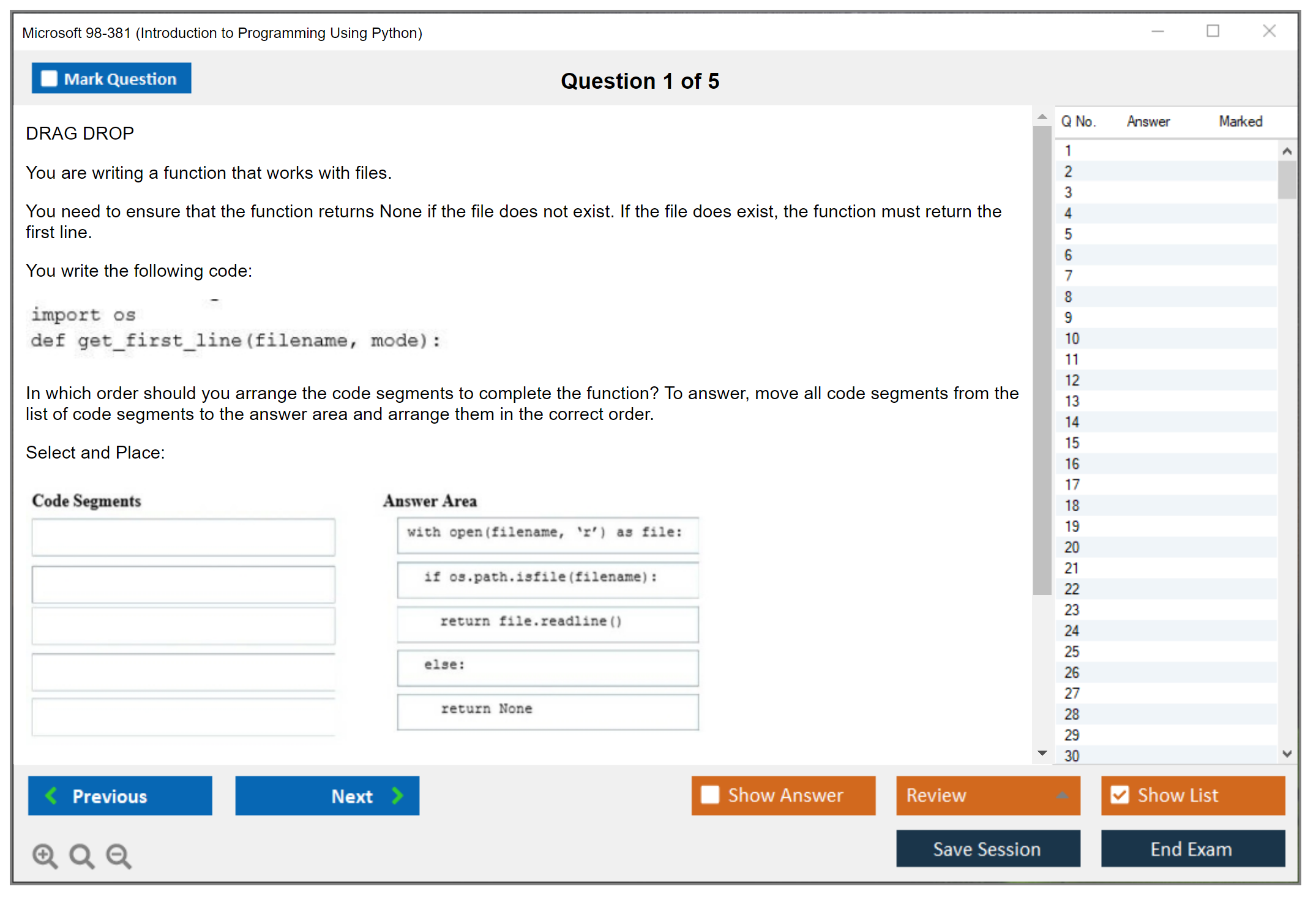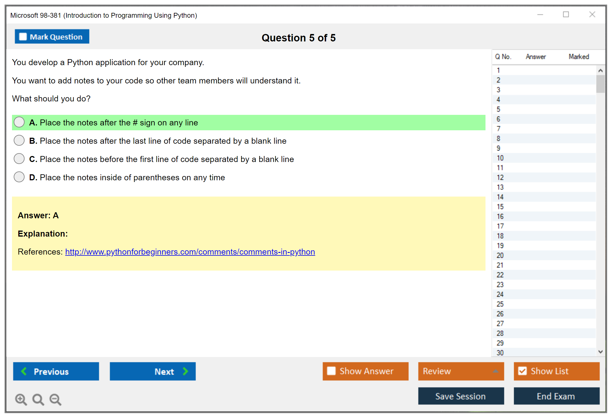 The Microsoft 98-381 exam, also known as Introduction to Programming Using Python, is designed to assess candidates' understanding of basic Python programming concepts. It tests knowledge of data types, control flow, error handling, and more.