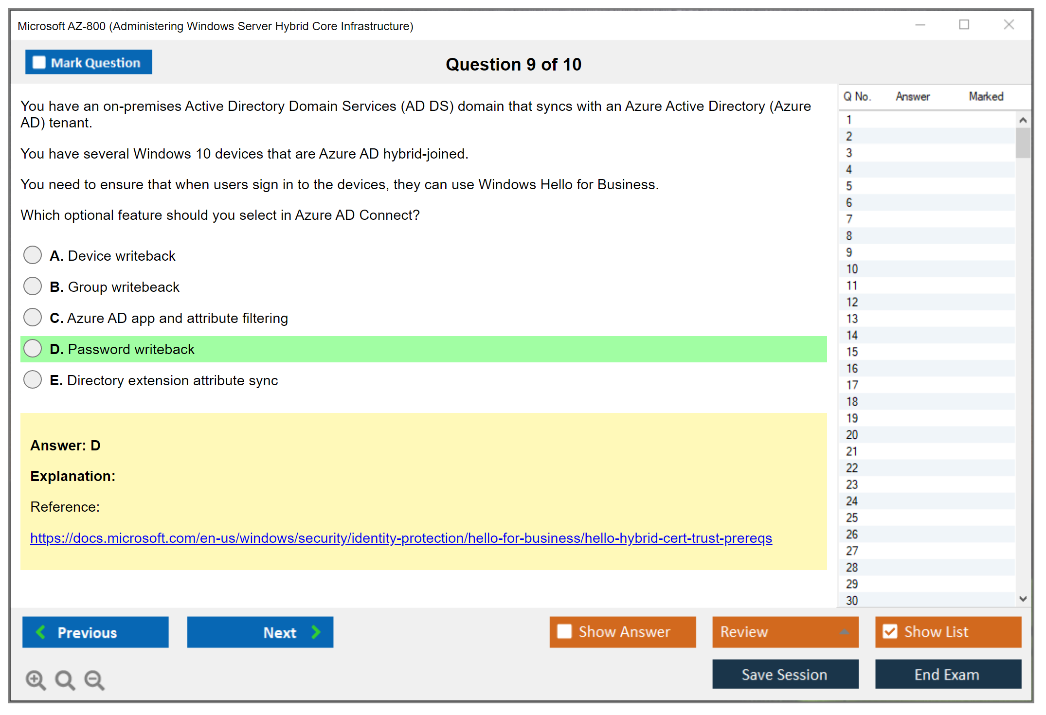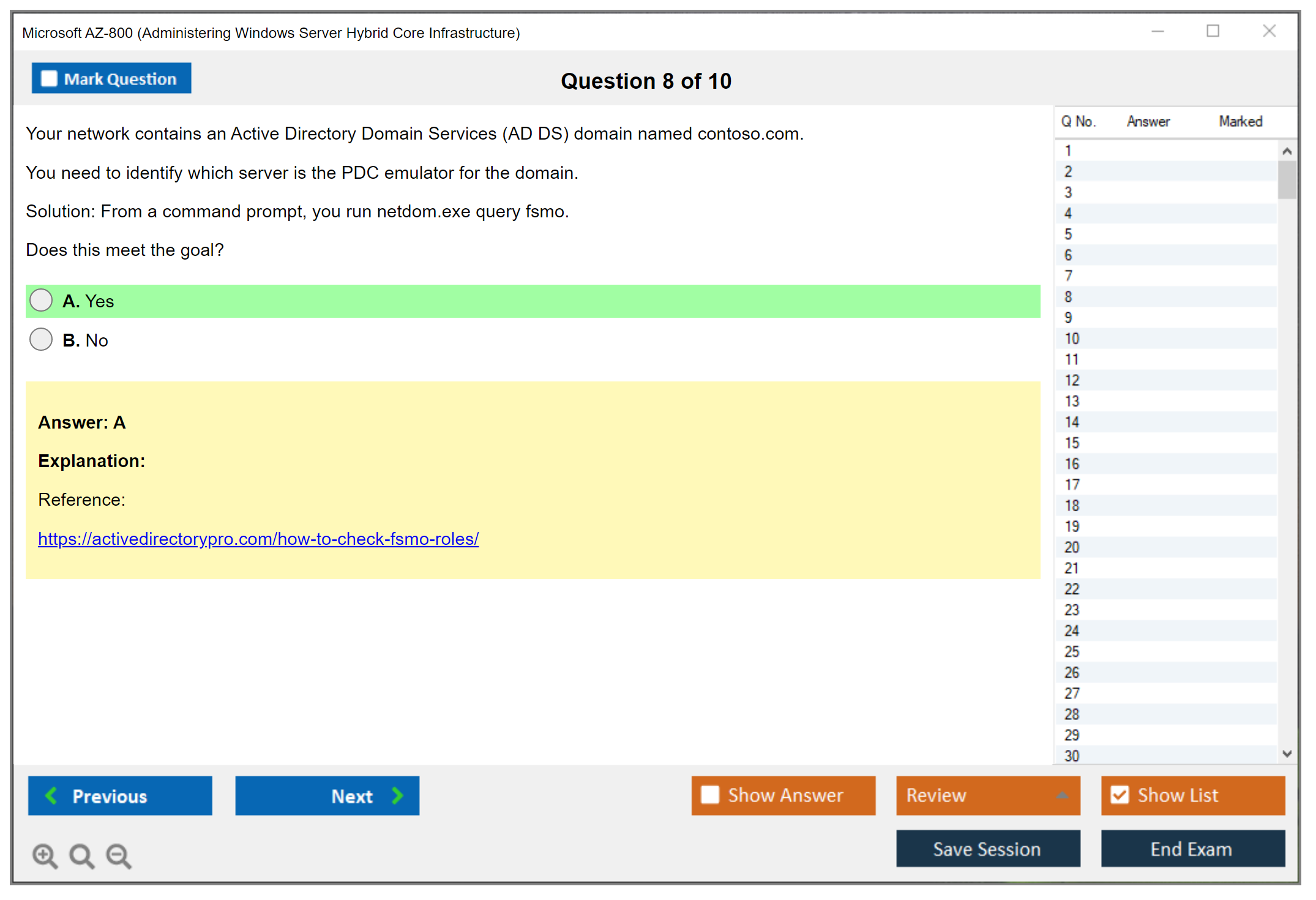 You can take the Microsoft AZ-800 exam online through a remote proctoring service or at an authorized Pearson VUE testing center.