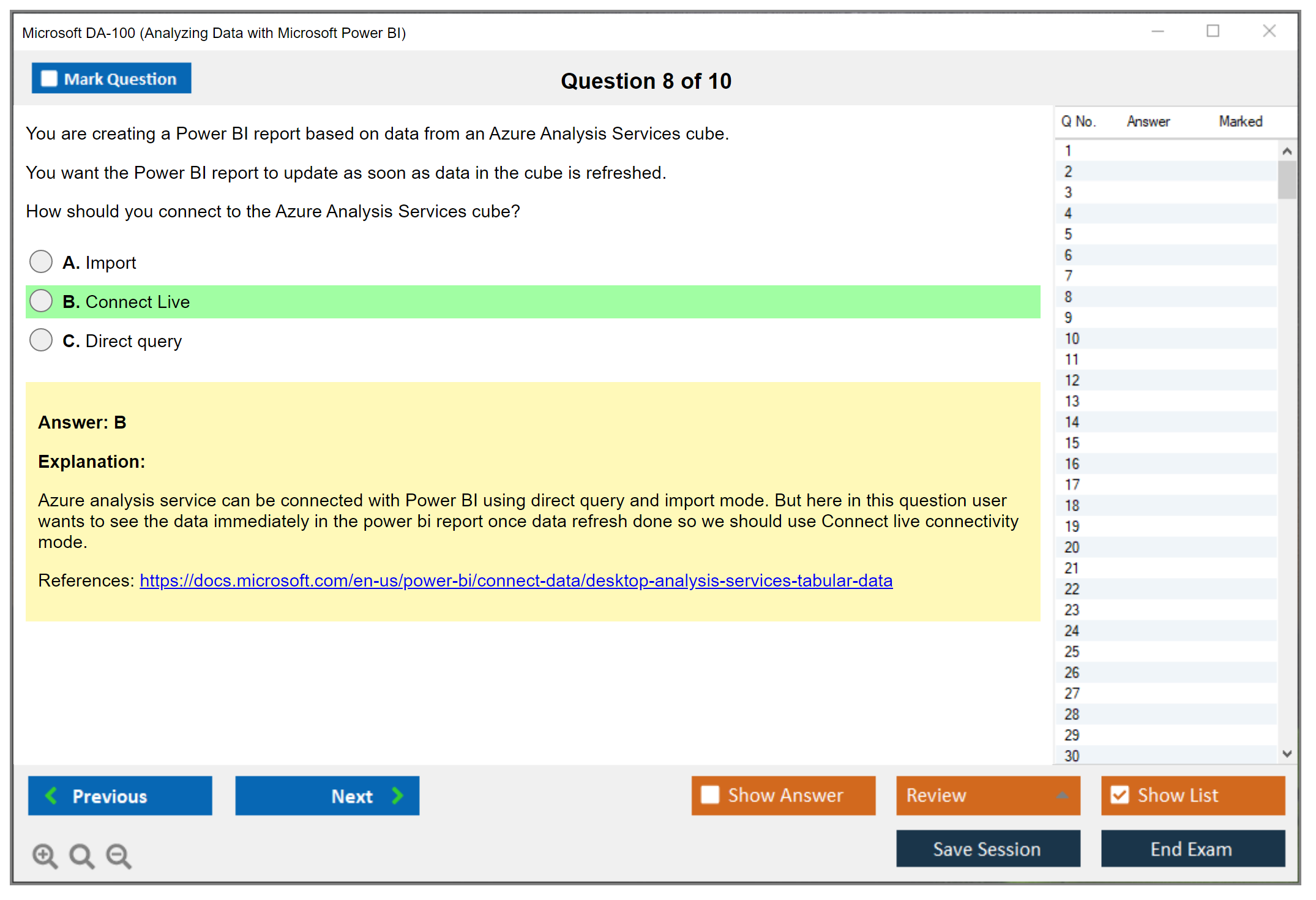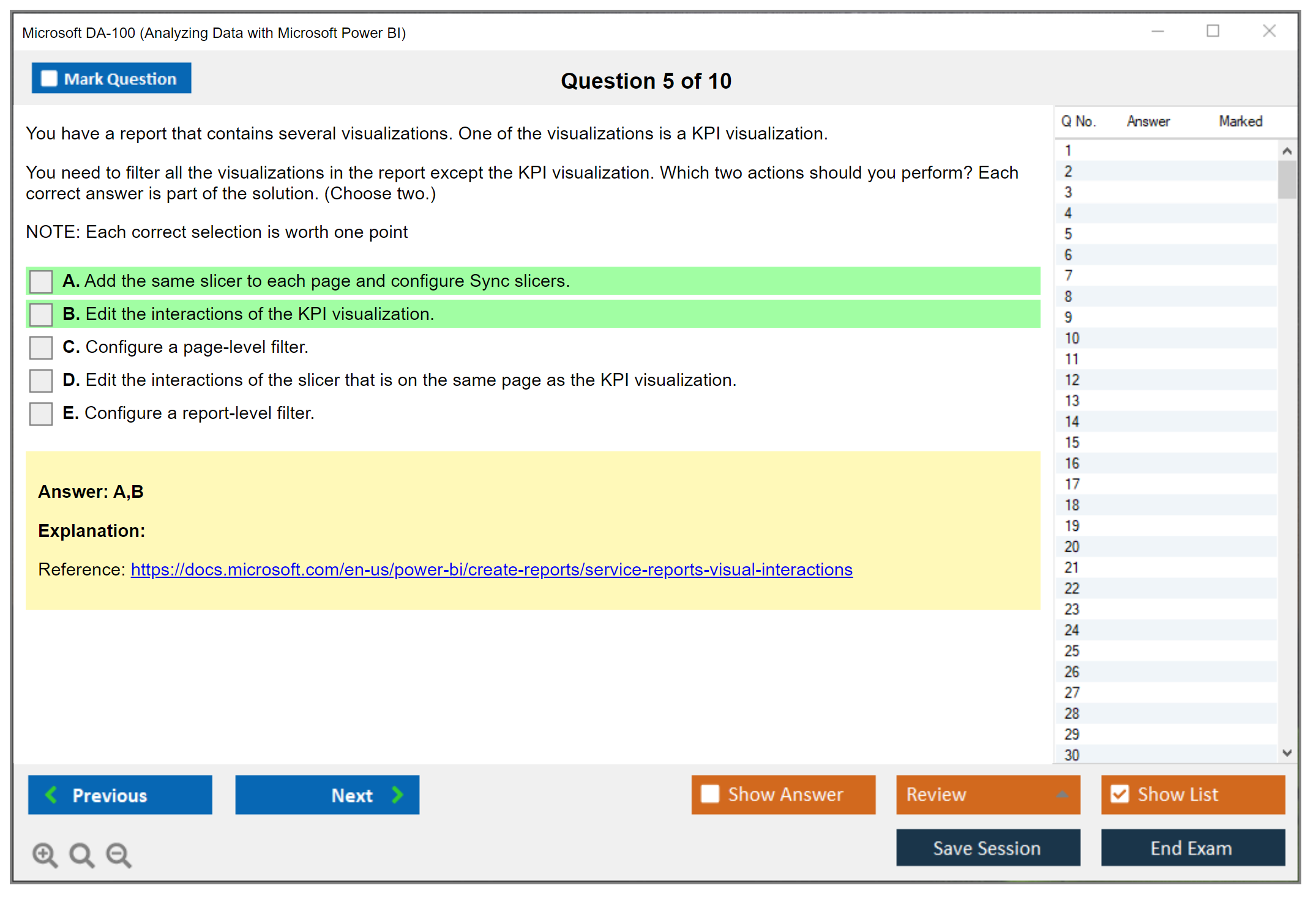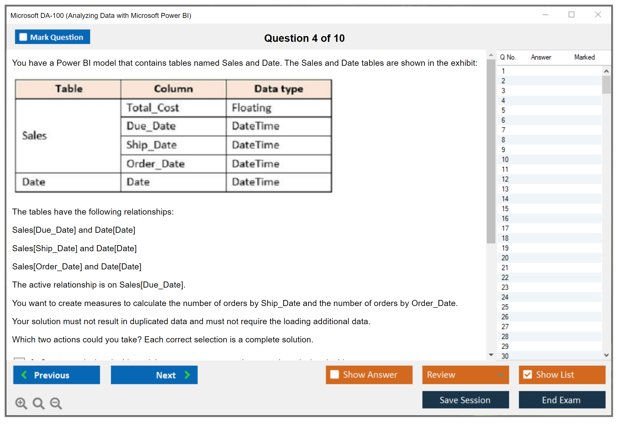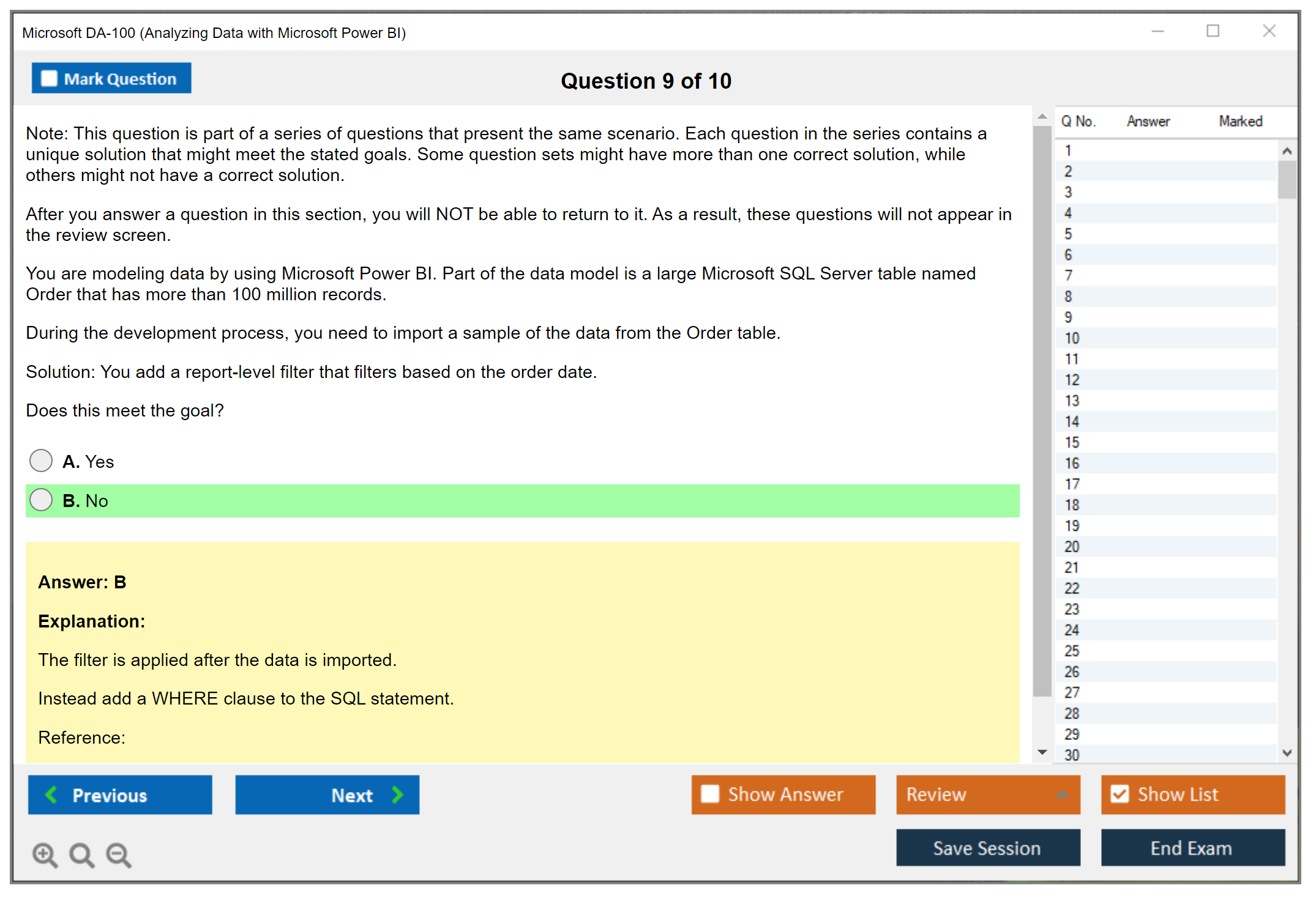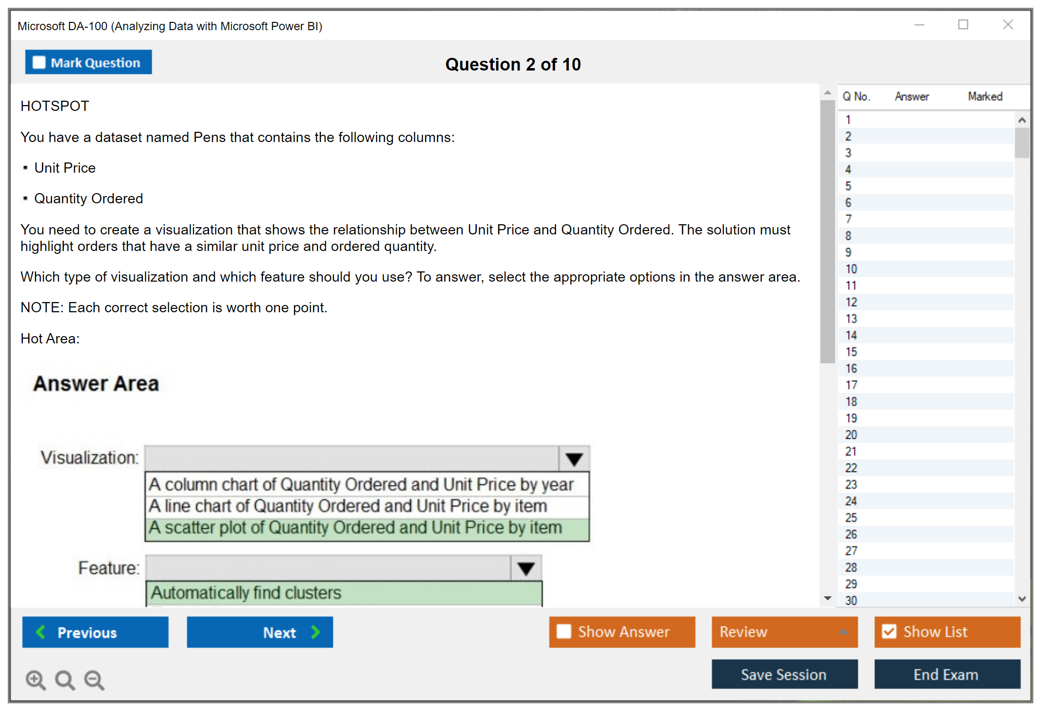 What are the Sample Questions of Microsoft DA-100 Exam?