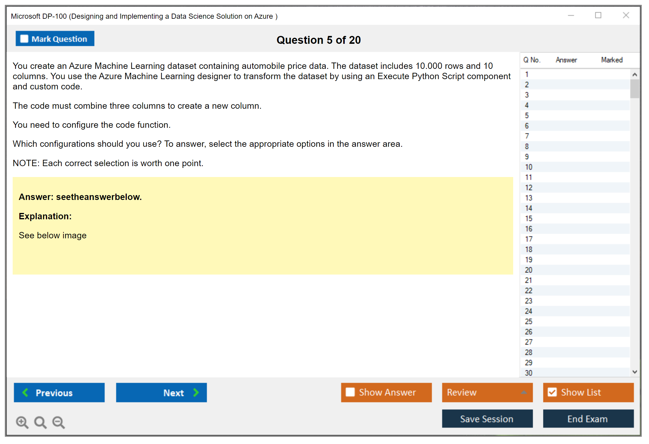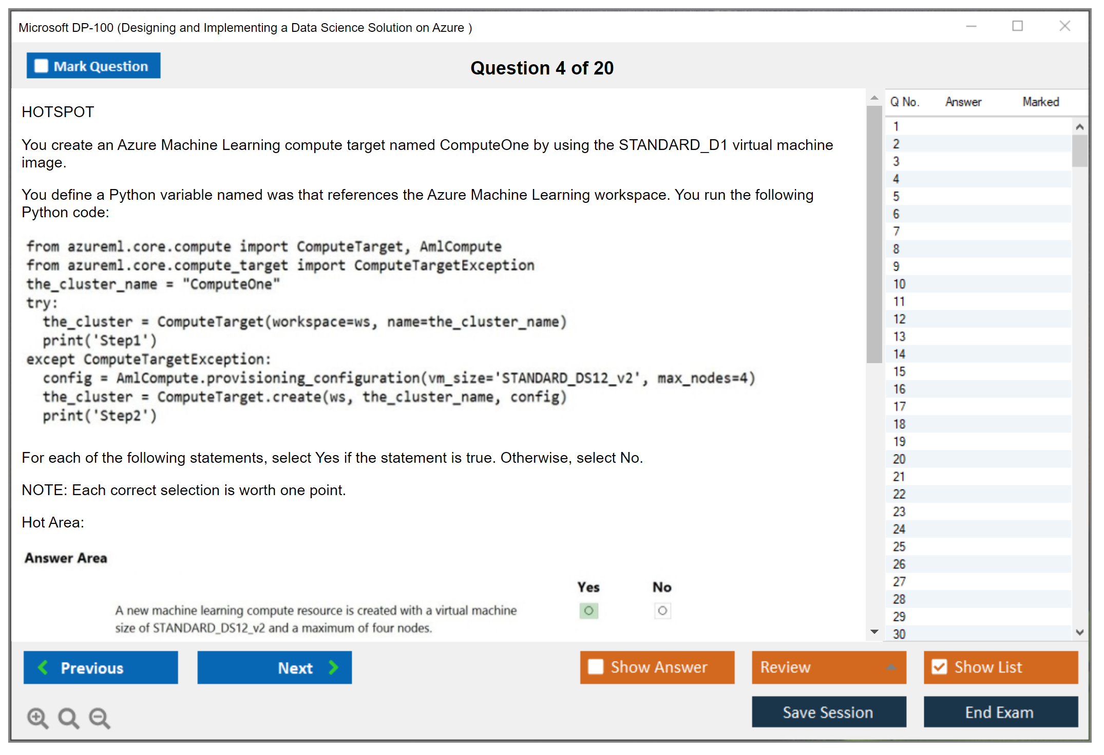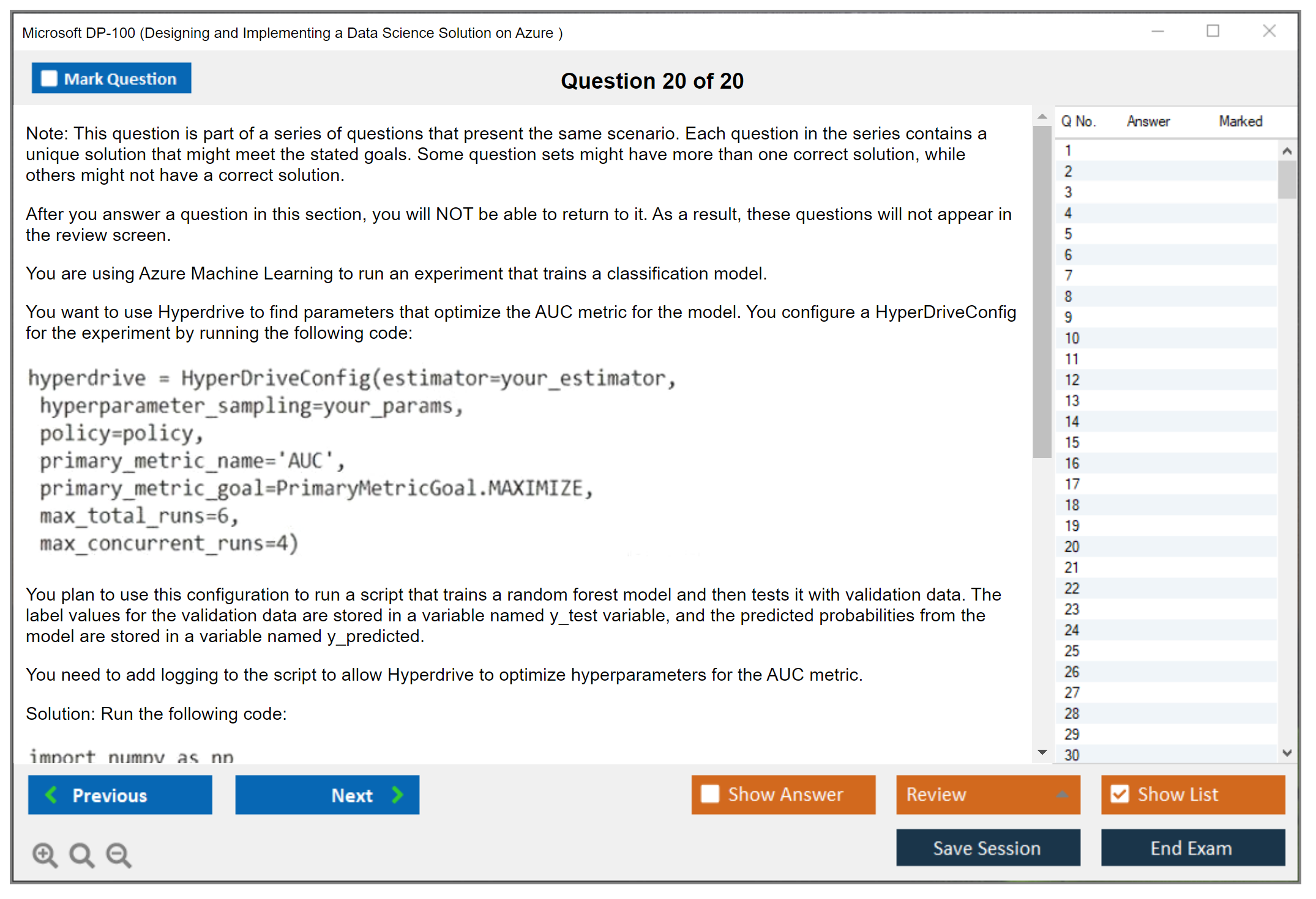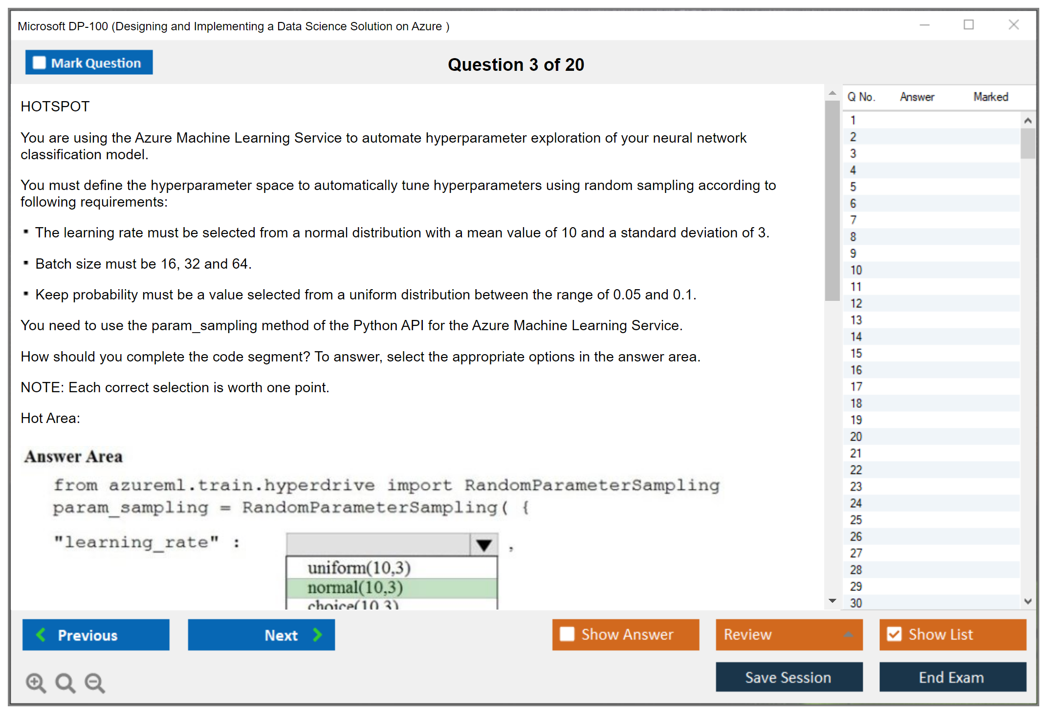 What are the Sample Questions of Microsoft DP-100 Exam?