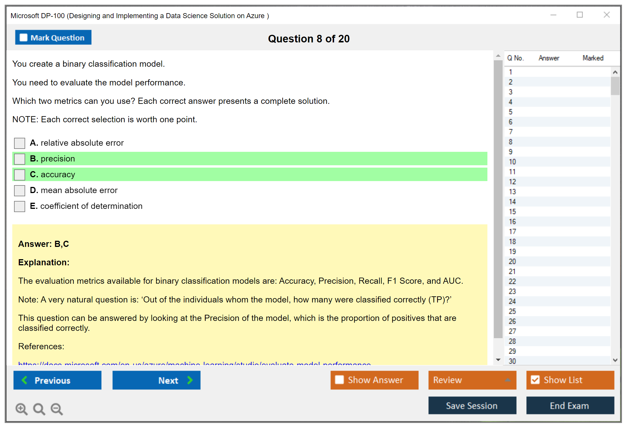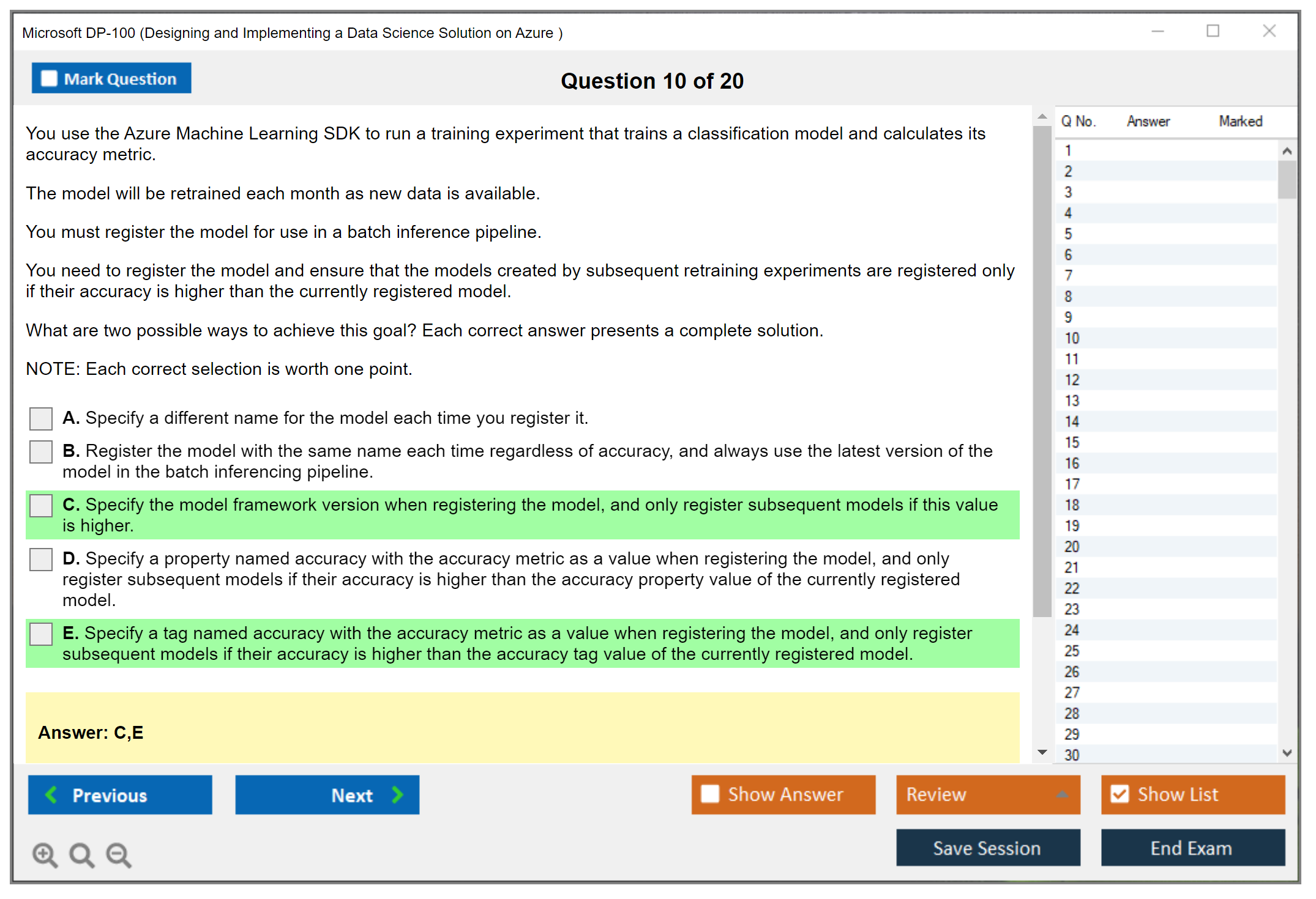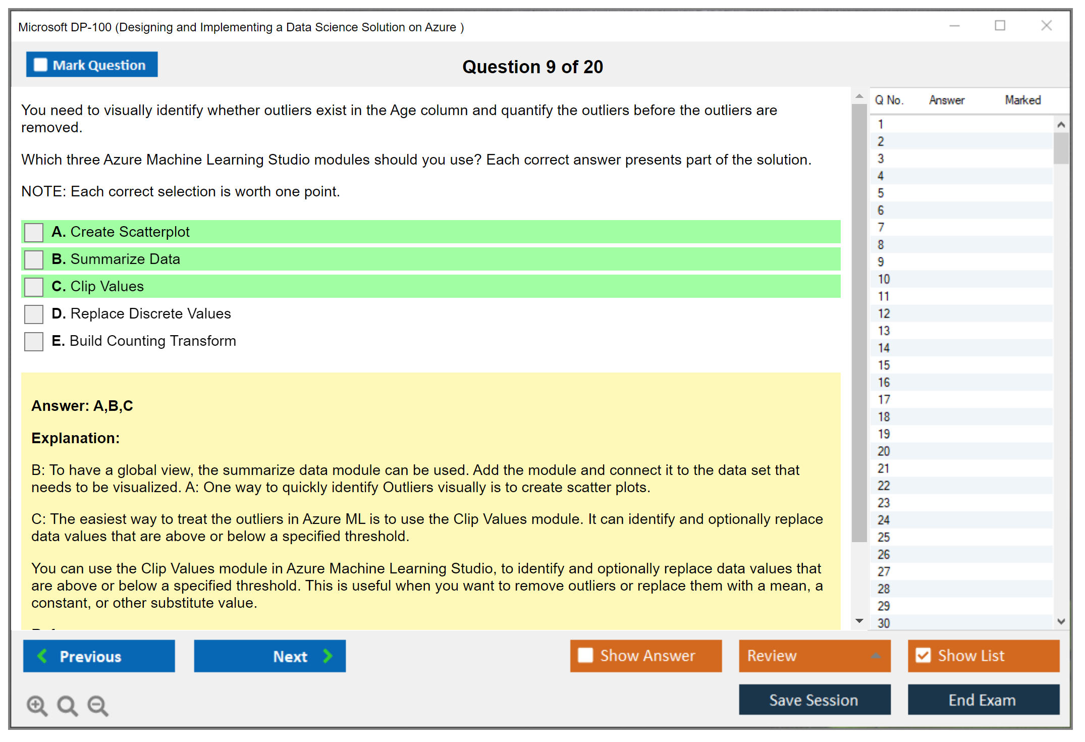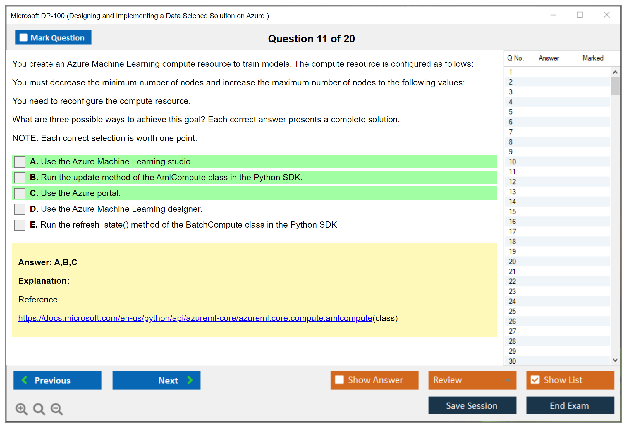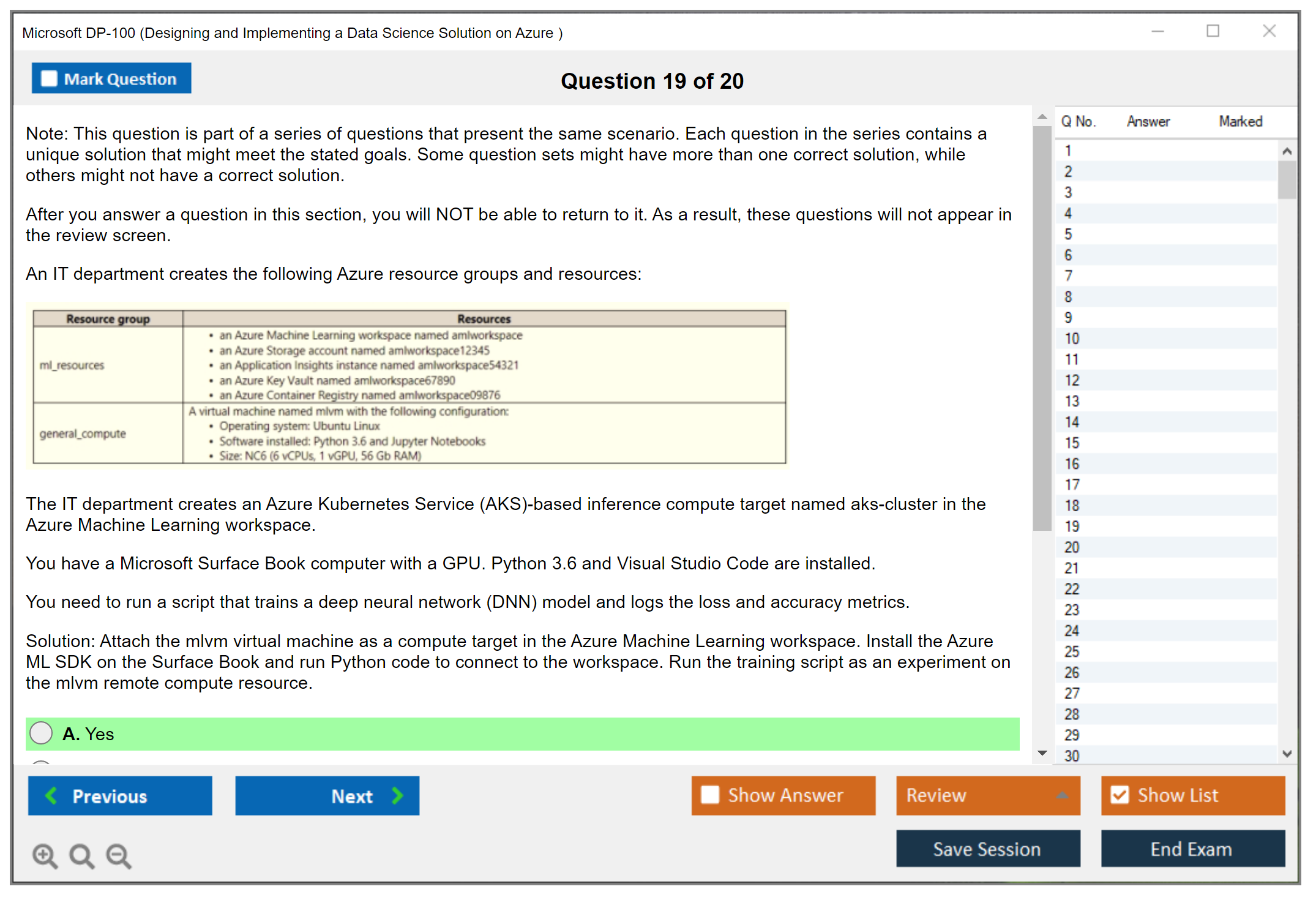What are the Sample Questions of Microsoft DP-100 Exam?