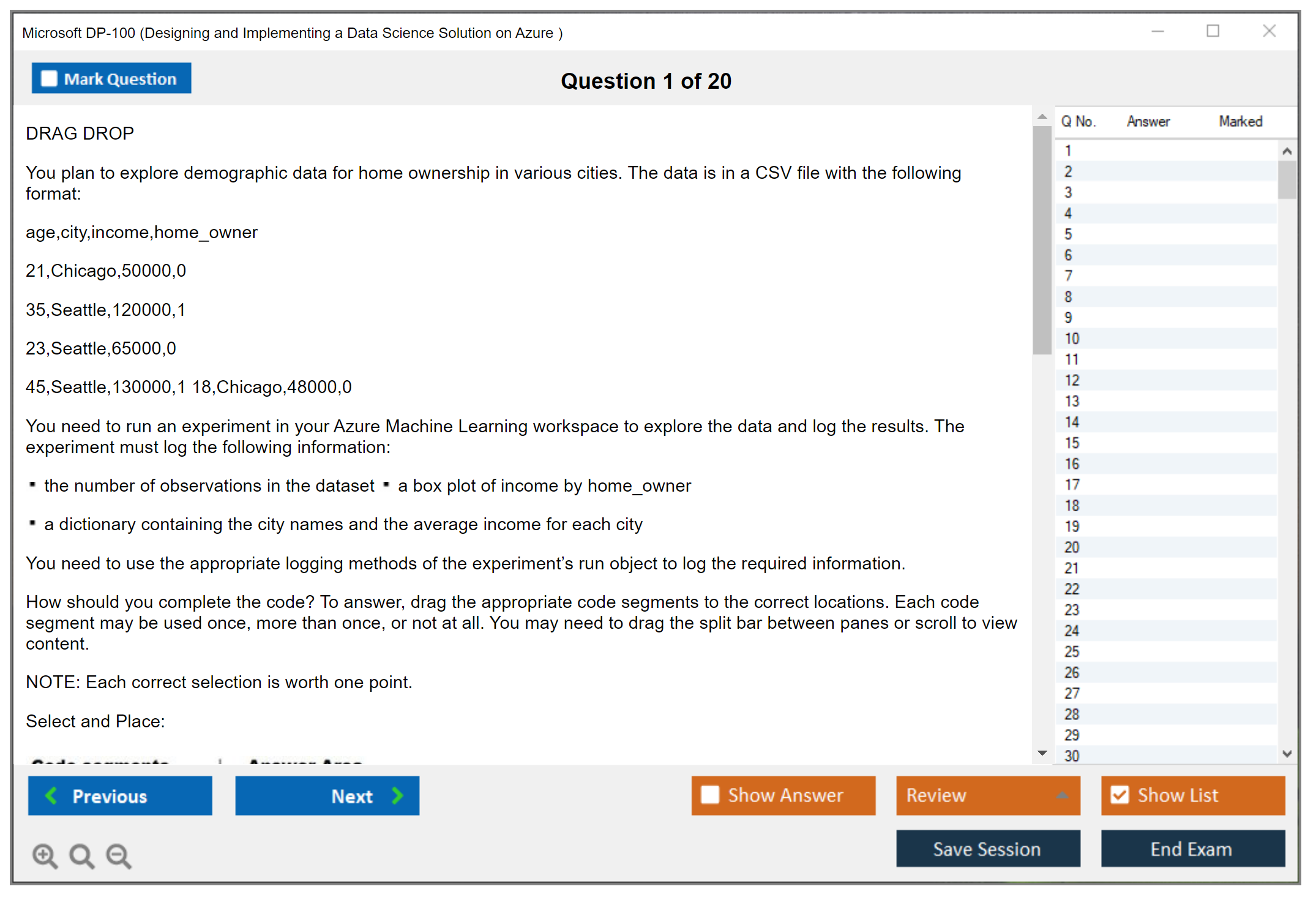 You can take the Microsoft DP-100 exam online via a proctored environment or at a certified testing center.