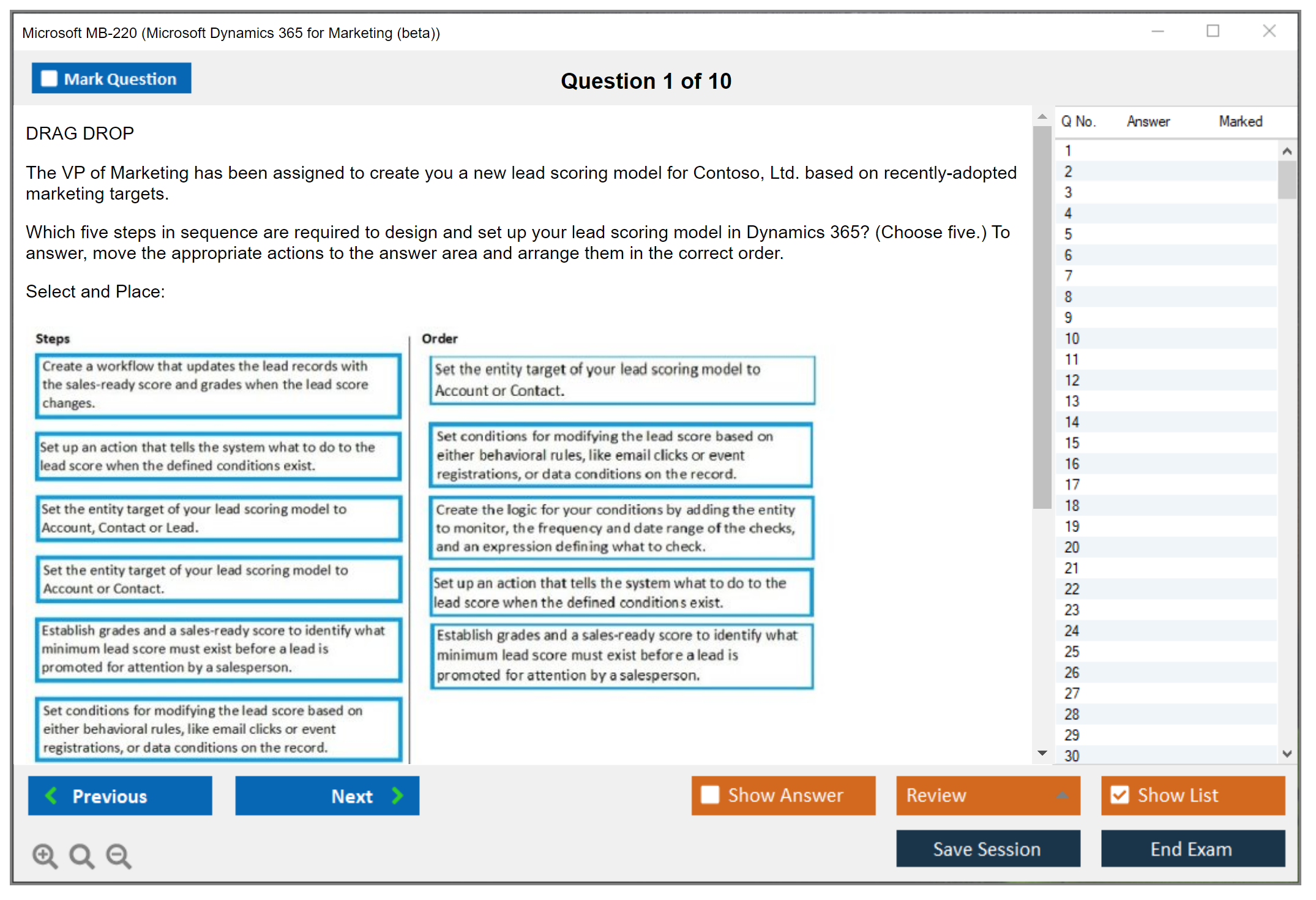 What are the Sample Questions of Microsoft MB-220 Exam?
