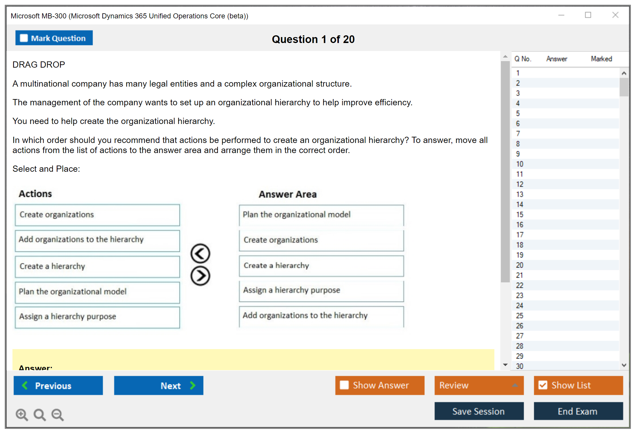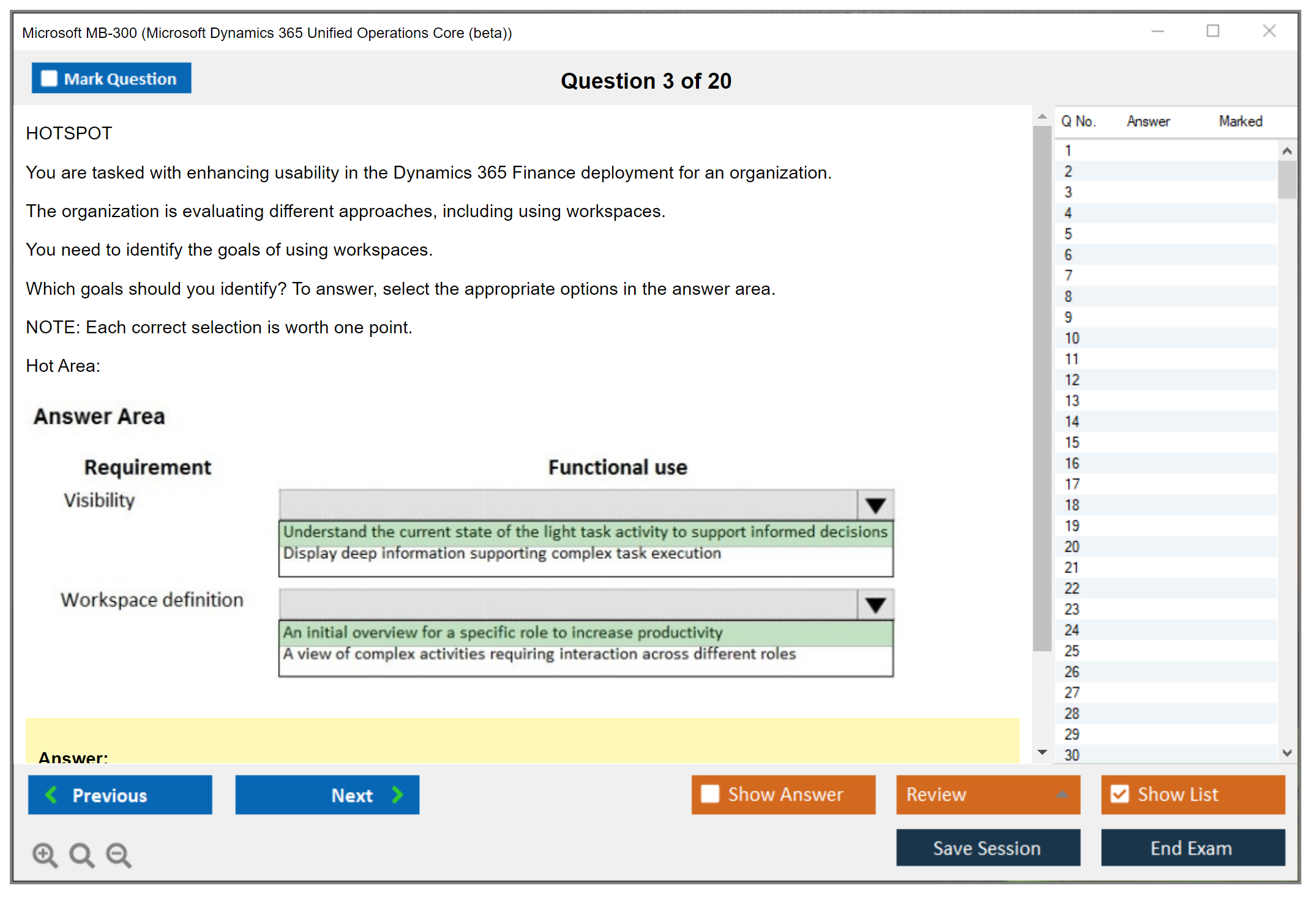 The Microsoft MB-300 exam, also known as Microsoft Dynamics 365: Core Finance and Operations, is designed to measure a candidate's ability to understand and use the core features and functionalities of the Dynamics 365 Finance and Operations applications. It covers topics such as configuring and using essential components, managing core finance and operations, and implementing security and compliance features.