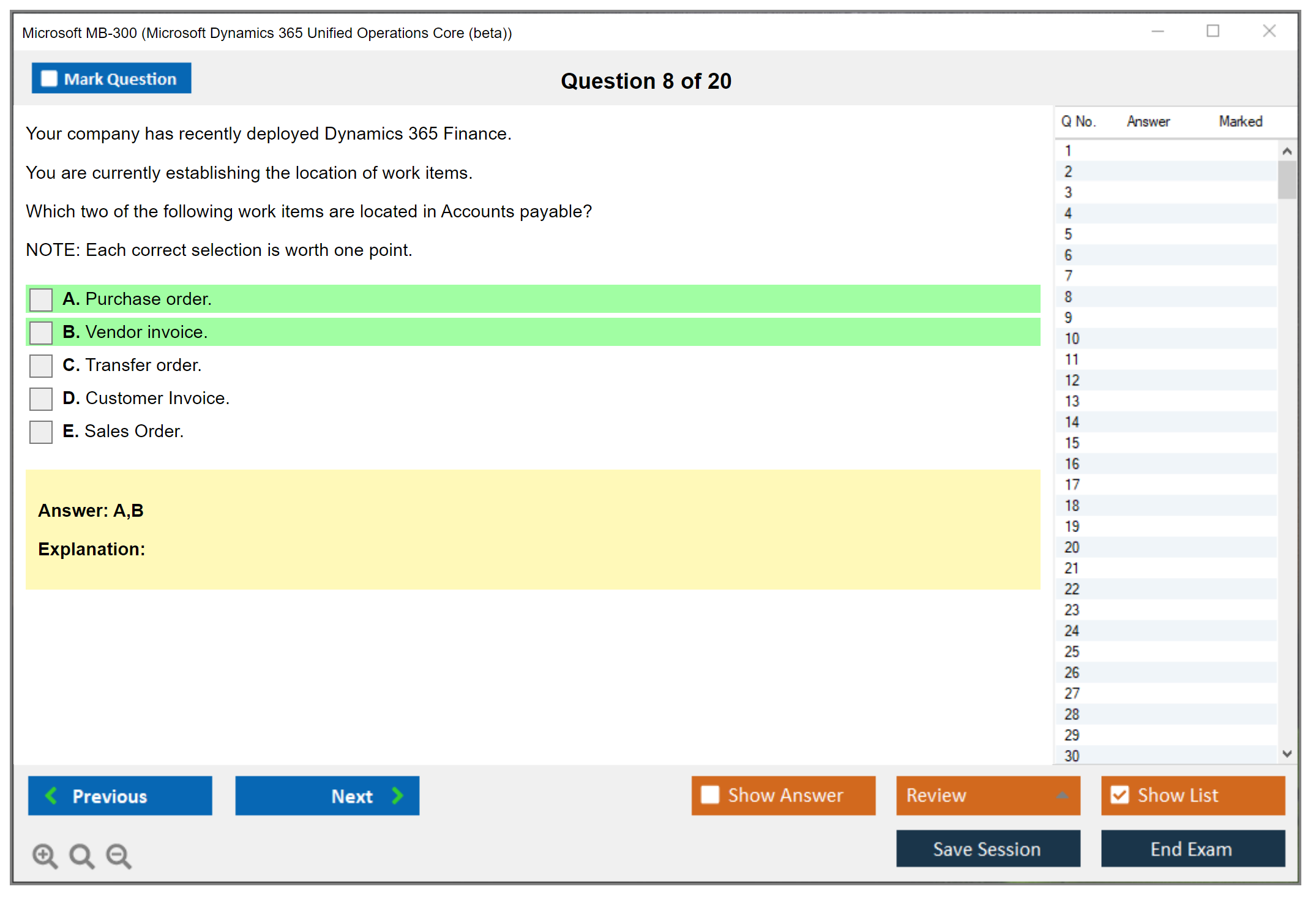 The Microsoft MB-300 exam is a certification exam that assesses a candidate's proficiency in the core functionalities of Microsoft Dynamics 365 Finance and Operations. It is aimed at professionals who work with enterprise resource planning (ERP) systems and are responsible for implementing and managing Dynamics 365 solutions.