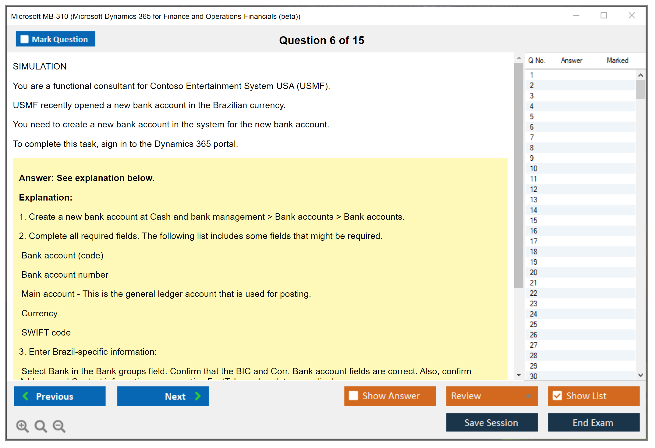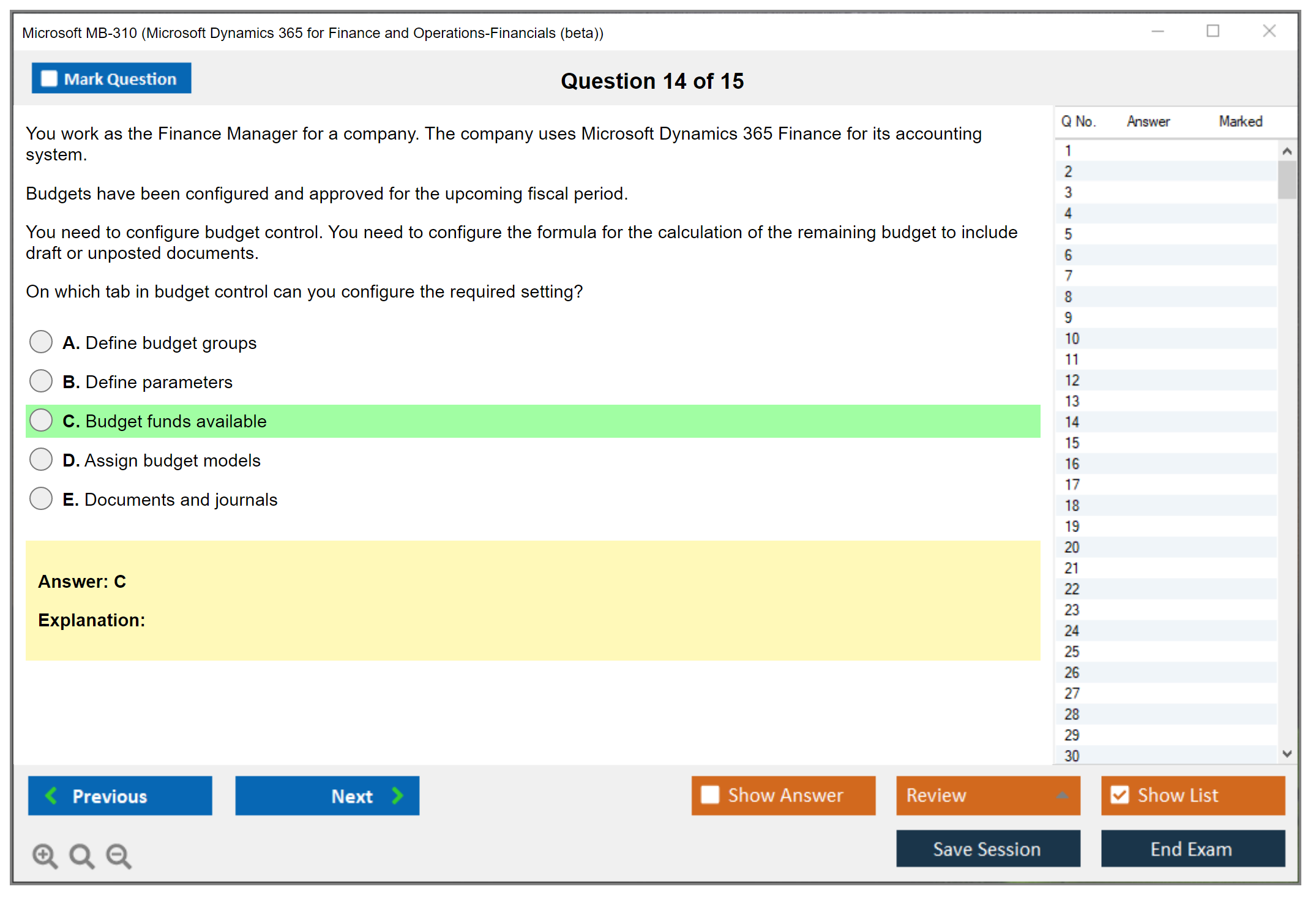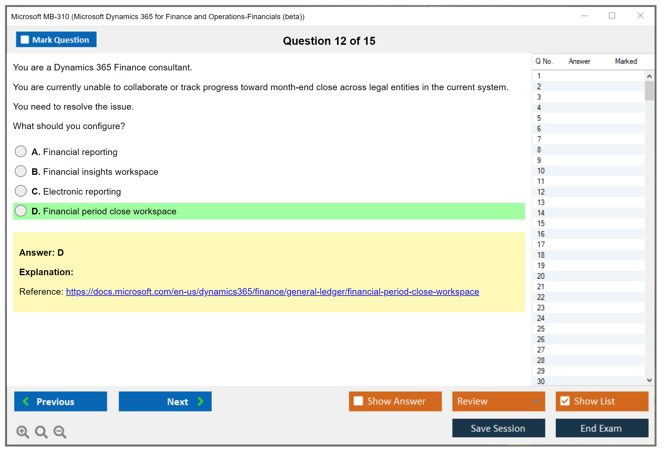 The Microsoft MB-310 exam, also known as Microsoft Dynamics 365 Finance, is designed to assess the knowledge and skills of a candidate in managing and implementing financial operations within Dynamics 365 Finance. This includes tasks such as configuring and using essential components, managing budgets, fixed assets, and financial operations.