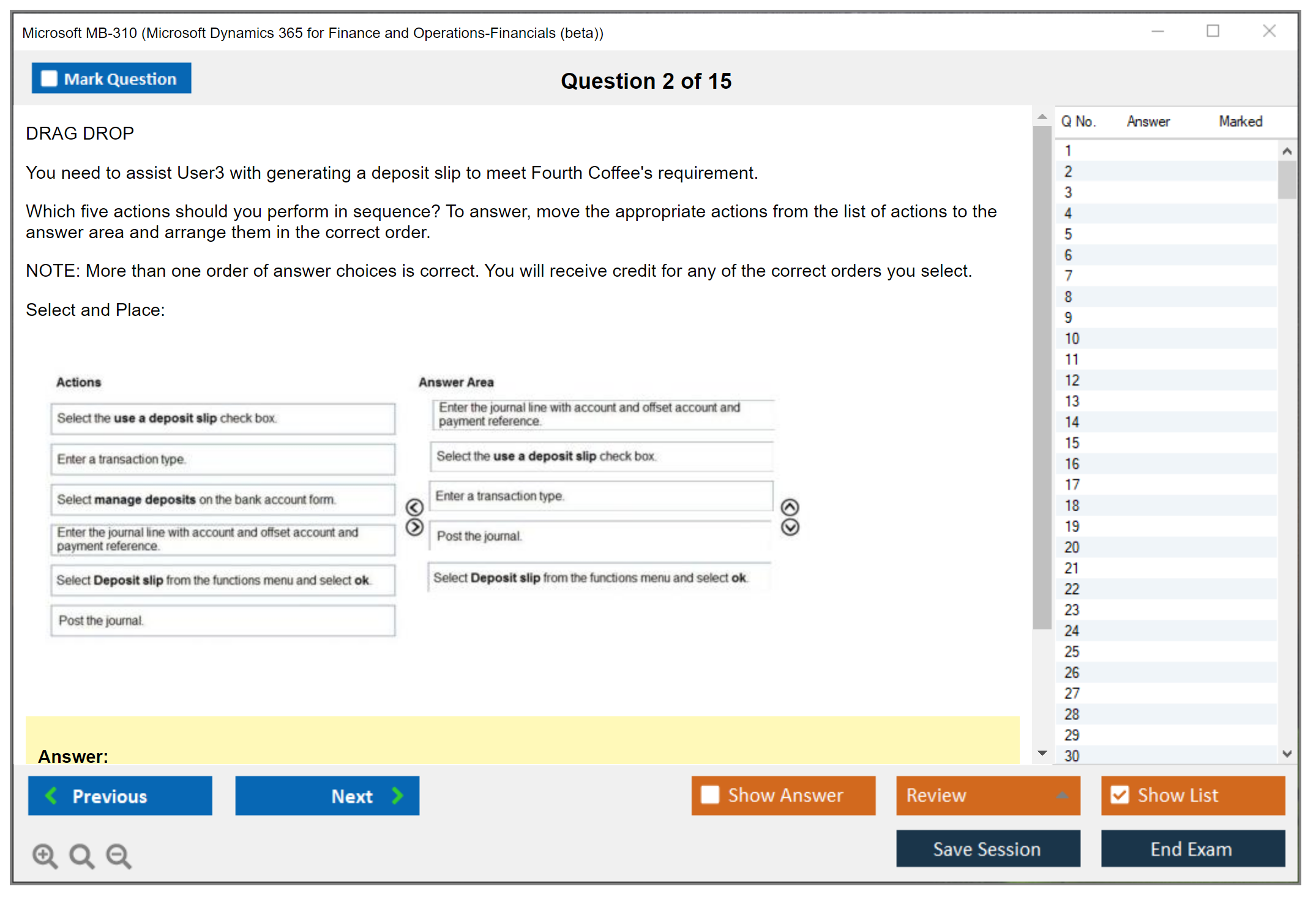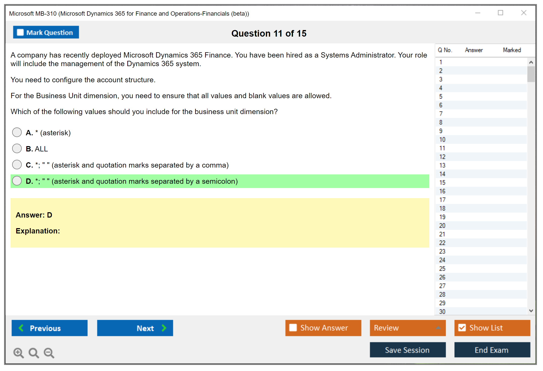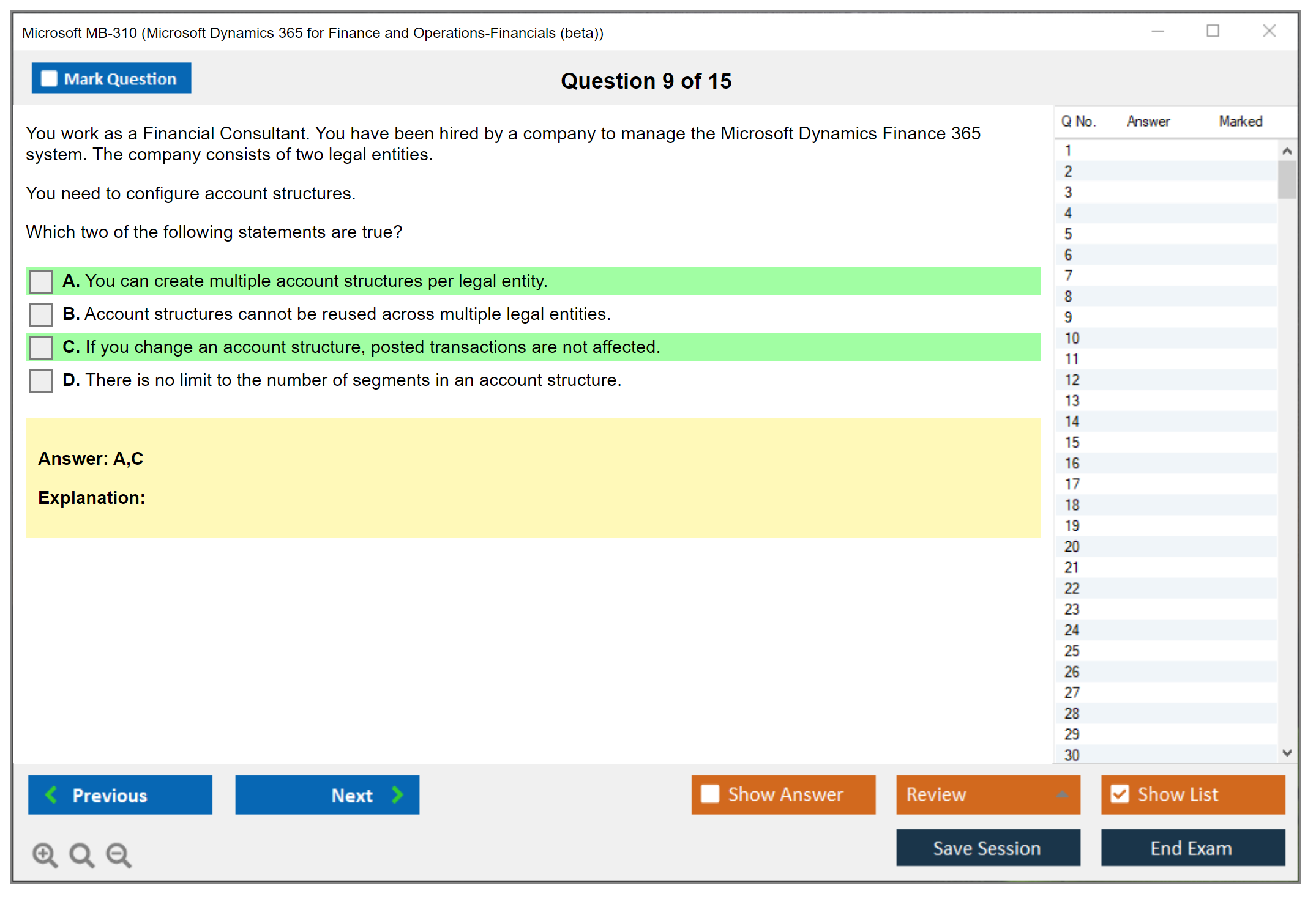 The Microsoft MB-310 exam, also known as Microsoft Dynamics 365 Finance, is designed to assess the knowledge and skills of a candidate in managing and implementing financial operations within Dynamics 365 Finance. This includes tasks such as configuring and using essential components, managing budgets, fixed assets, and financial operations.