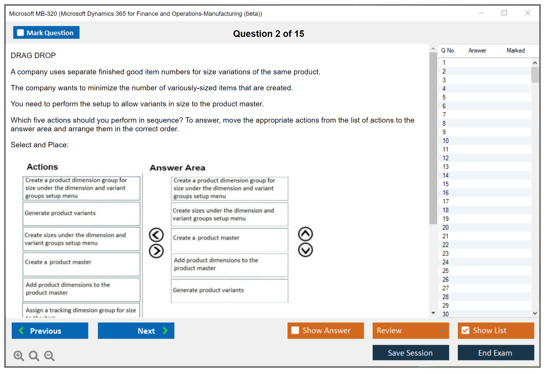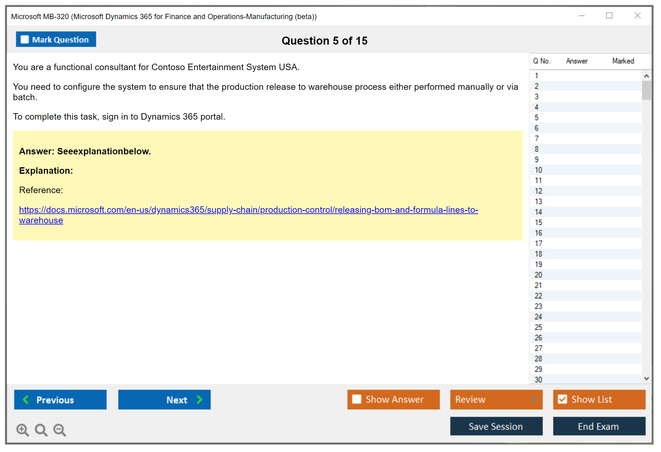 The Microsoft MB-320 exam, also known as Microsoft Dynamics 365 for Finance and Operations - Manufacturing, is designed to assess your skills and knowledge in implementing, managing, and maintaining manufacturing processes in Dynamics 365.