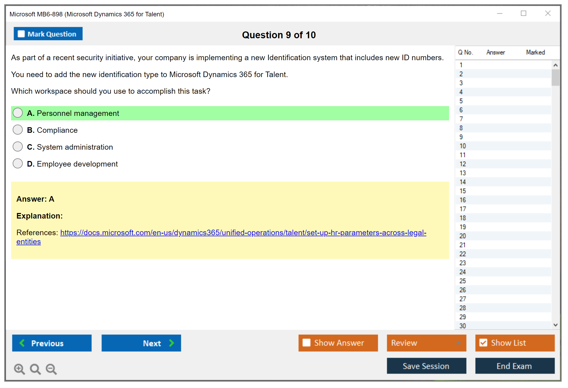 Note: Microsoft MB6-898 (Microsoft Dynamics 365 for Talent) will not receive any new updates.