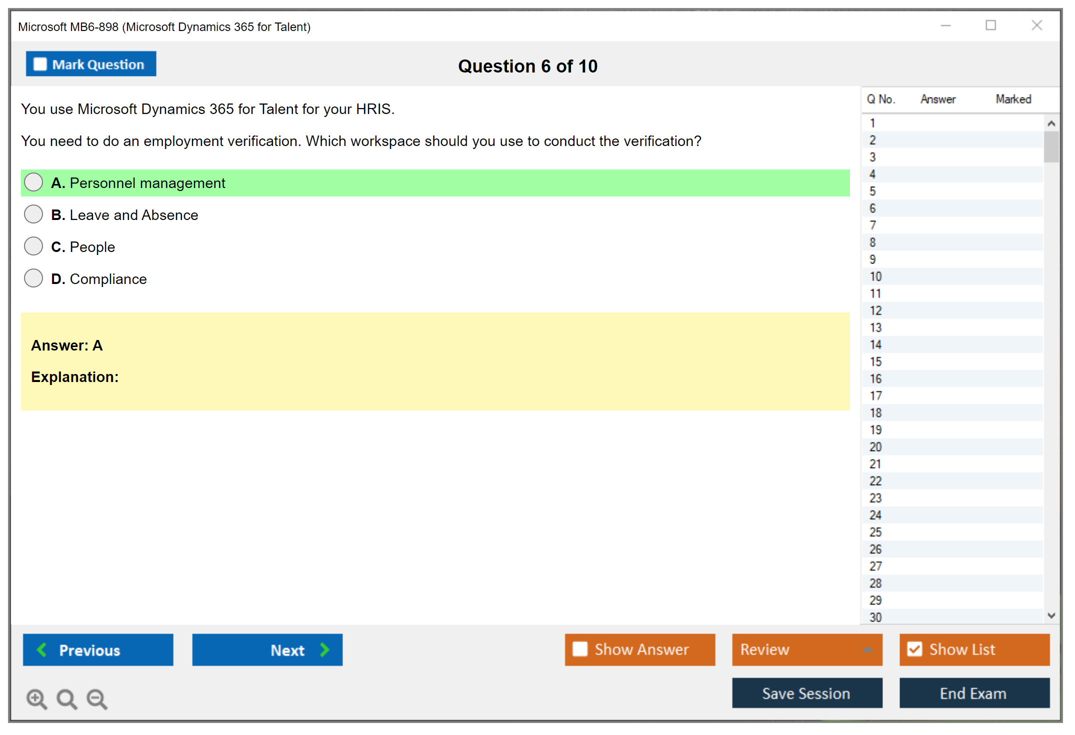 The Microsoft MB6-898 exam, also known as Microsoft Dynamics 365 for Talent, is designed to assess a candidate's knowledge and skills in using Microsoft Dynamics 365 for Talent to manage human resources and talent acquisition processes.