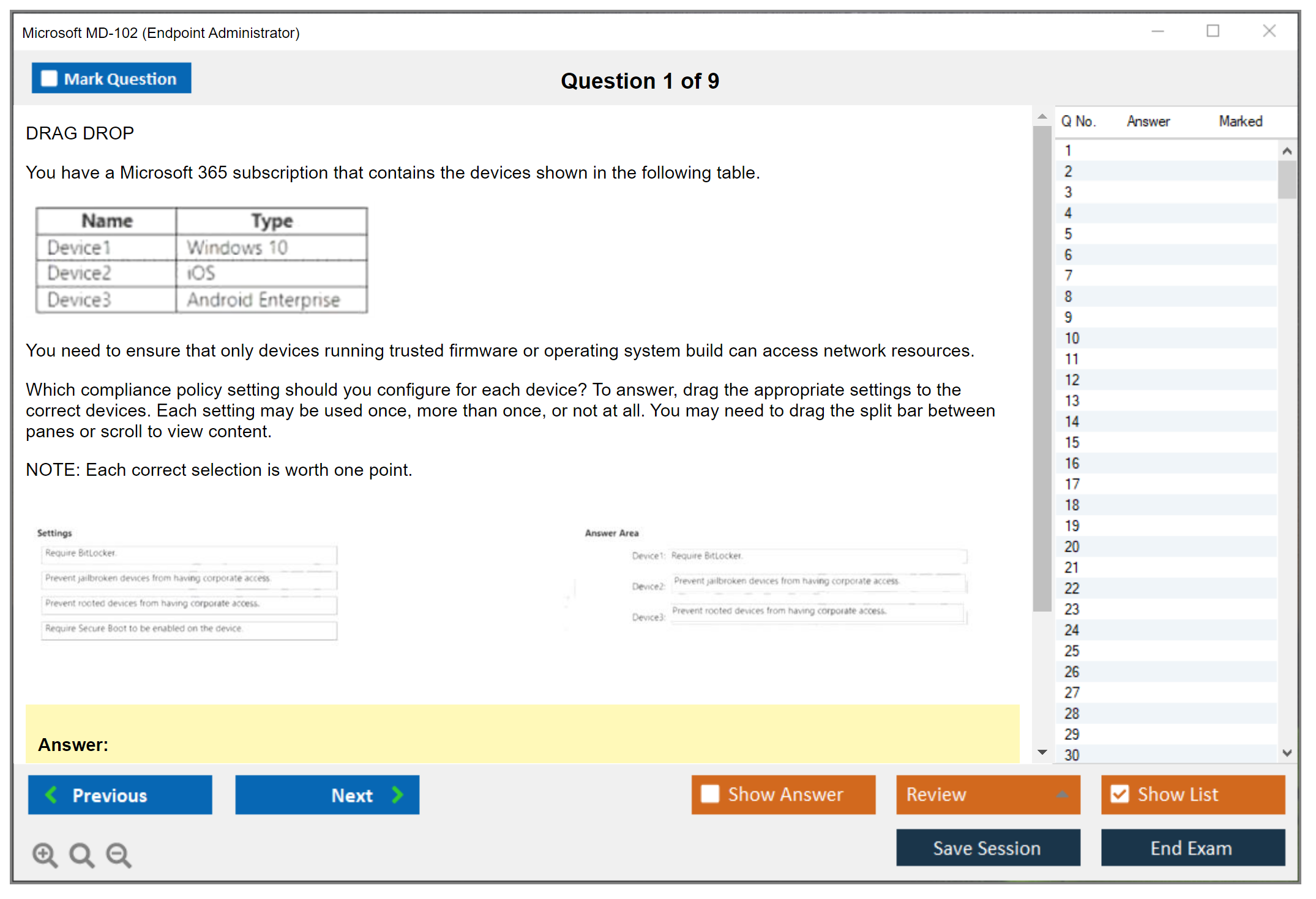 The Microsoft MD-102 exam tests an individual’s ability to deploy, configure, secure, manage, and monitor devices and client applications in an enterprise environment. It is part of the Microsoft Certified: Endpoint Administrator Associate certification.