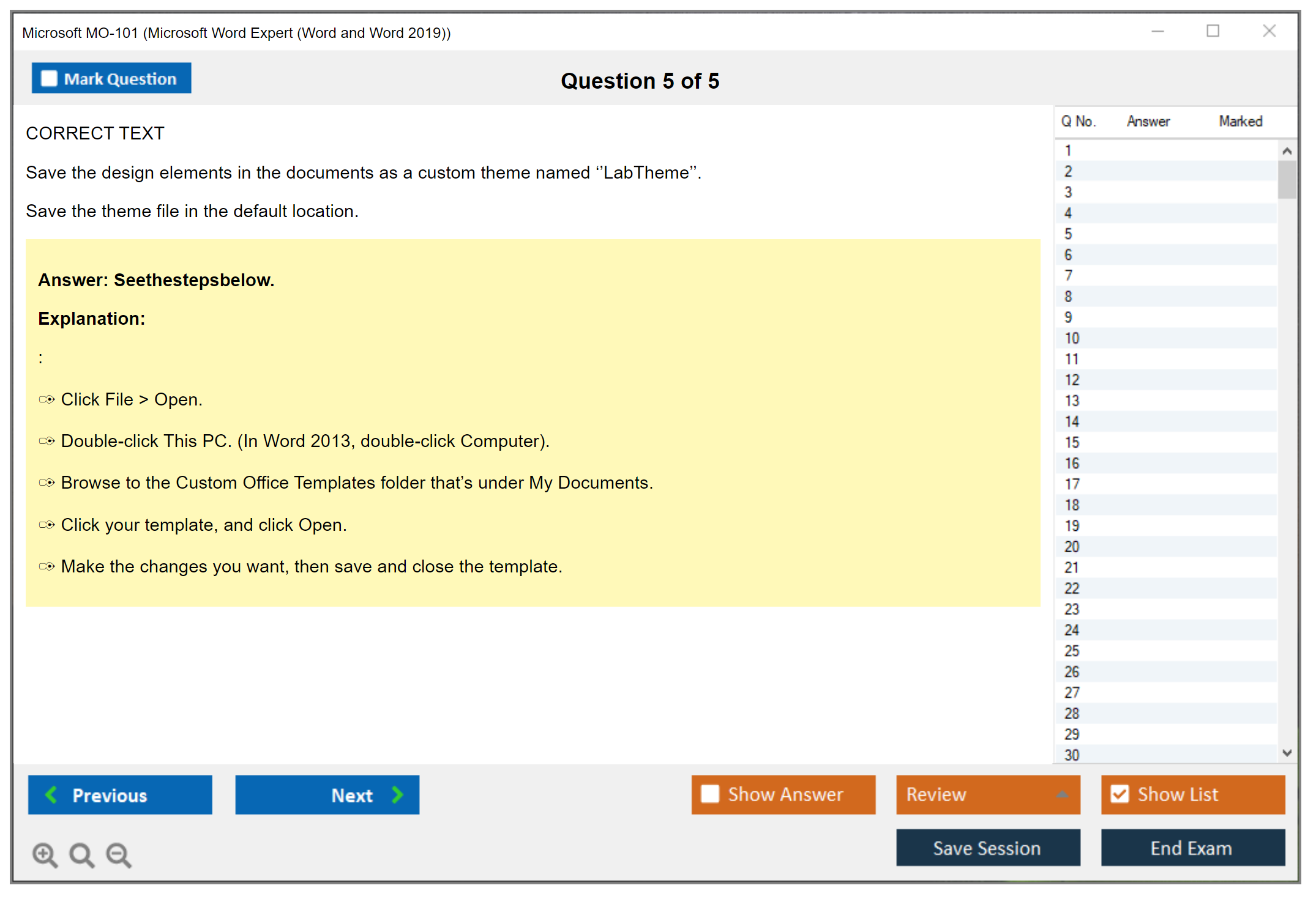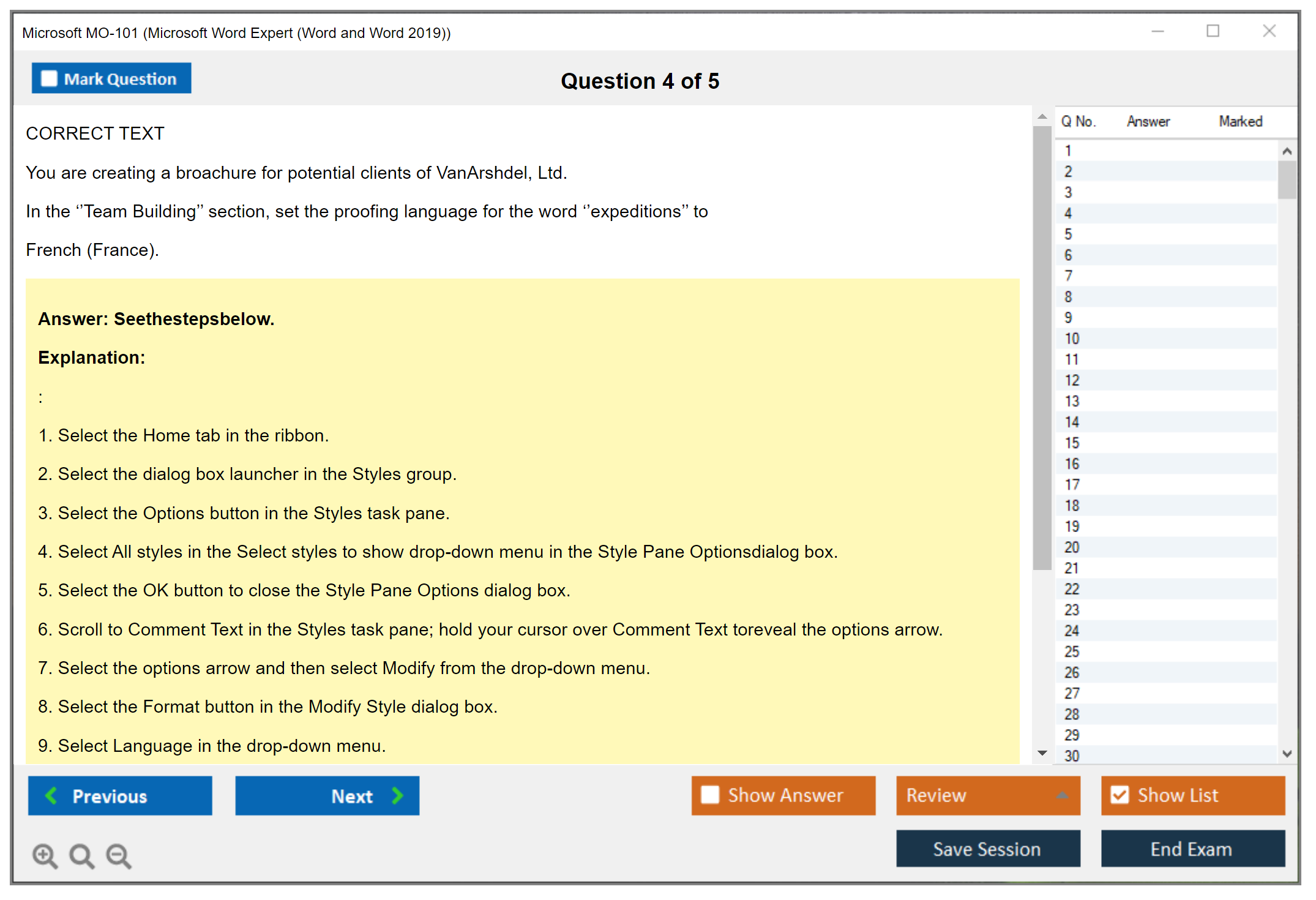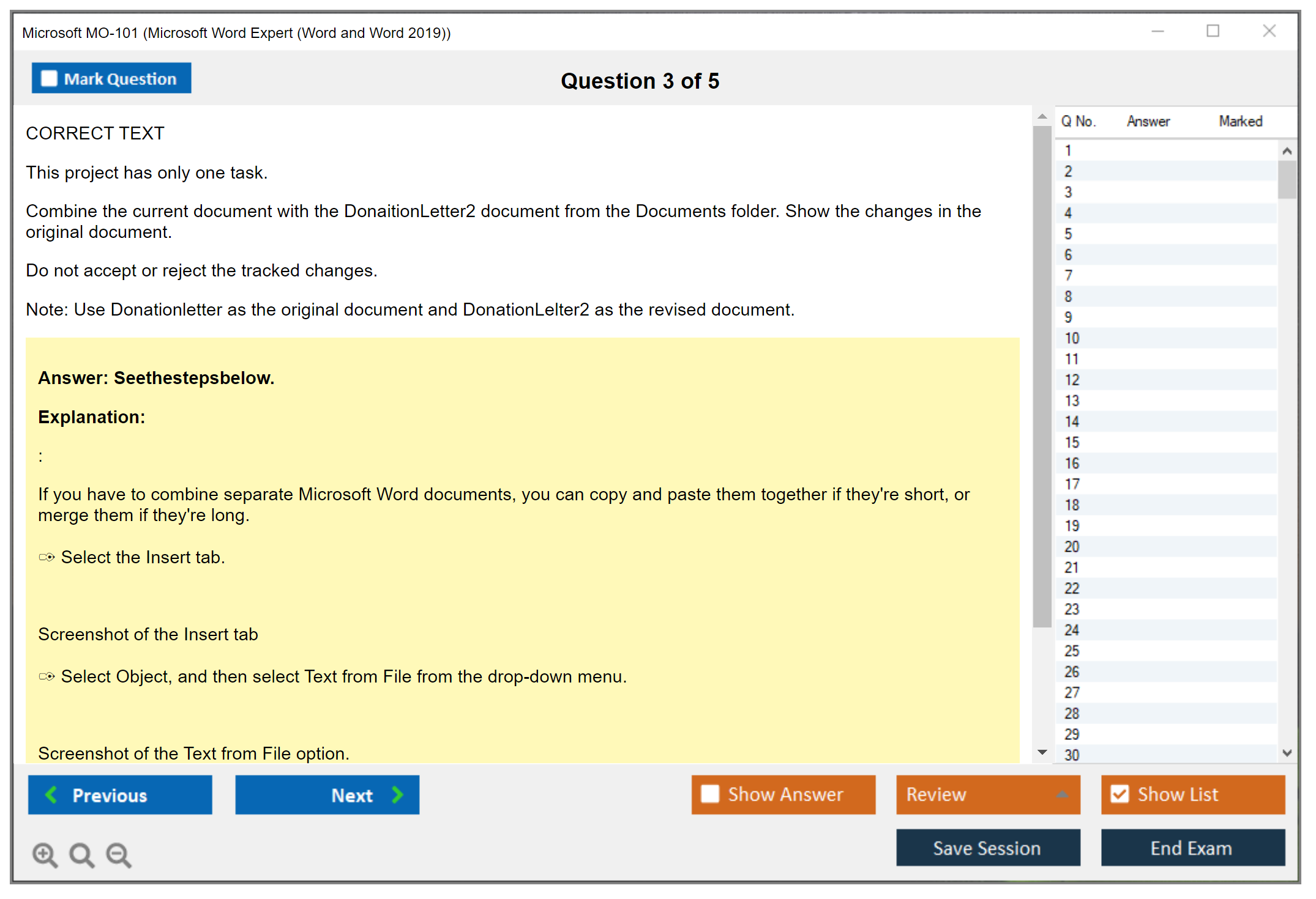 The Microsoft MO-101 exam assesses the expertise of candidates in Microsoft Word, including advanced document creation, formatting, and customization skills. It is aimed at individuals who have a comprehensive understanding of the Word environment and can demonstrate the correct application of its principal features.