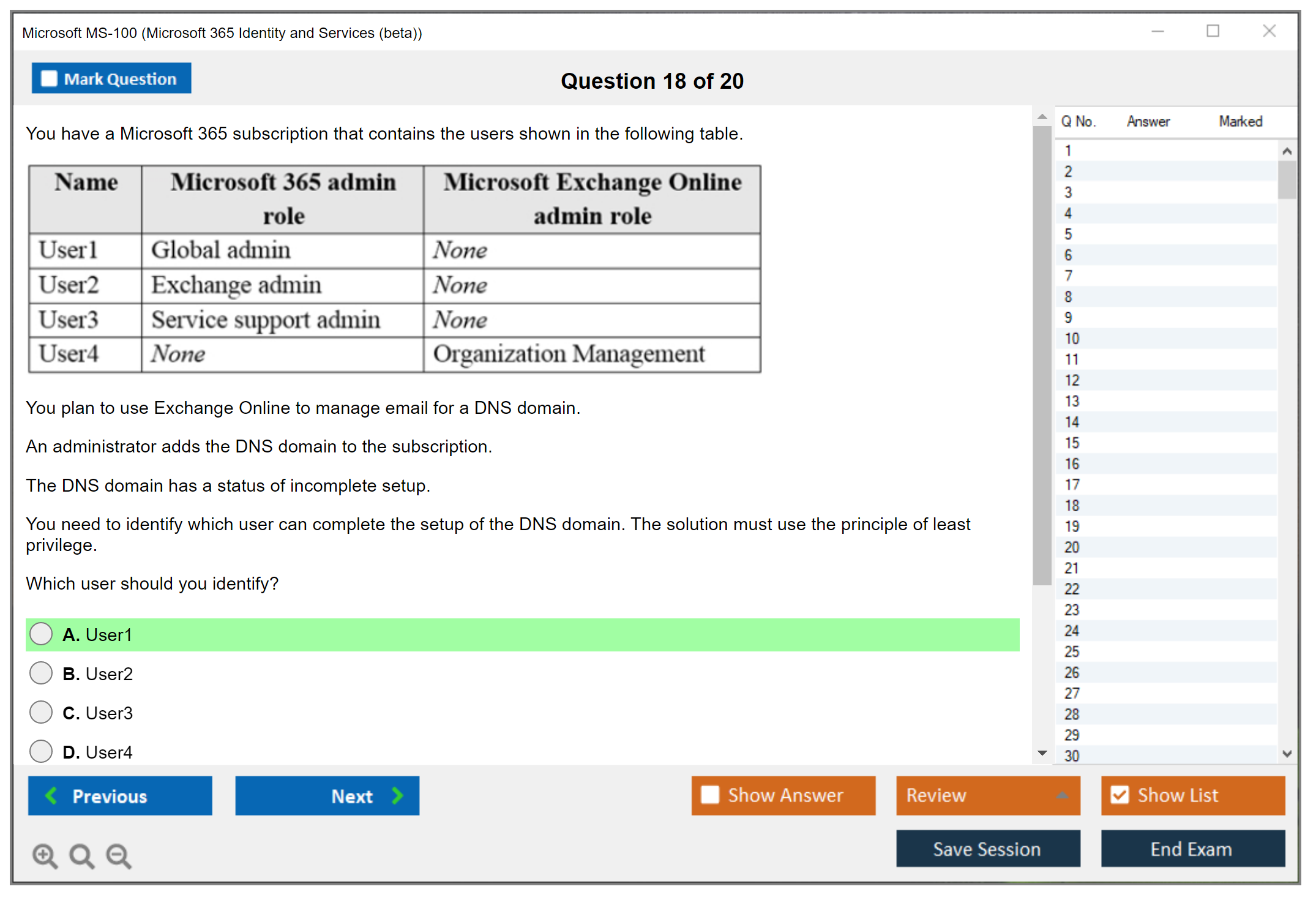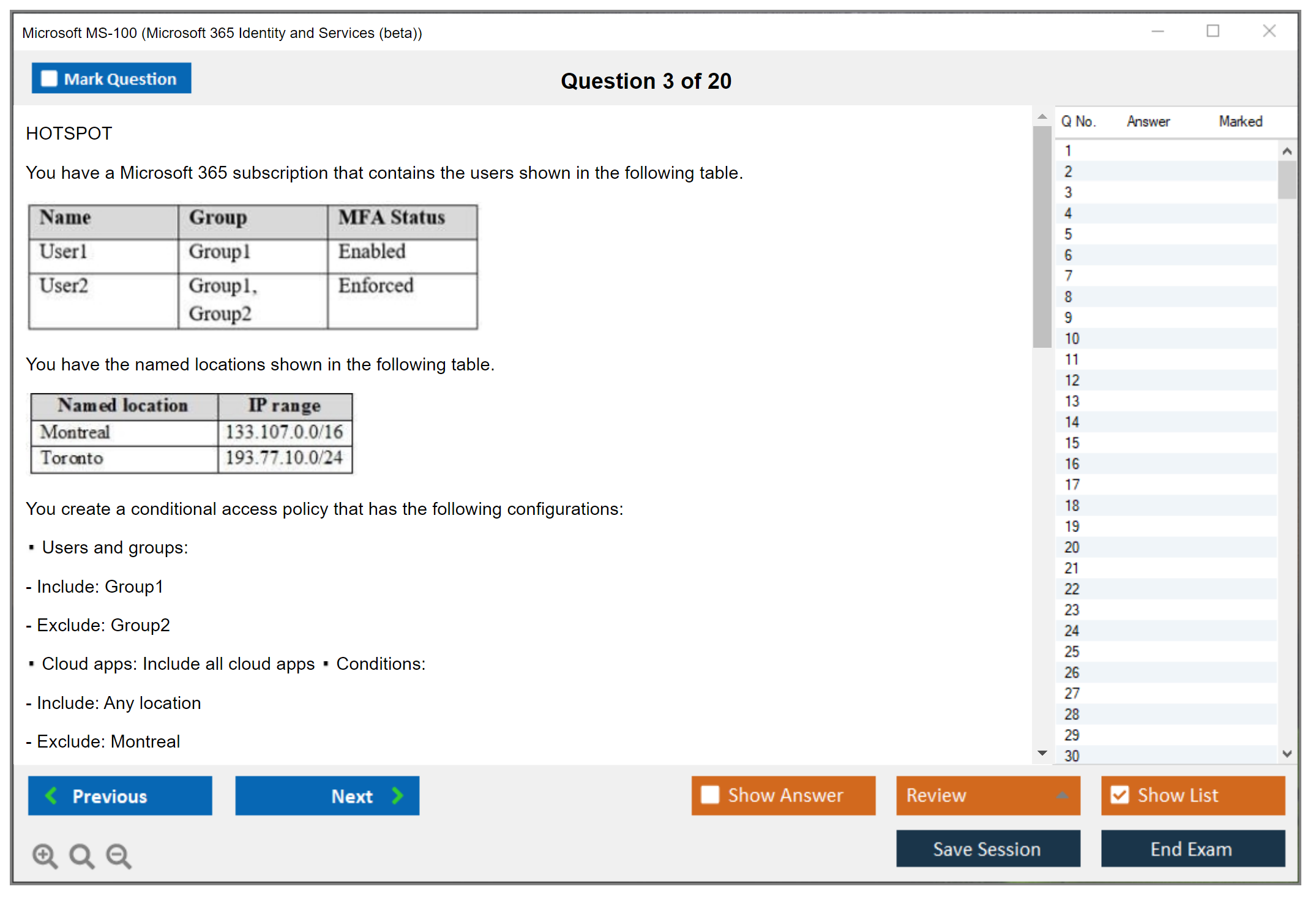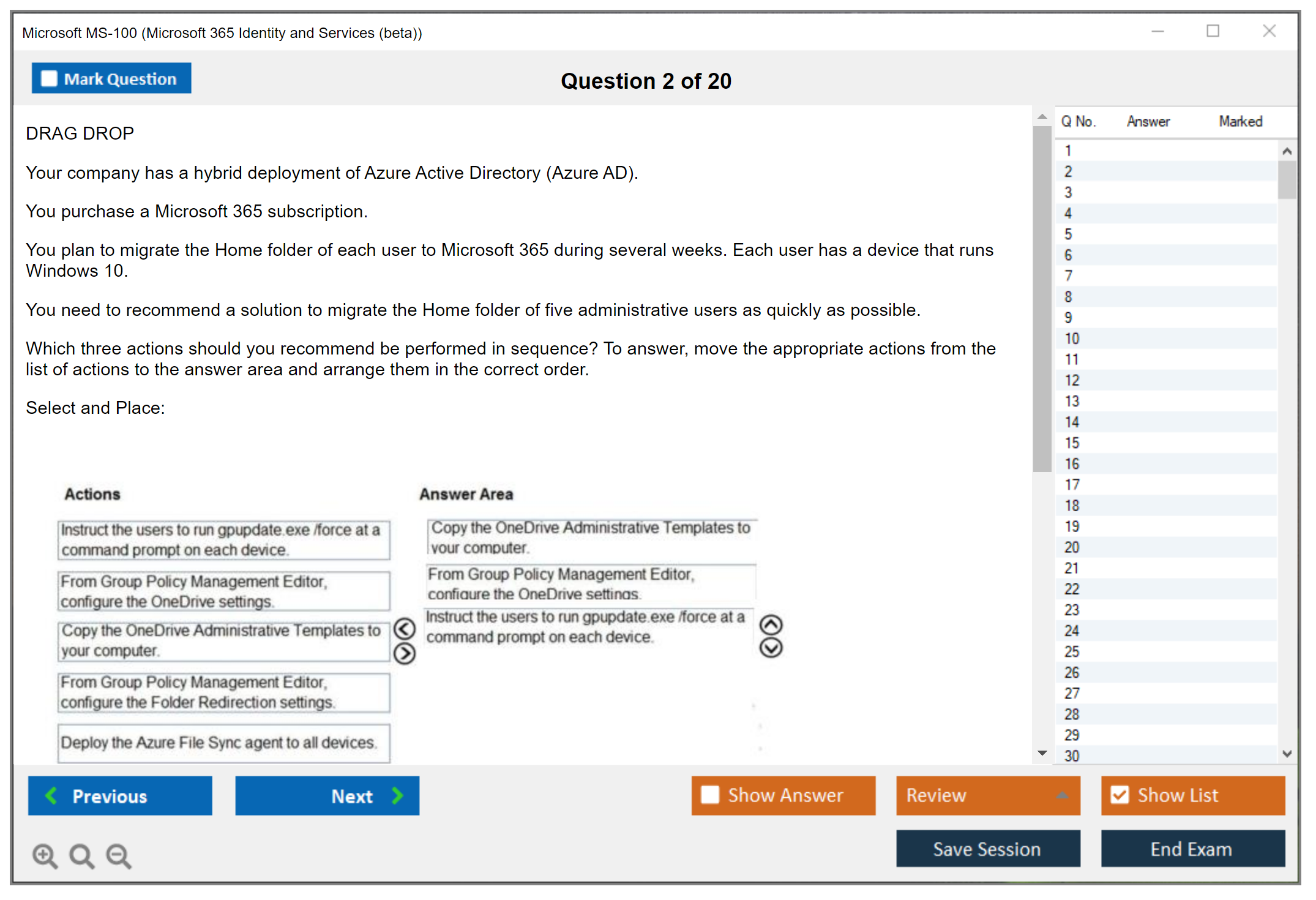 What are the Sample Questions of Microsoft MS-100 Exam?
