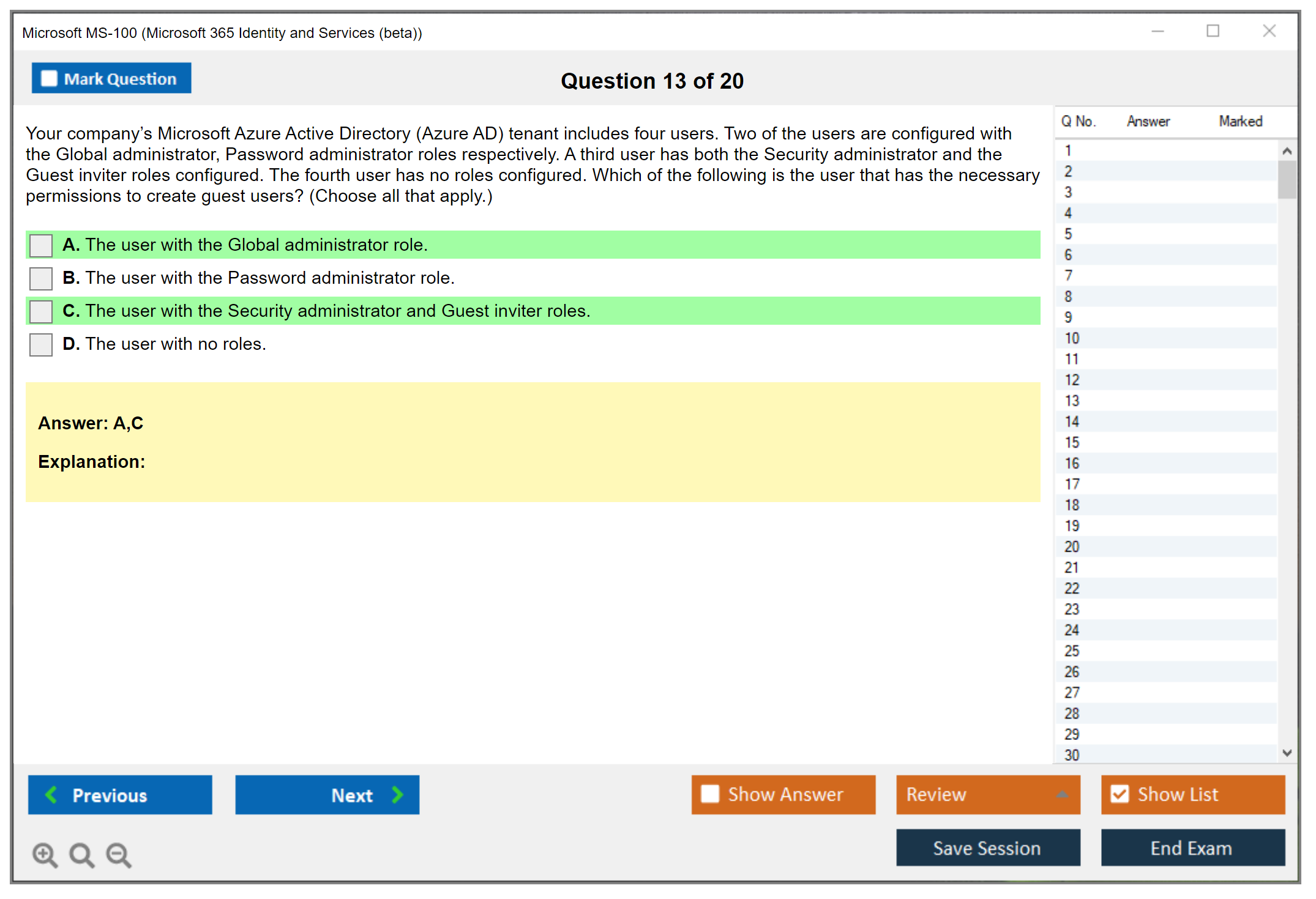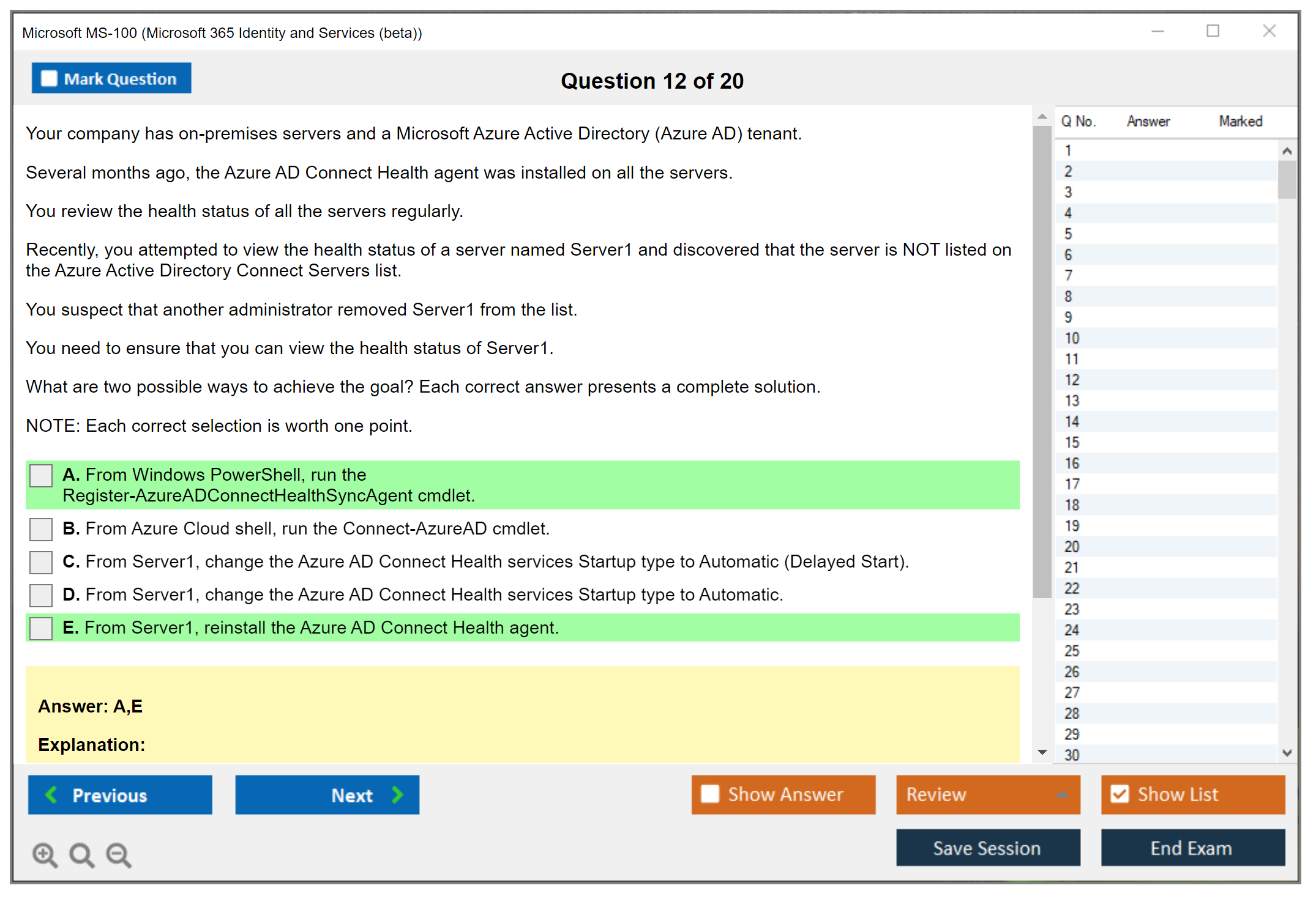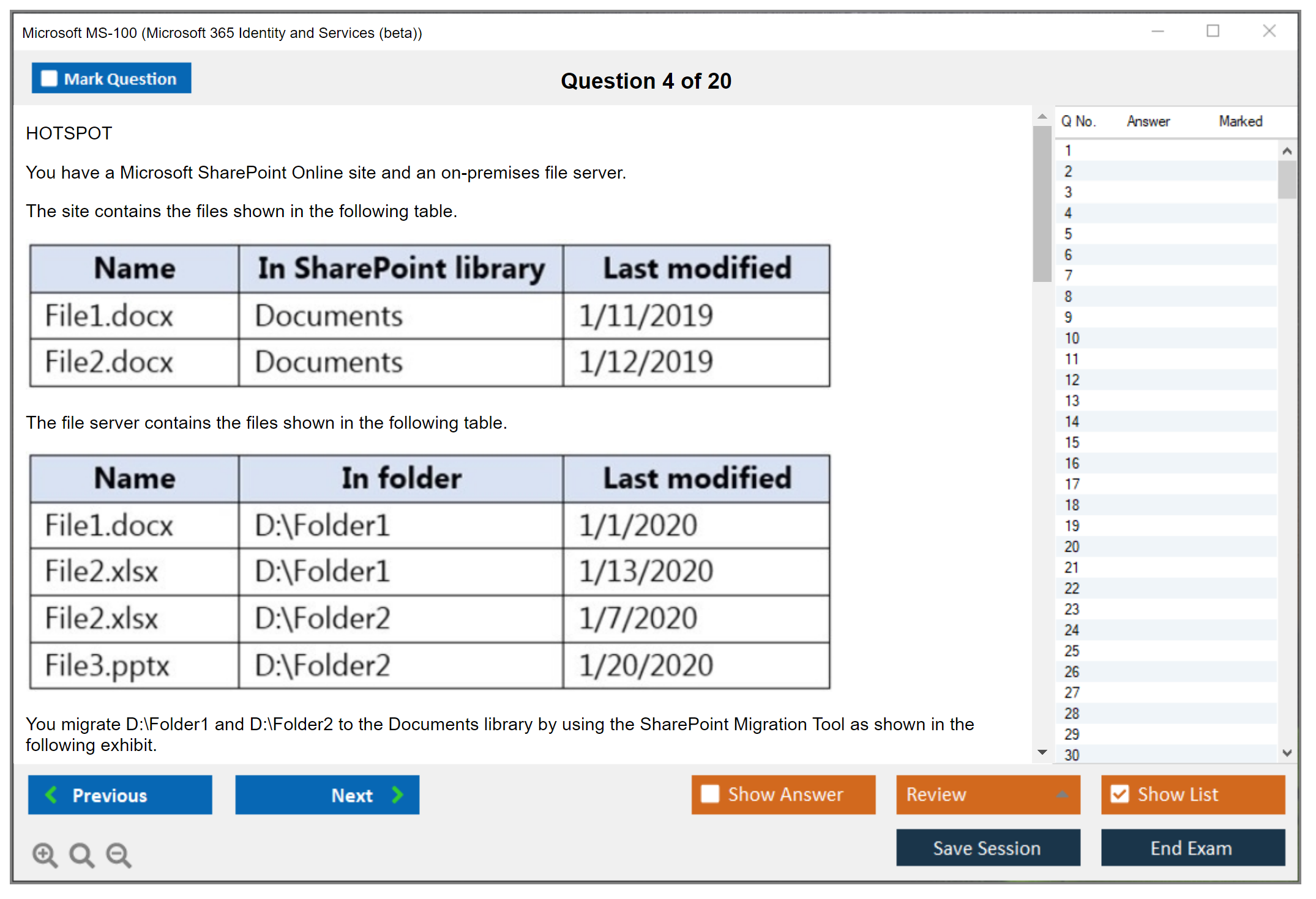 What are the Sample Questions of Microsoft MS-100 Exam?