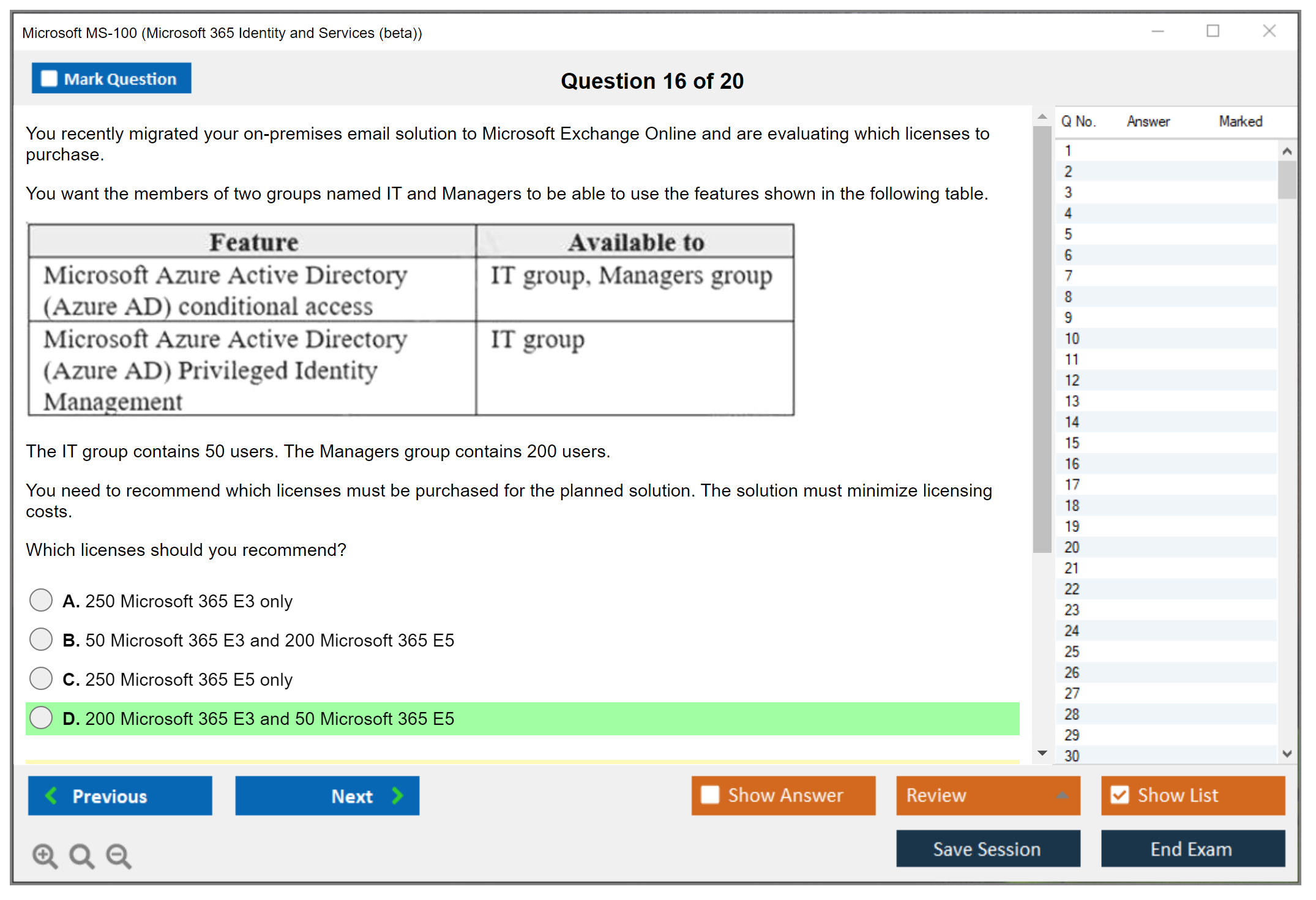 The Microsoft MS-100 (Microsoft 365 Identity and Services) Exam is designed to test a candidate's ability to perform Microsoft 365 tenant management tasks for an enterprise, including its identities, security, compliance, and supporting technologies.