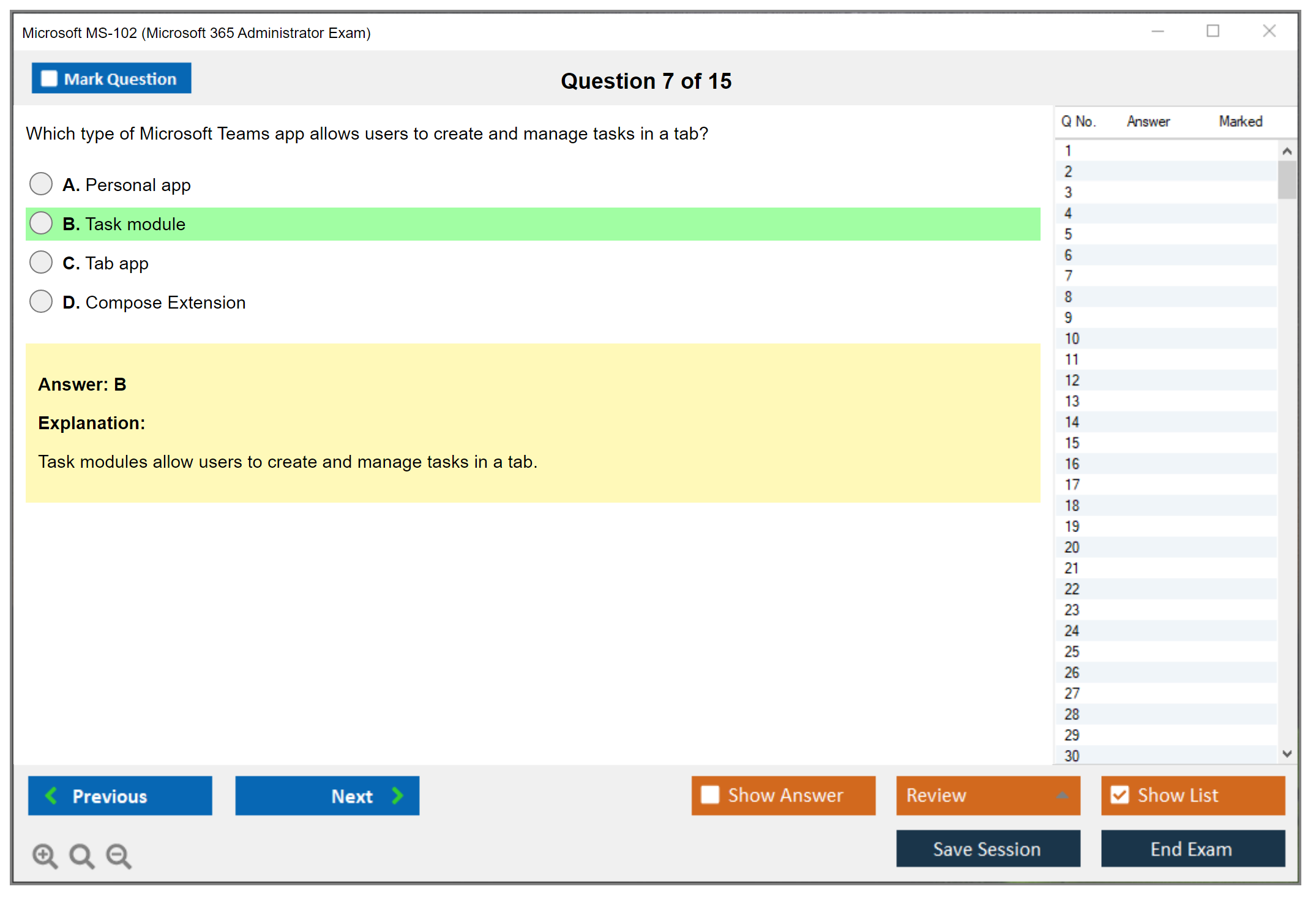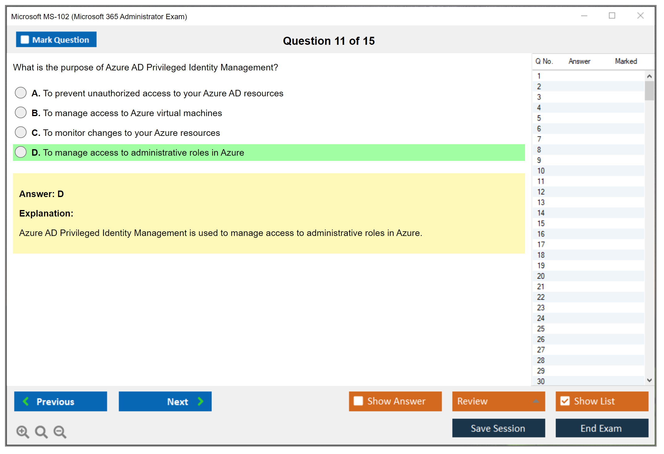 The Microsoft MS-102 (Microsoft 365 Administrator Exam) is designed to measure the ability of candidates to perform various Microsoft 365 administrative tasks. This includes managing user identity and roles, managing access and authentication, planning Microsoft 365 workloads and applications, and managing Microsoft 365 governance and compliance.