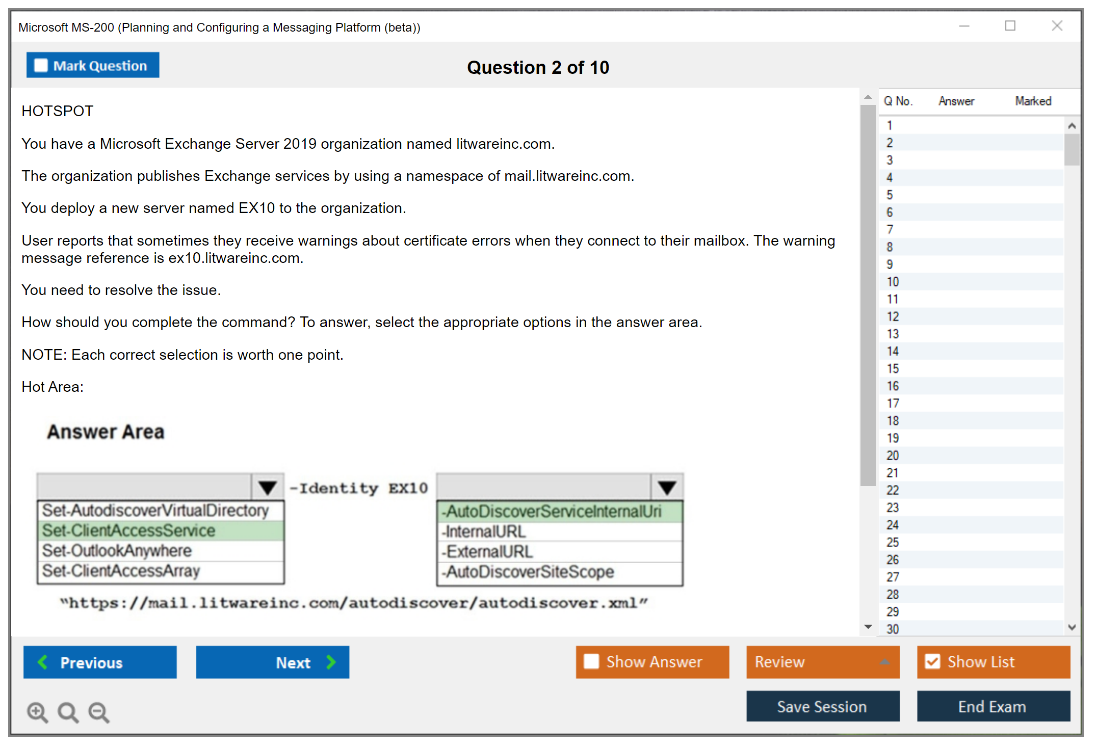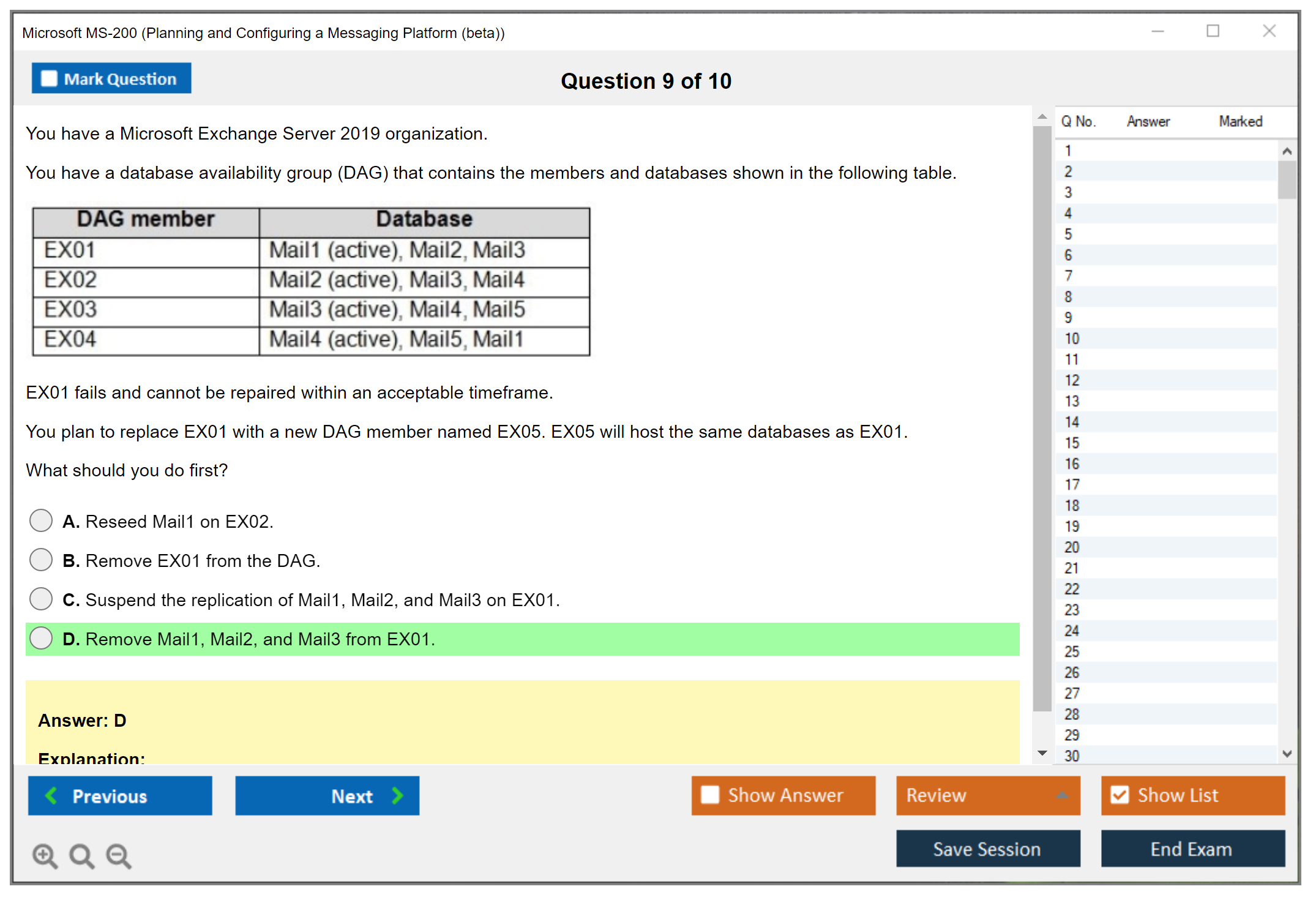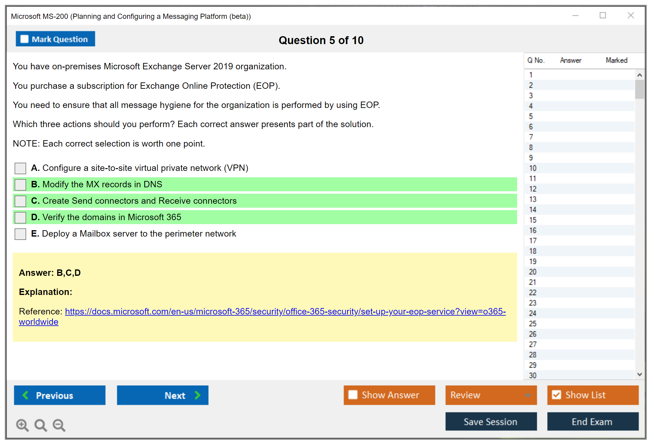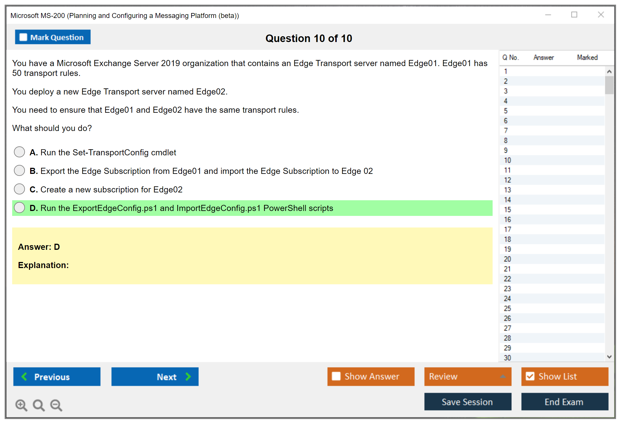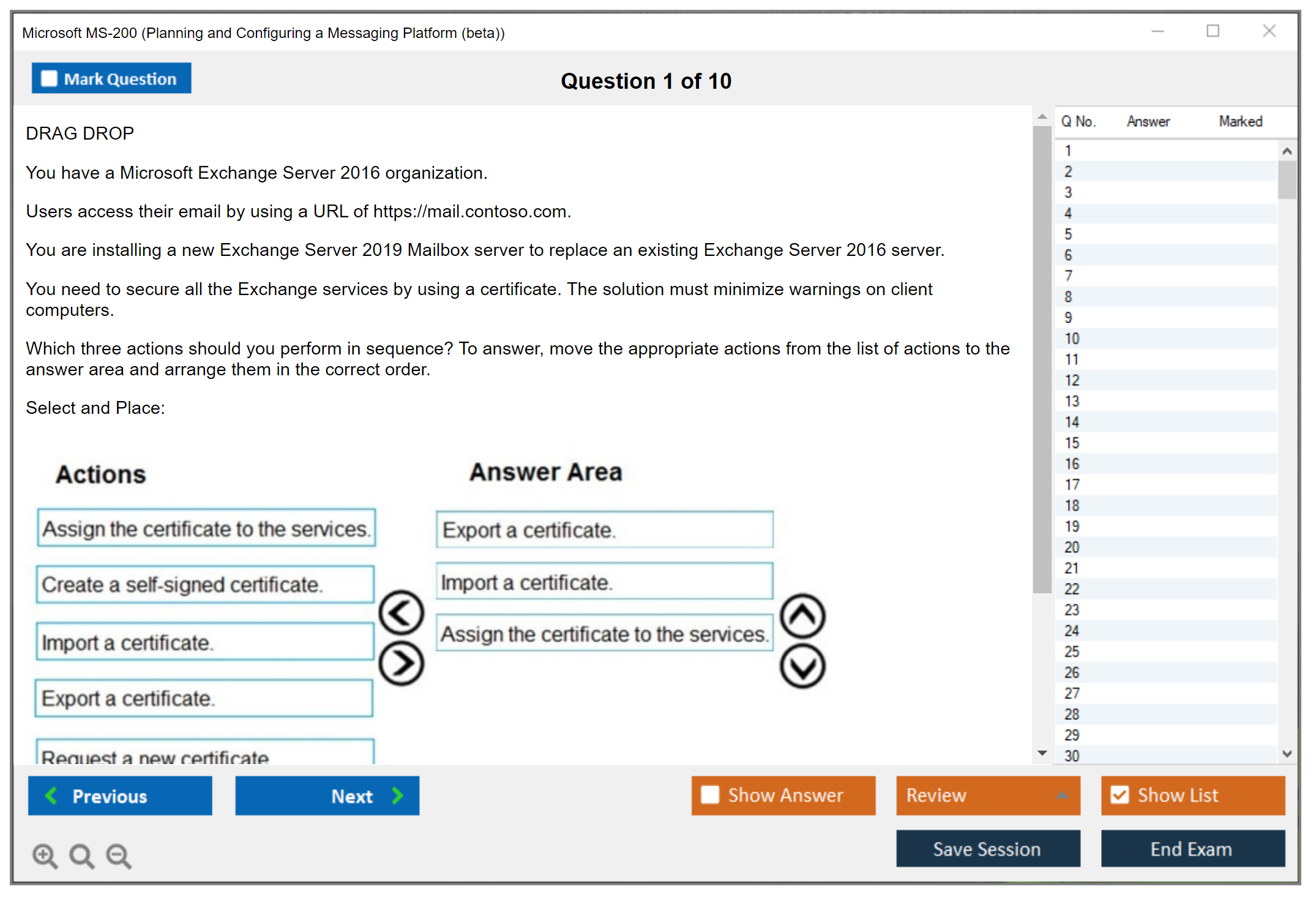 The Microsoft MS-200 exam, also known as Planning and Configuring a Messaging Platform, is designed to test the skills and knowledge required to manage and configure a messaging platform in an enterprise environment. It focuses on the planning, deployment, and management of Exchange Server and Exchange Online environments.