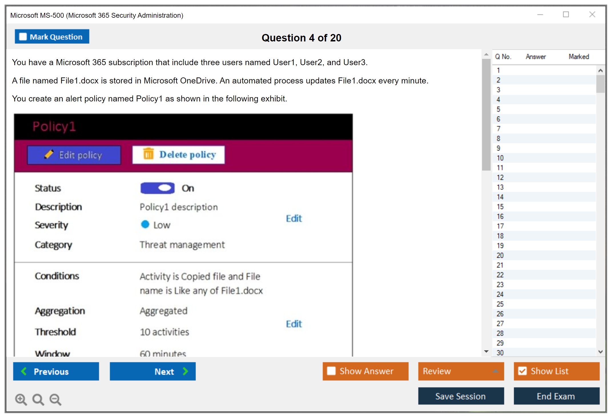 Sample questions for the Microsoft MS-500 exam can be found on the official Microsoft certification website or through various online training platforms that offer practice exams and study materials.