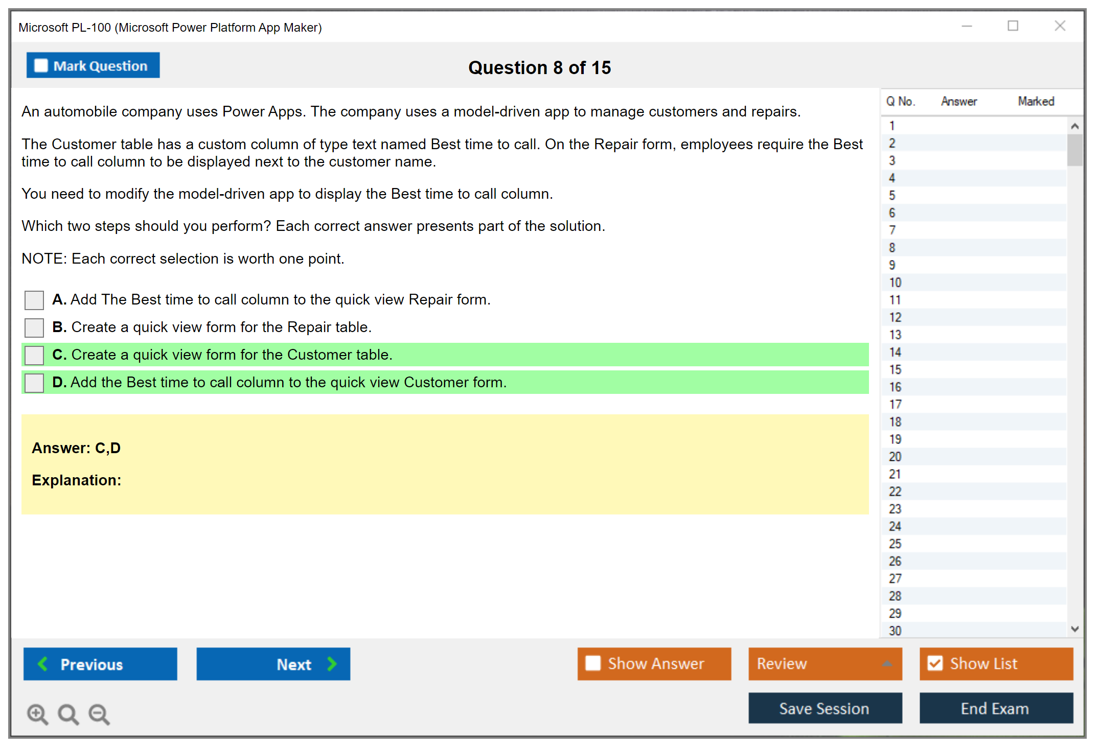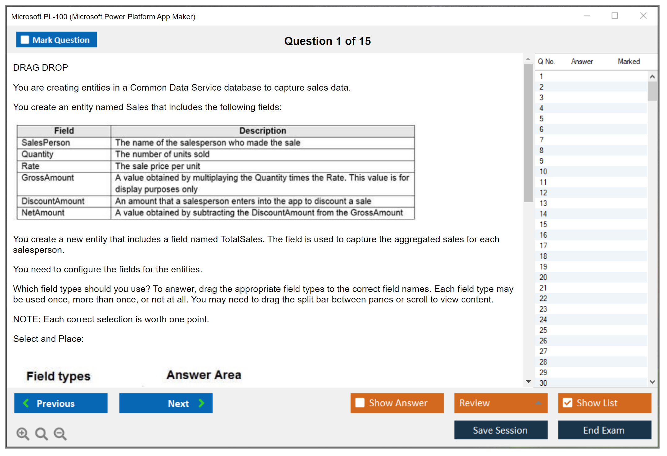 The question format of the Microsoft PL-100 Exam includes multiple-choice questions, case studies, drag-and-drop, and build list questions.