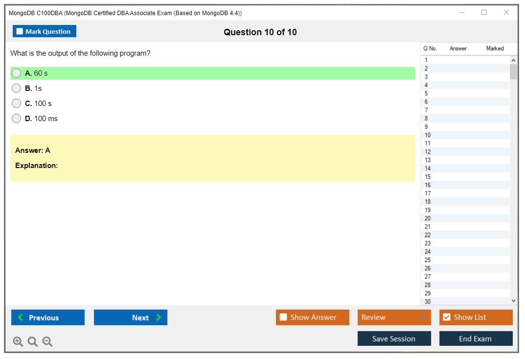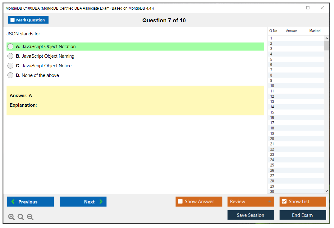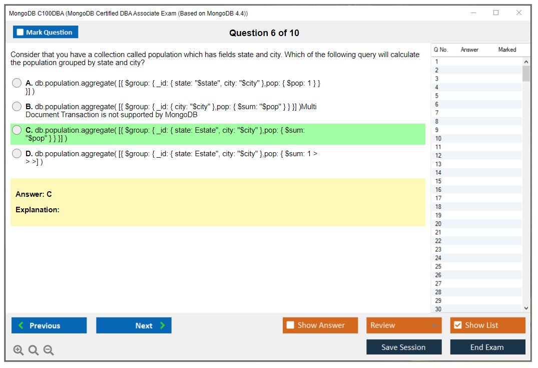 The MongoDB C100DBA (MongoDB Certified DBA Associate Exam) is designed to test the knowledge and skills required to administer and manage MongoDB databases. The exam is based on MongoDB version 4.4.