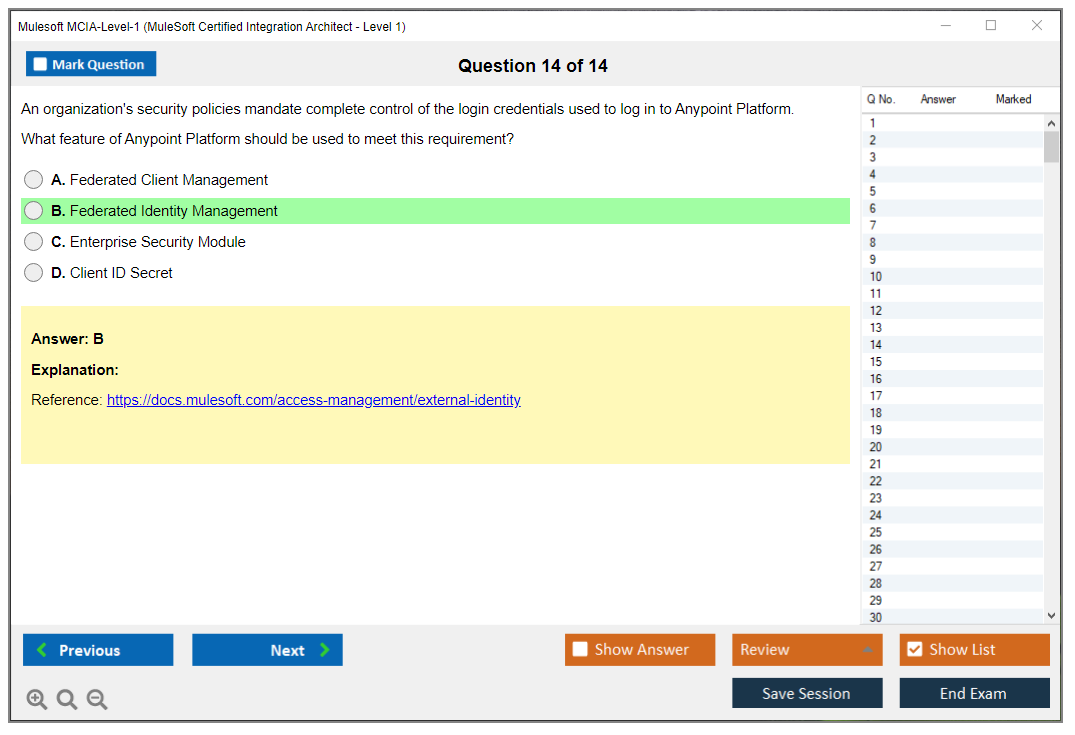 The MuleSoft Certified Integration Architect - Level 1 (MCIA-Level-1) exam is designed to validate the skills and knowledge of experienced architects and developers who can design and manage complex MuleSoft integrations. This certification demonstrates the ability to lead a successful MuleSoft implementation project for an organization.