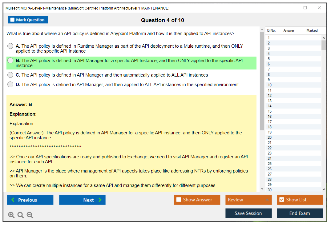 The Mulesoft MCPA-Level-1-Maintenance exam is a certification exam for experienced architects who need to demonstrate their ability to design, implement, and manage MuleSoft solutions, ensuring they are current with the latest platform features and best practices.