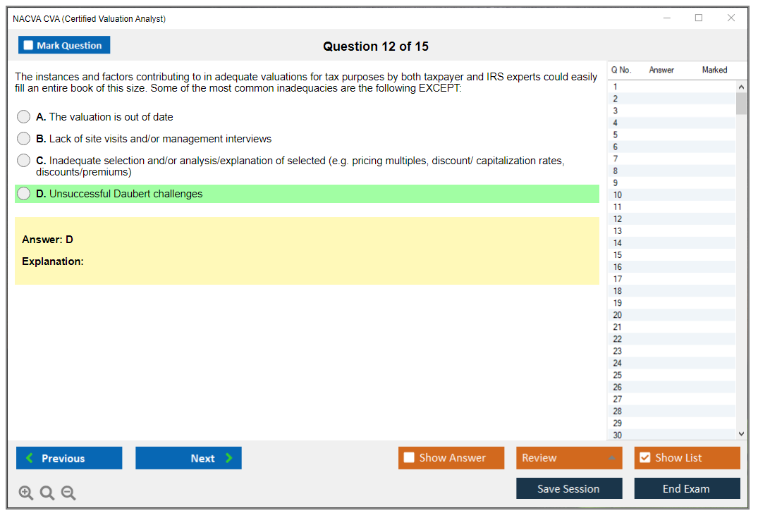 Successfully passed my NACVA CVA Exam, thanks to DumpsBoss! Their study materials are top-notch and played a crucial role in my success.