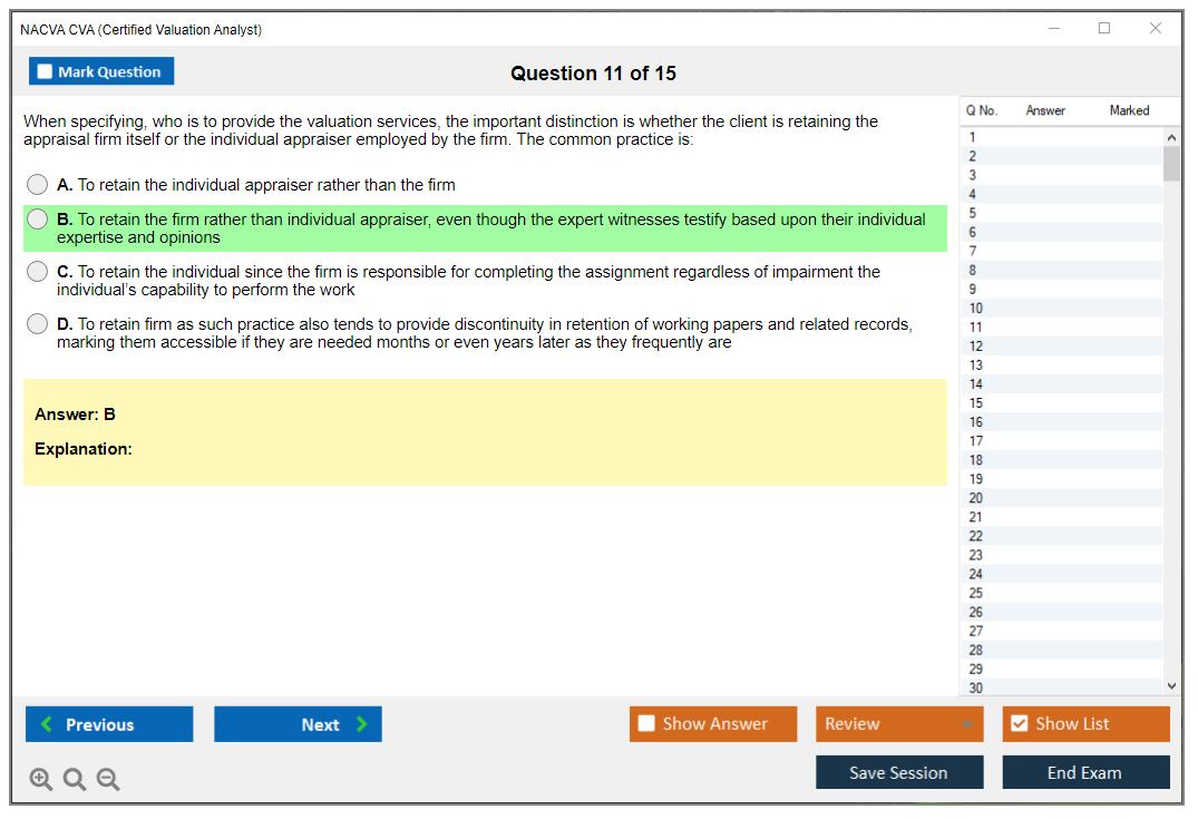 Thanks to DumpsBoss, I passed the NACVA CVA Exam on my first attempt. The practice questions were extremely helpful in gauging my readiness.