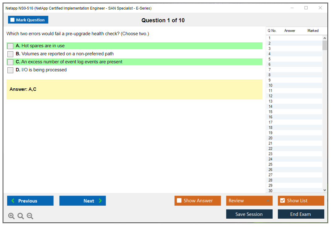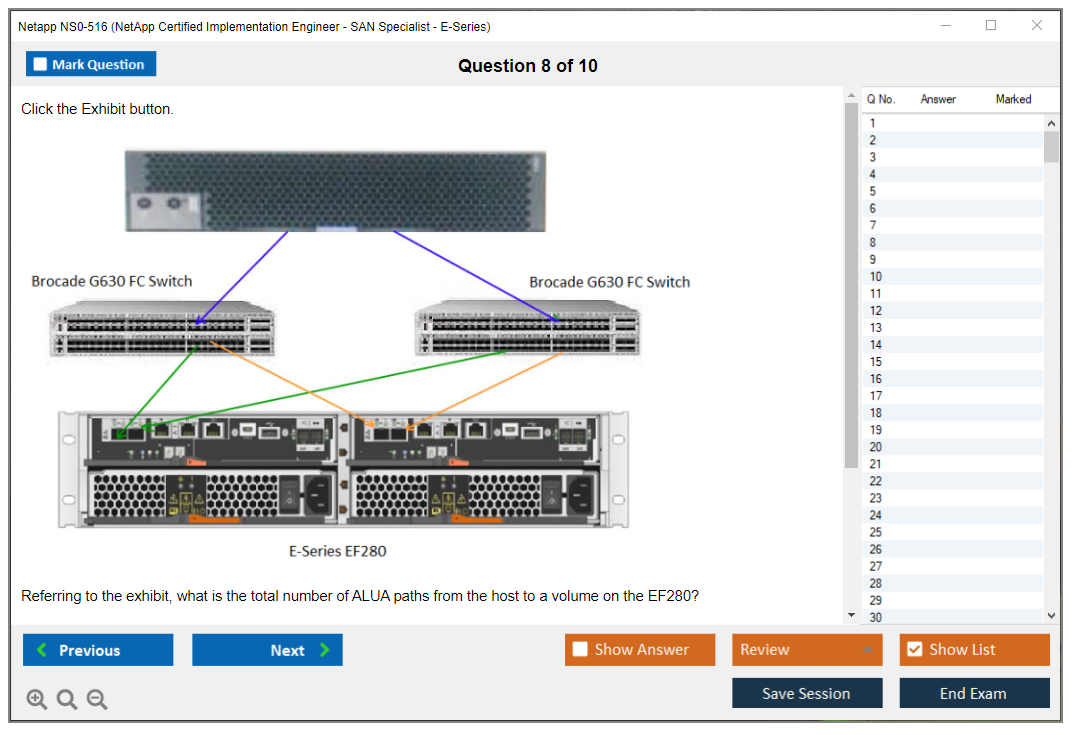 The NetApp NS0-516 exam, also known as the NetApp Certified Implementation Engineer - SAN Specialist, E-Series, is designed to test the candidate's knowledge and skills in implementing SAN solutions using NetApp E-Series storage systems.
