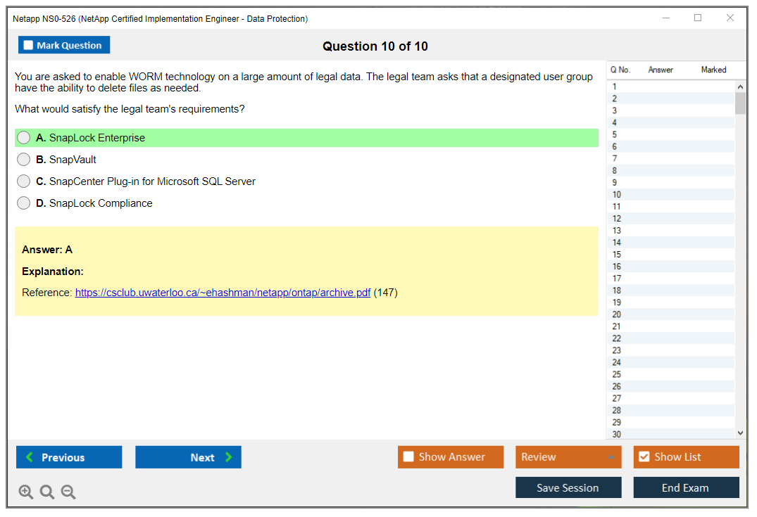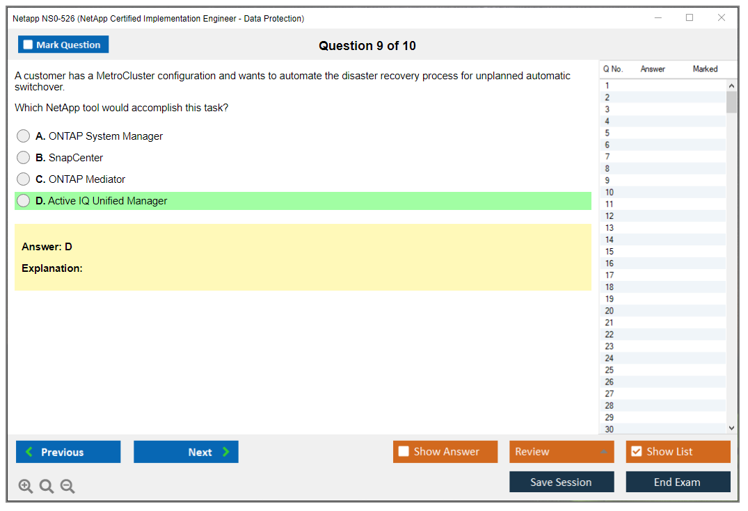 Note: Netapp NS0-526 (NetApp Certified Implementation Engineer - Data Protection) will not receive any new updates.