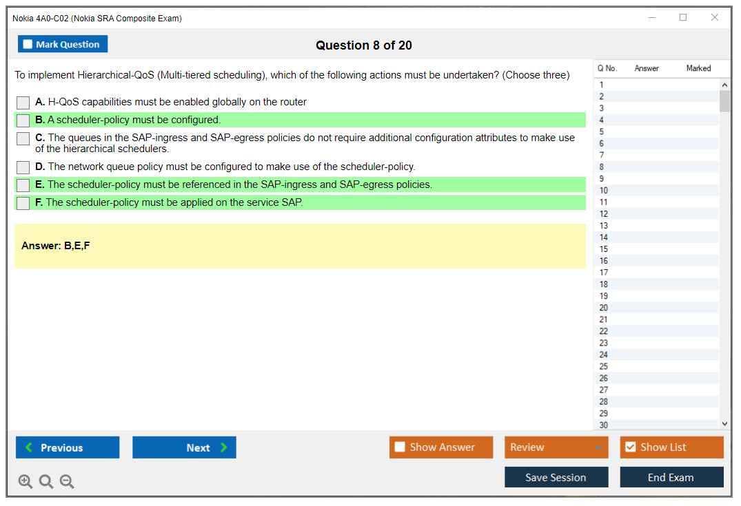 The question format of the Nokia 4A0-C02 Exam includes multiple-choice questions, drag-and-drop, and scenario-based questions.