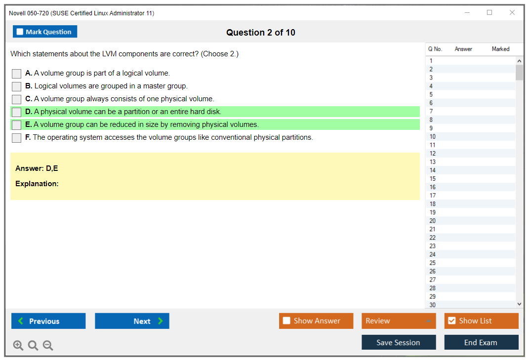 The Novell 050-720 Exam is part of the SUSE Certified Linux Administrator (SCLA) certification track, which can lead to more advanced certifications such as SUSE Certified Engineer (SCE).