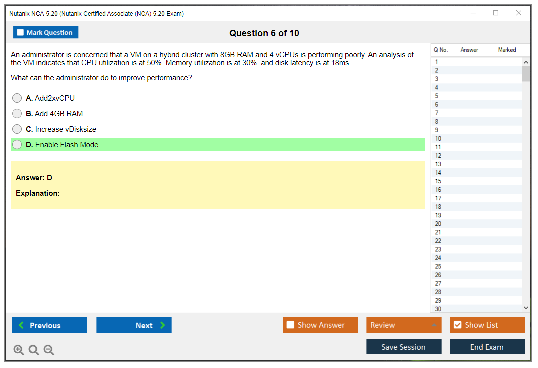 The Nutanix Certified Associate (NCA) 5.20 exam is an entry-level certification that assesses the candidate's ability to deploy, manage, and troubleshoot Nutanix environments. It helps individuals showcase their expertise in Nutanix's hyper-converged infrastructure and related technologies.