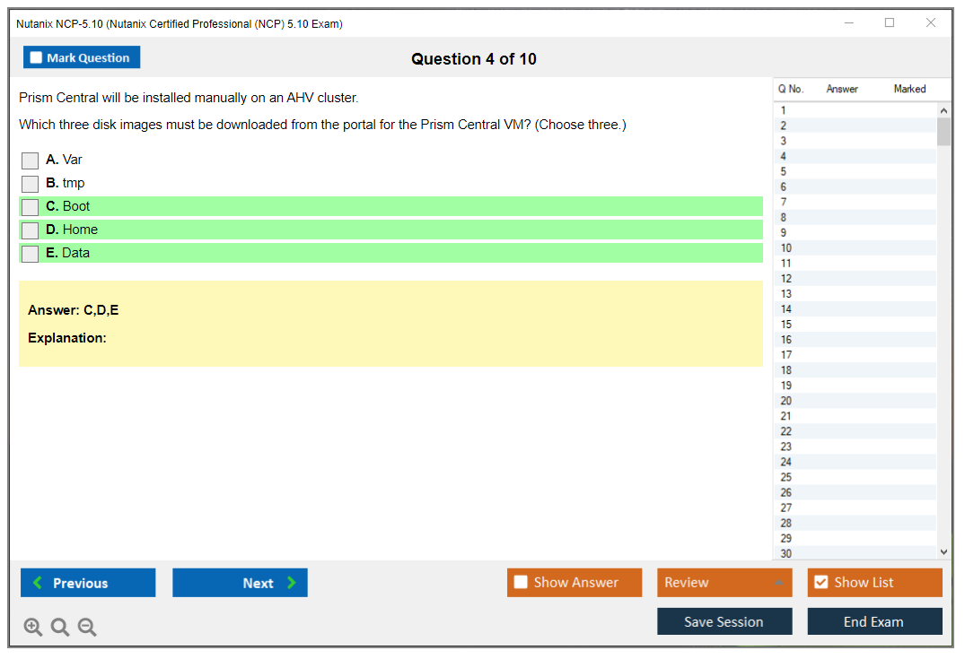 The Nutanix NCP-5.10 (Nutanix Certified Professional (NCP) 5.10 Exam) is a certification exam designed to validate the skills and knowledge required to manage and deploy Nutanix solutions. It covers various aspects of Nutanix infrastructure, including installation, configuration, management, and troubleshooting.