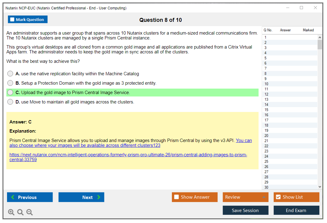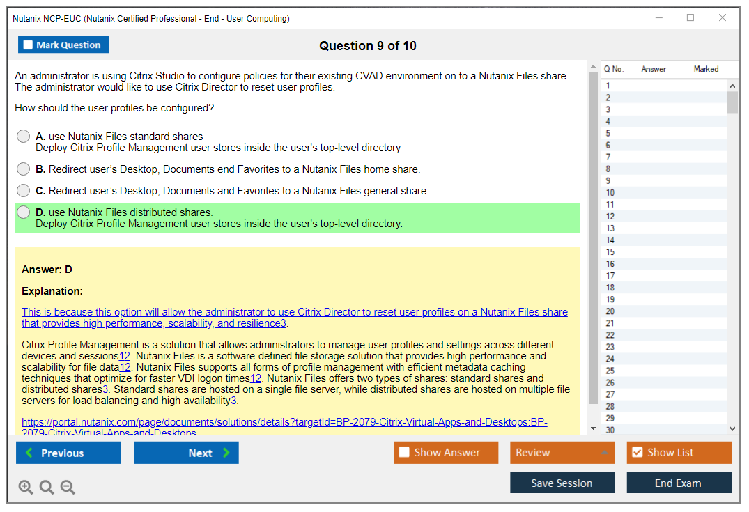 The Nutanix NCP-EUC Exam consists of multiple-choice and multiple-select questions.