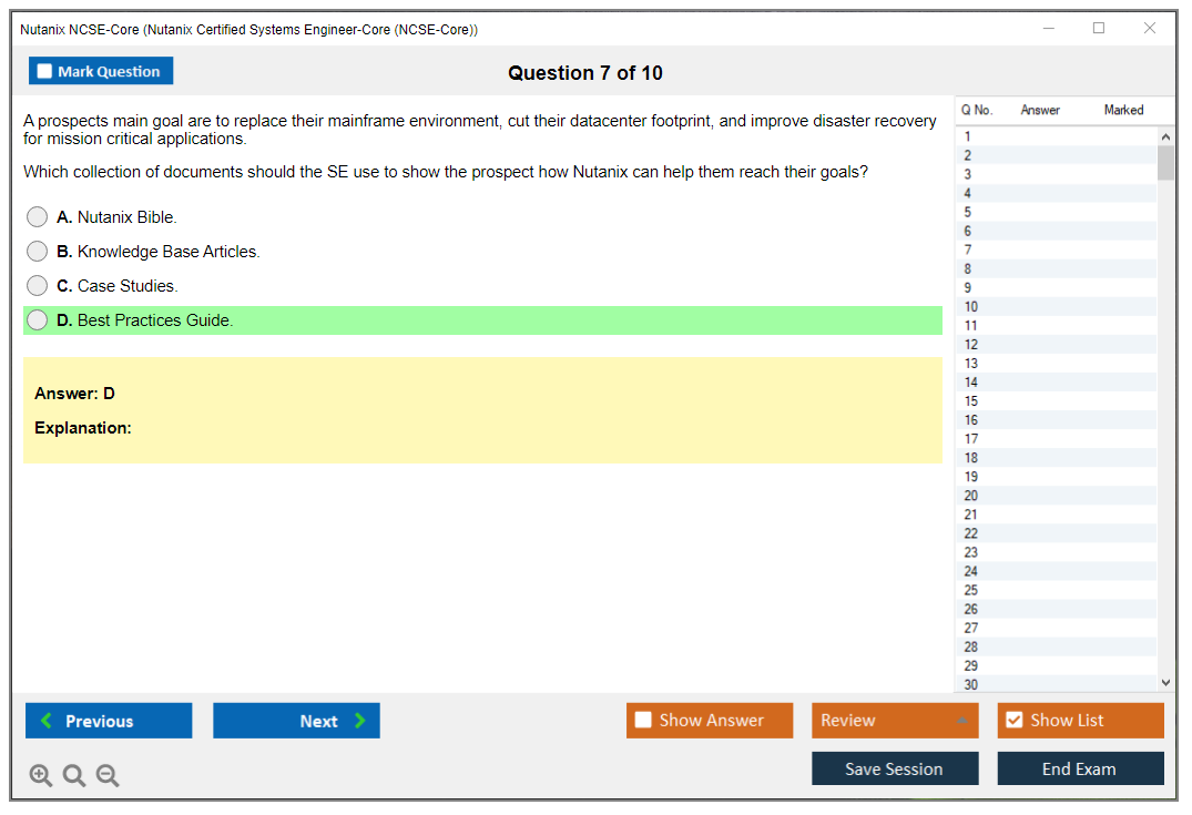 The Nutanix Certified Systems Engineer-Core (NCSE-Core) exam is designed to validate the skills and knowledge of IT professionals in deploying, managing, and troubleshooting Nutanix environments. It focuses on core concepts and best practices for working with Nutanix technologies.