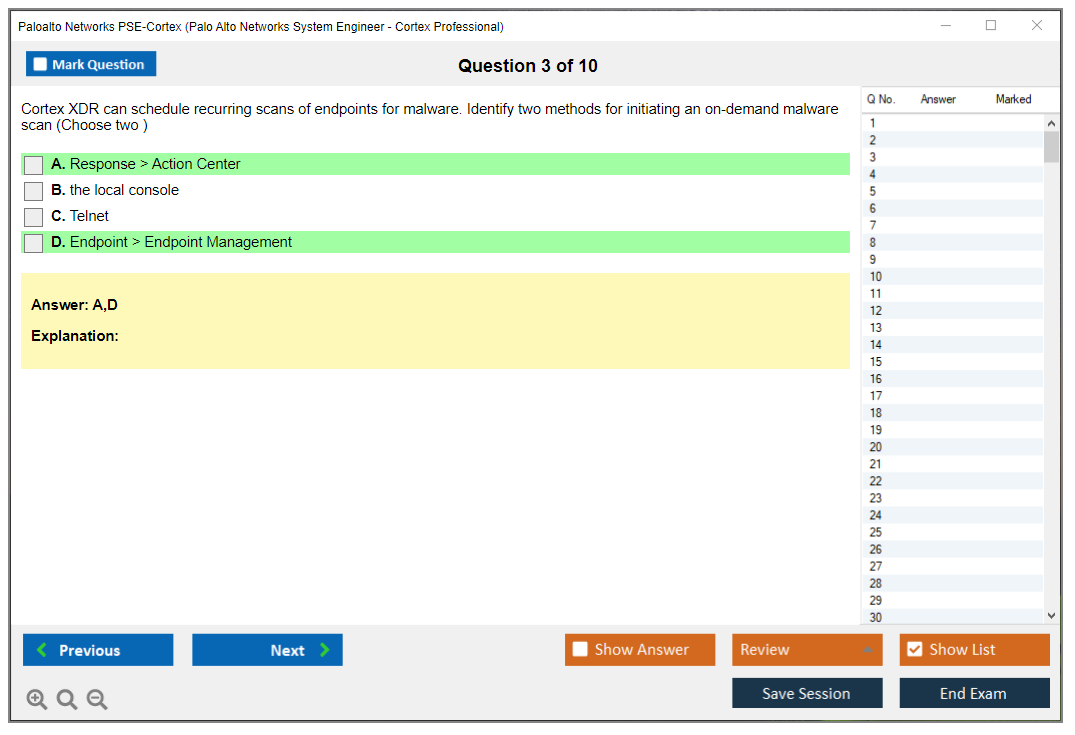 You can take the Palo Alto Networks PSE-Cortex Exam through authorized testing centers or online proctoring services provided by Palo Alto Networks or their partners.