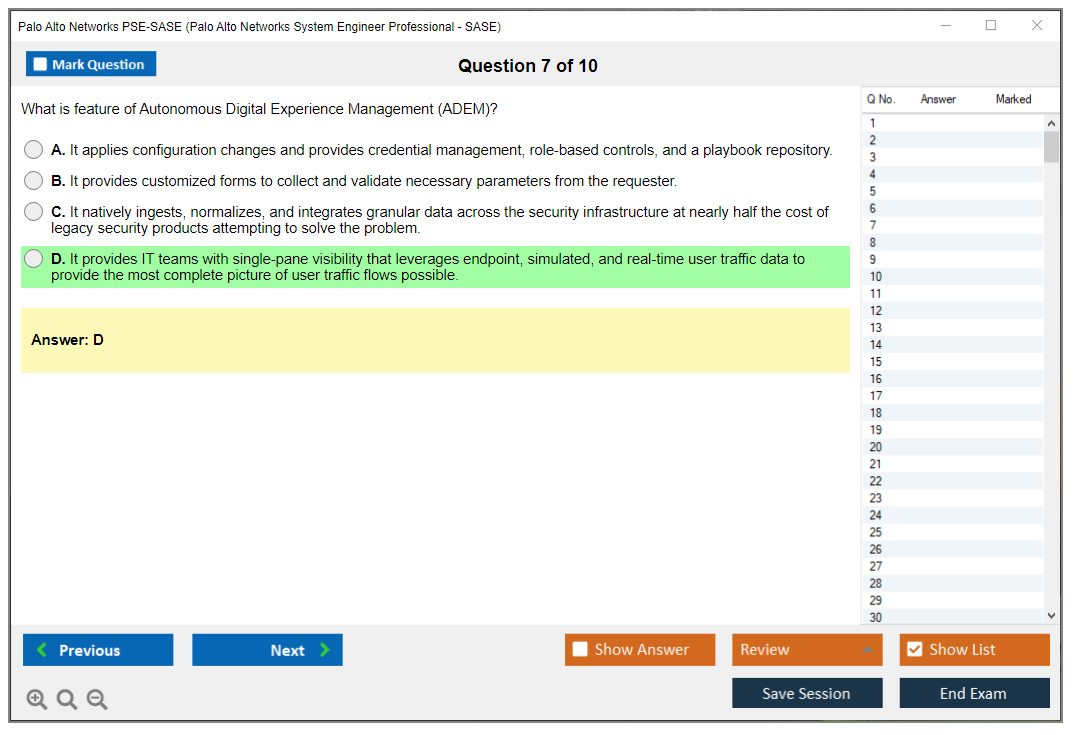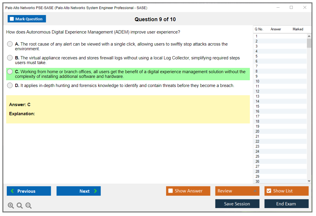 The Palo Alto Networks PSE-SASE (Palo Alto Networks System Engineer Professional - SASE Exam) is designed to validate the knowledge and skills of professionals in the Secure Access Service Edge (SASE) domain. It assesses the candidate's ability to design, deploy, and manage Palo Alto Networks SASE solutions.