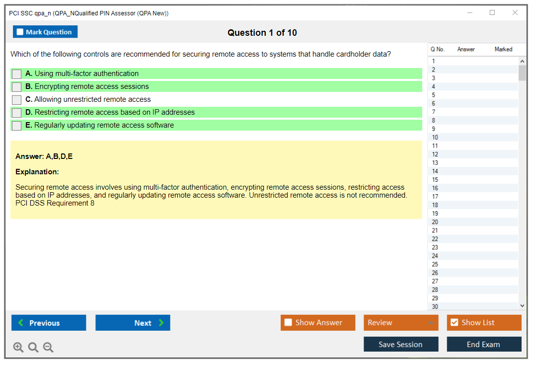 Sample questions for the PCI SSC QPA_N exam may be provided by the PCI Security Standards Council through their official resources or training programs. Candidates should refer to these materials for practice and preparation.