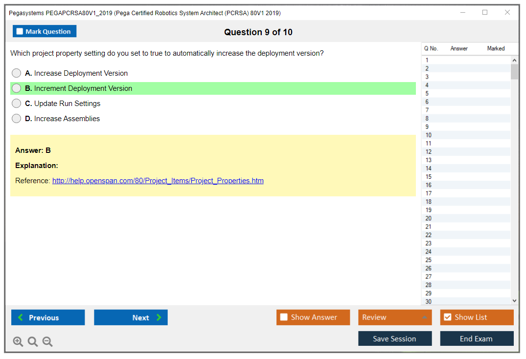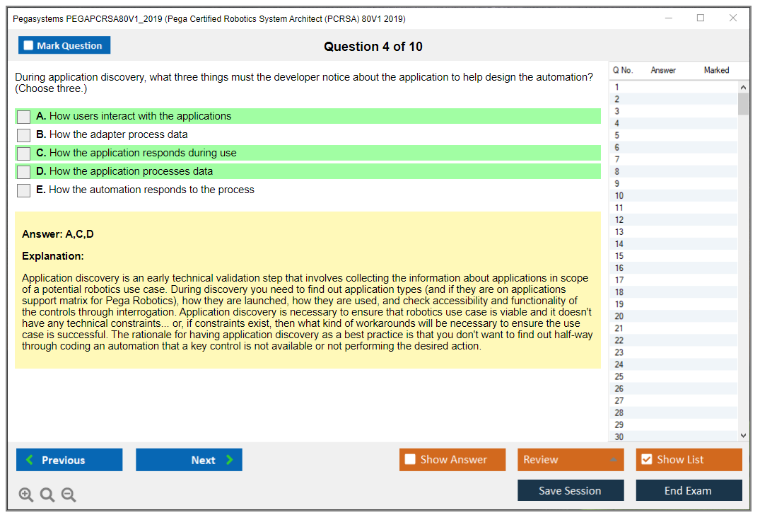 The Pegasystems PEGAPCRSA80V1_2019 Exam is aimed at individuals who wish to become certified as Pega Robotics System Architects. It assesses the candidate's proficiency in designing and implementing robotic automation solutions using Pega technology.