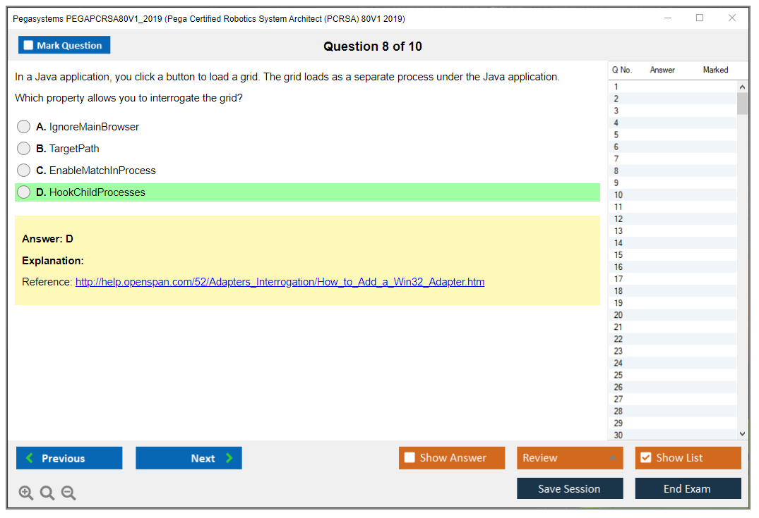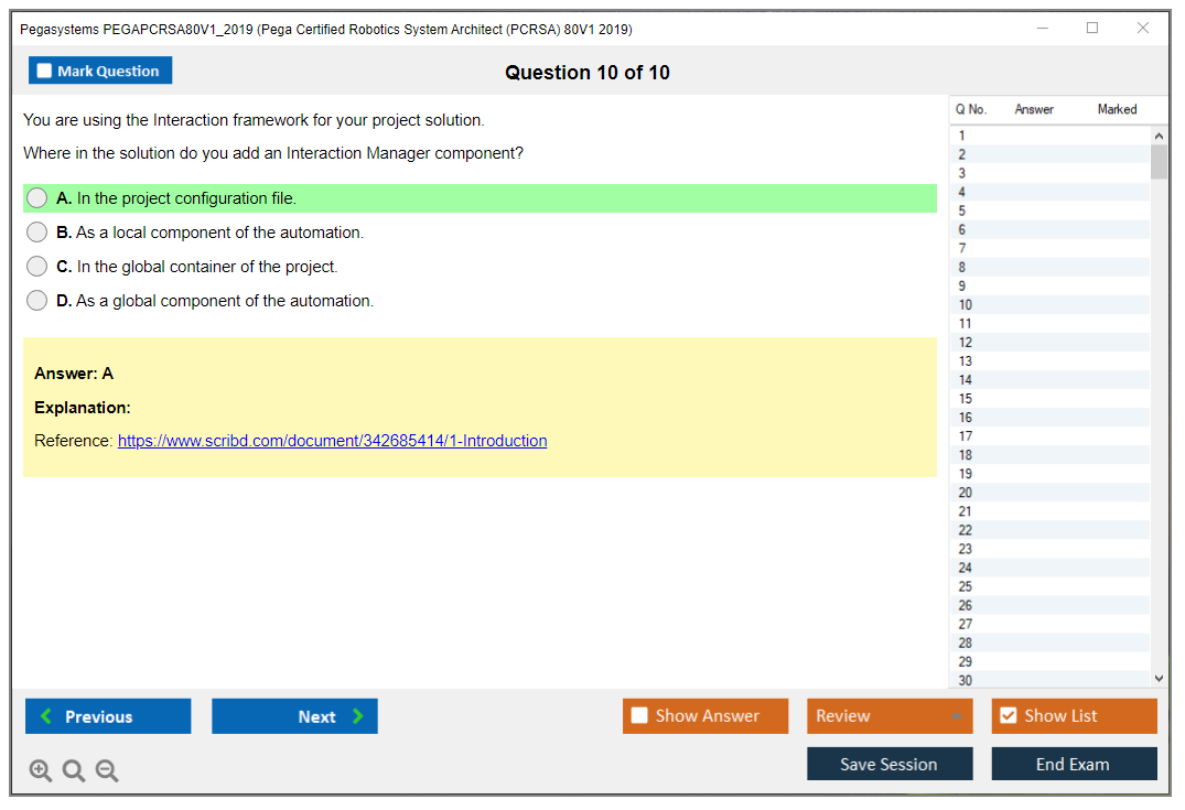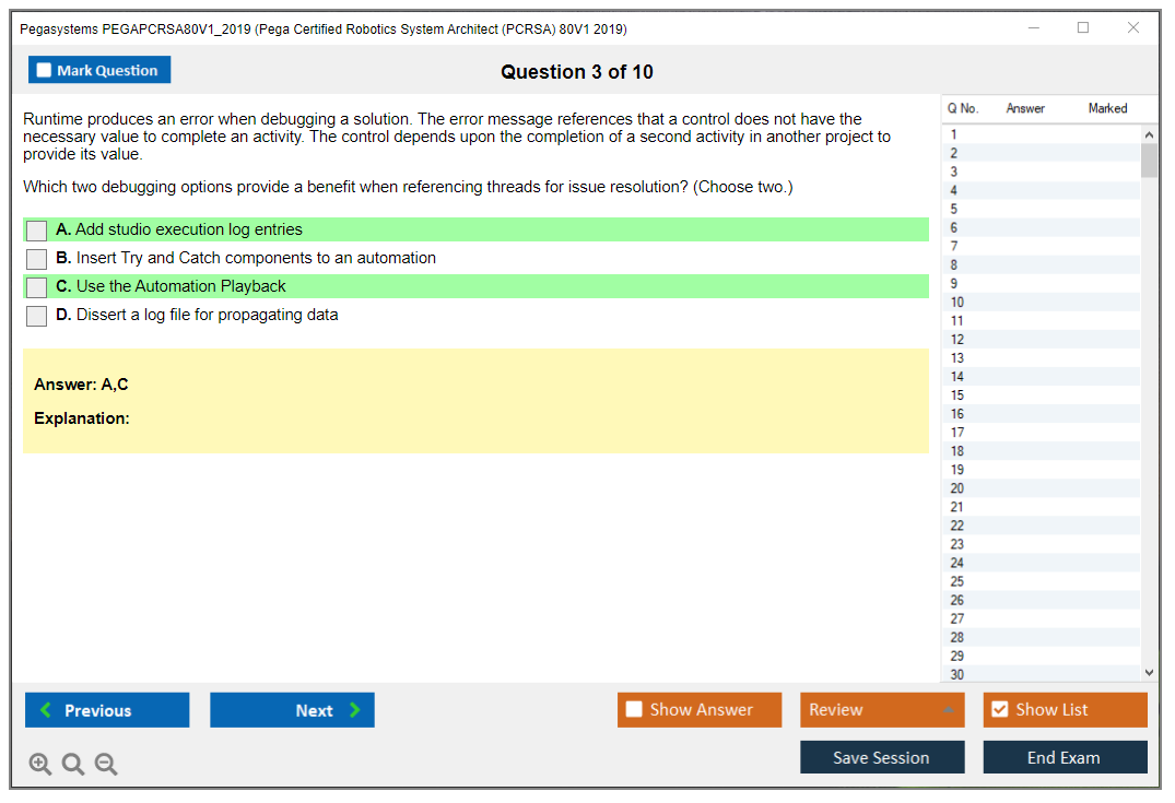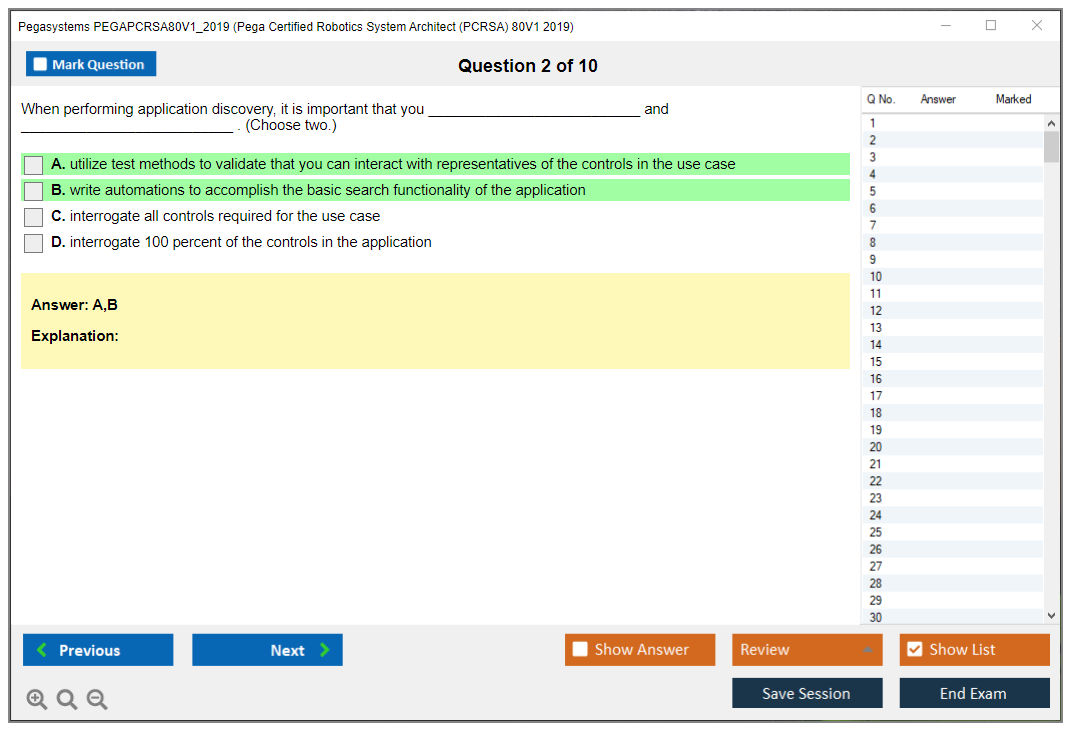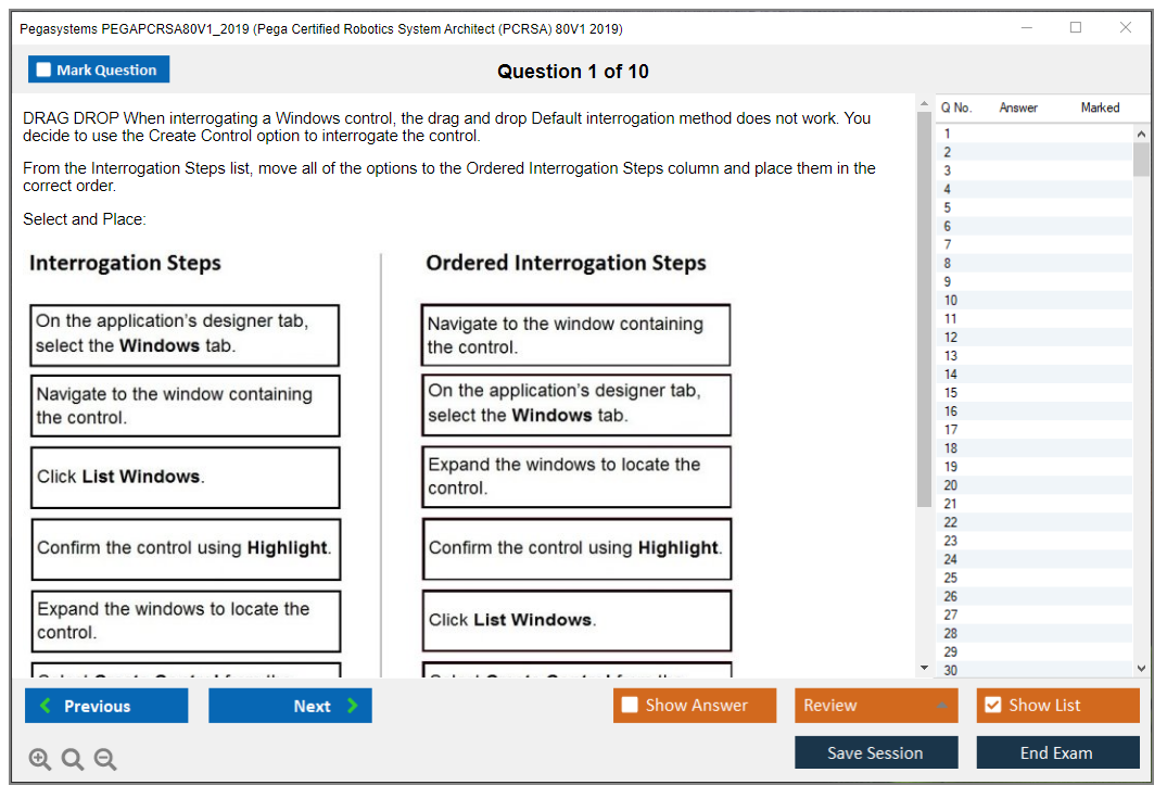 The Pegasystems PEGAPCRSA80V1_2019 (Pega Certified Robotics System Architect (PCRSA) 80V1 2019) Exam is a certification test designed to validate the skills and knowledge of professionals in Pega robotic automation. It focuses on the ability to design and implement Pega robotic solutions.